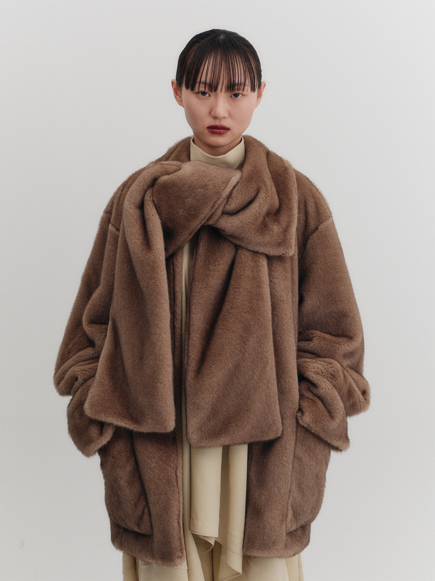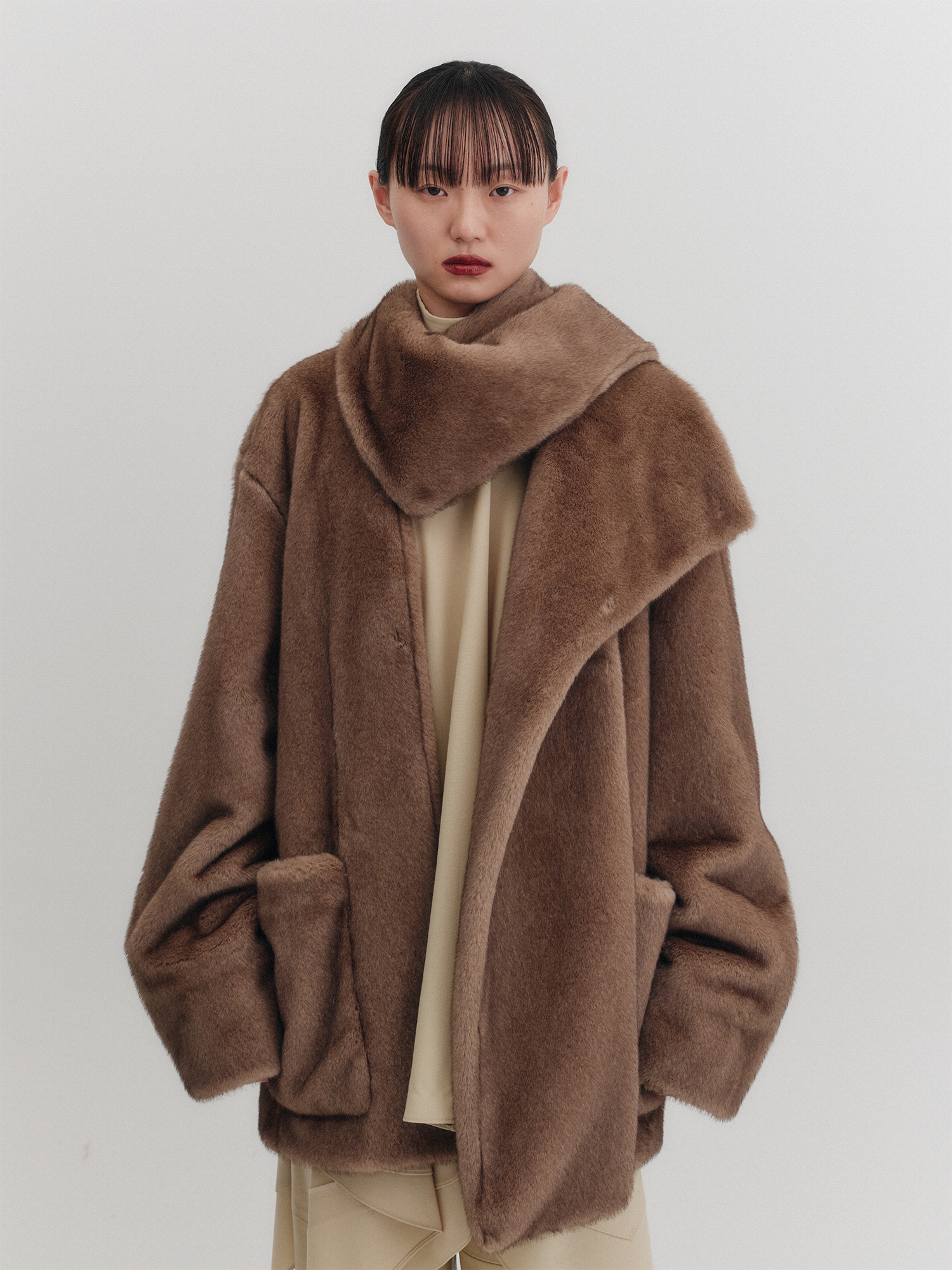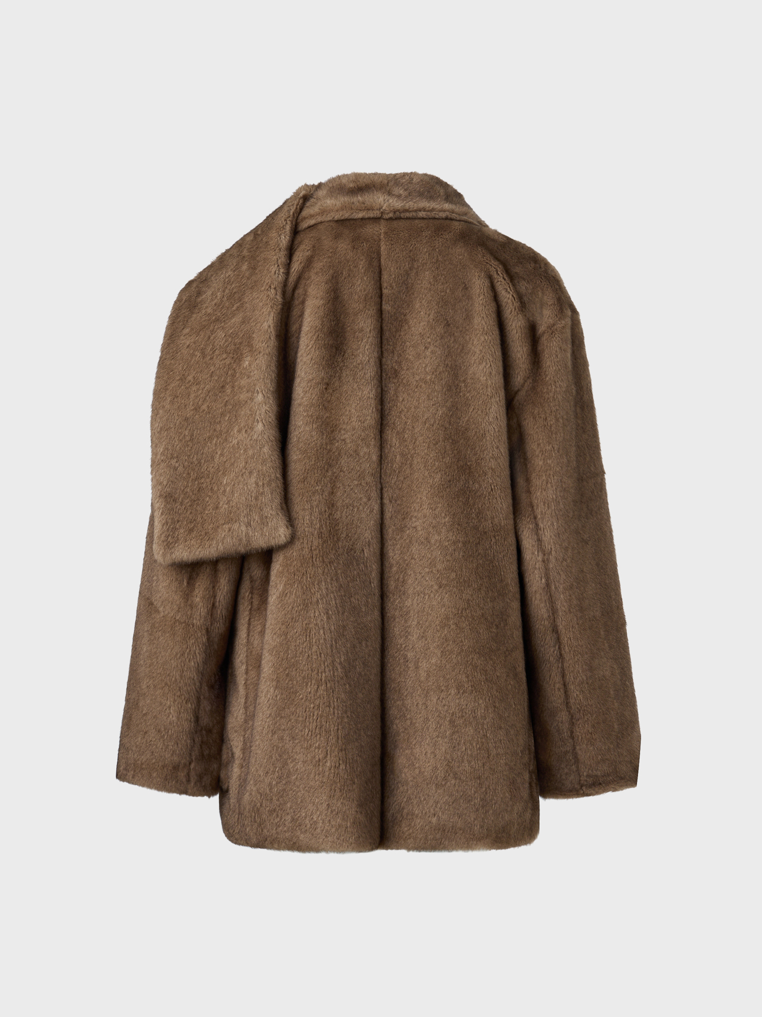 -오버사이즈 숄카라 디자인의 페이크 퍼 자켓