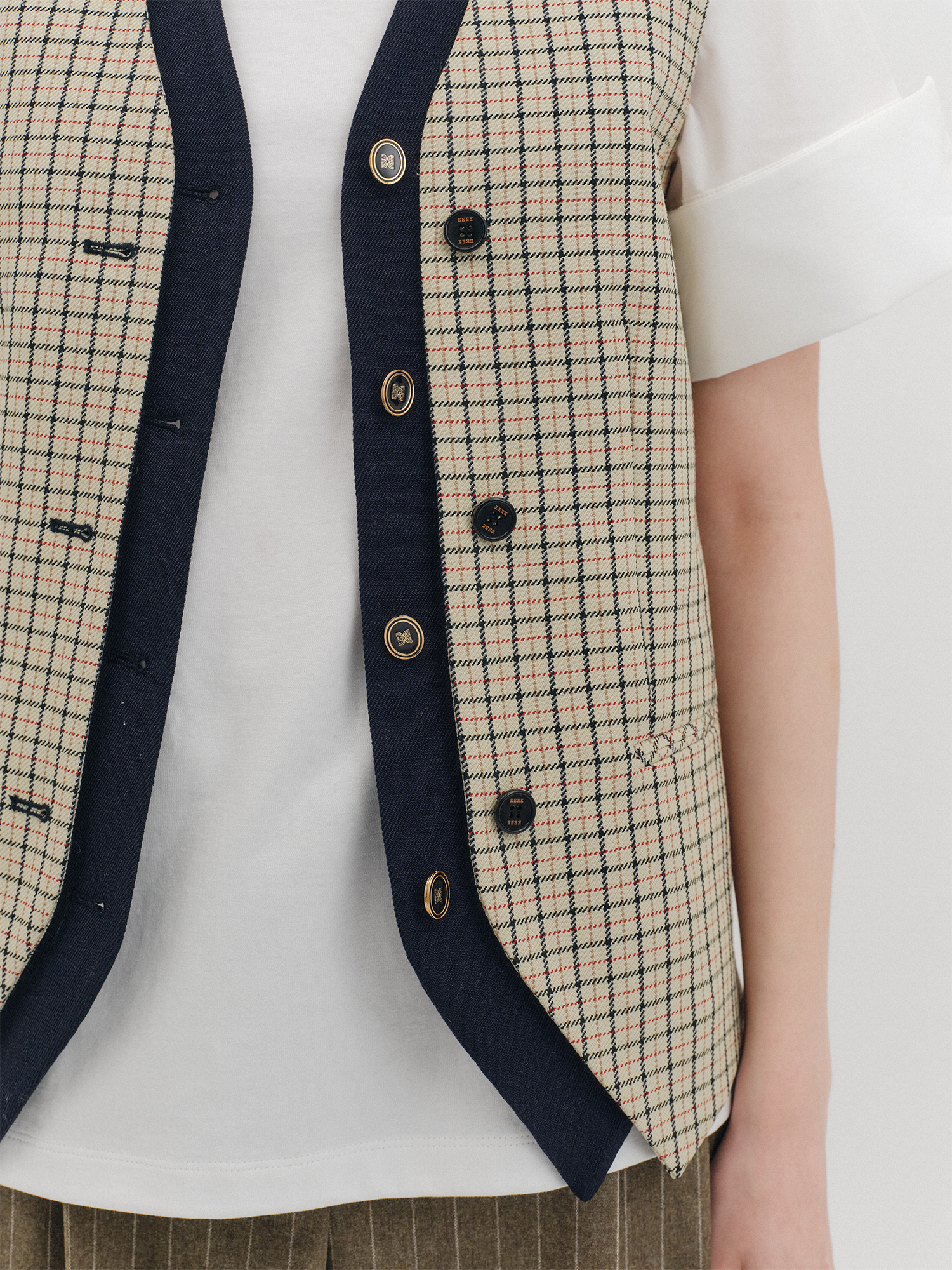 - 파이핑 포켓, 잉크 각인 소뿔 버튼 여밈- 같은 소재의 코트, 자켓, 쇼츠와 셋업