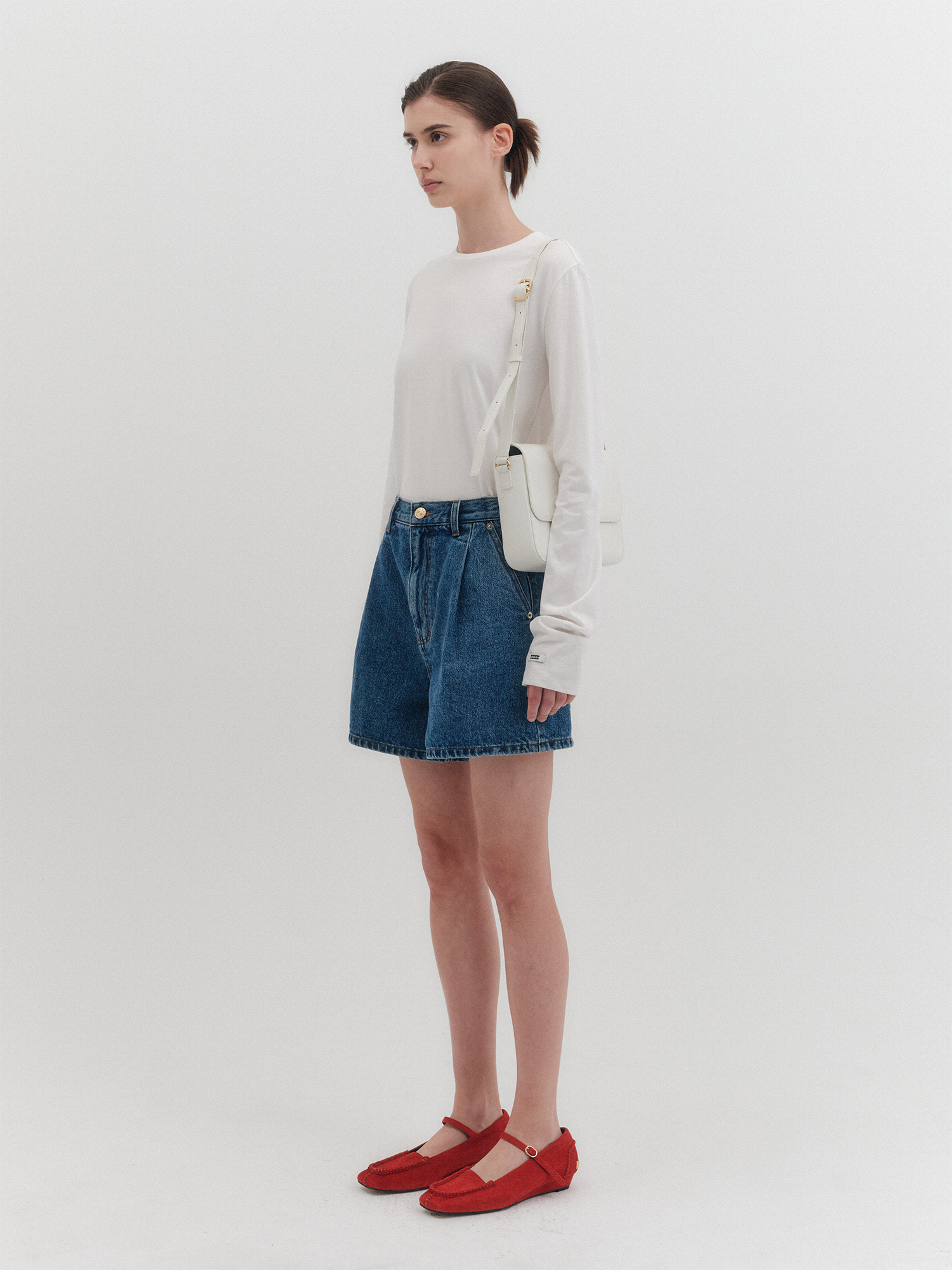 - 허리 중심의 핀턱 디테일로 구조적인 볼륨감