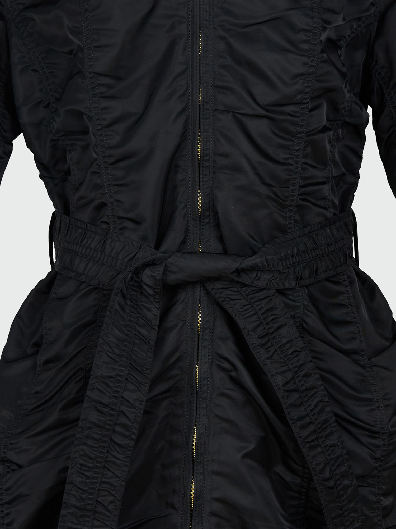 - 셔링과 허리 벨트 디테일이 포인트입니다.
