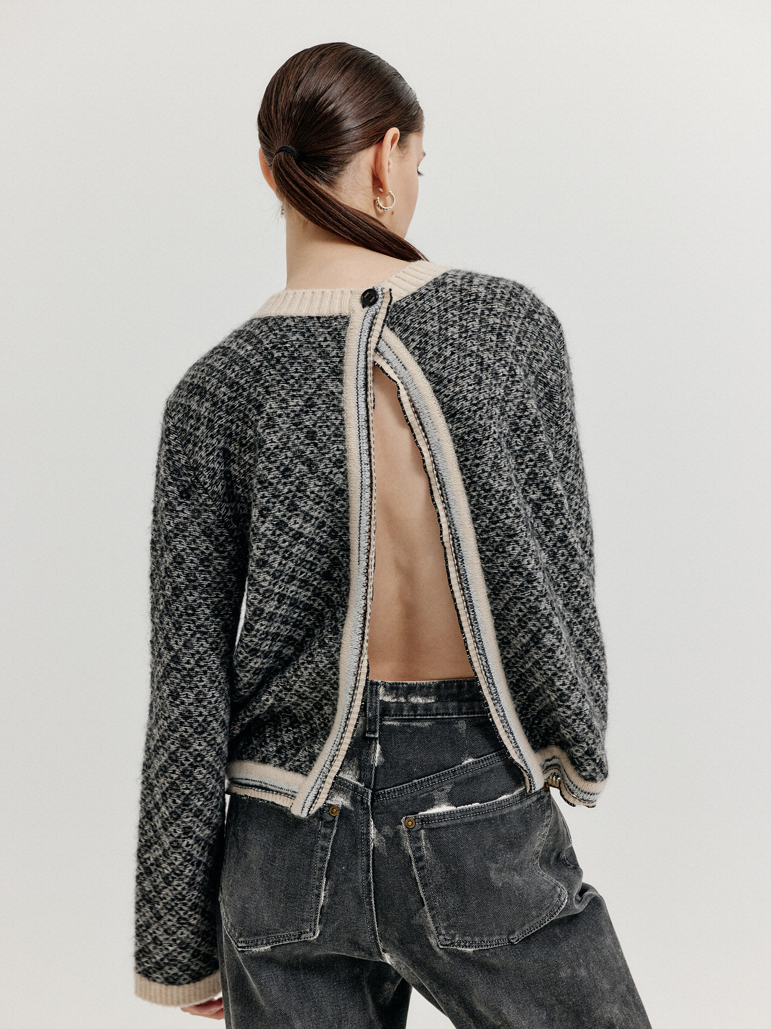 - 백 오픈 디자인으로 이너 아이템과의 레이어드를 추천합니다.