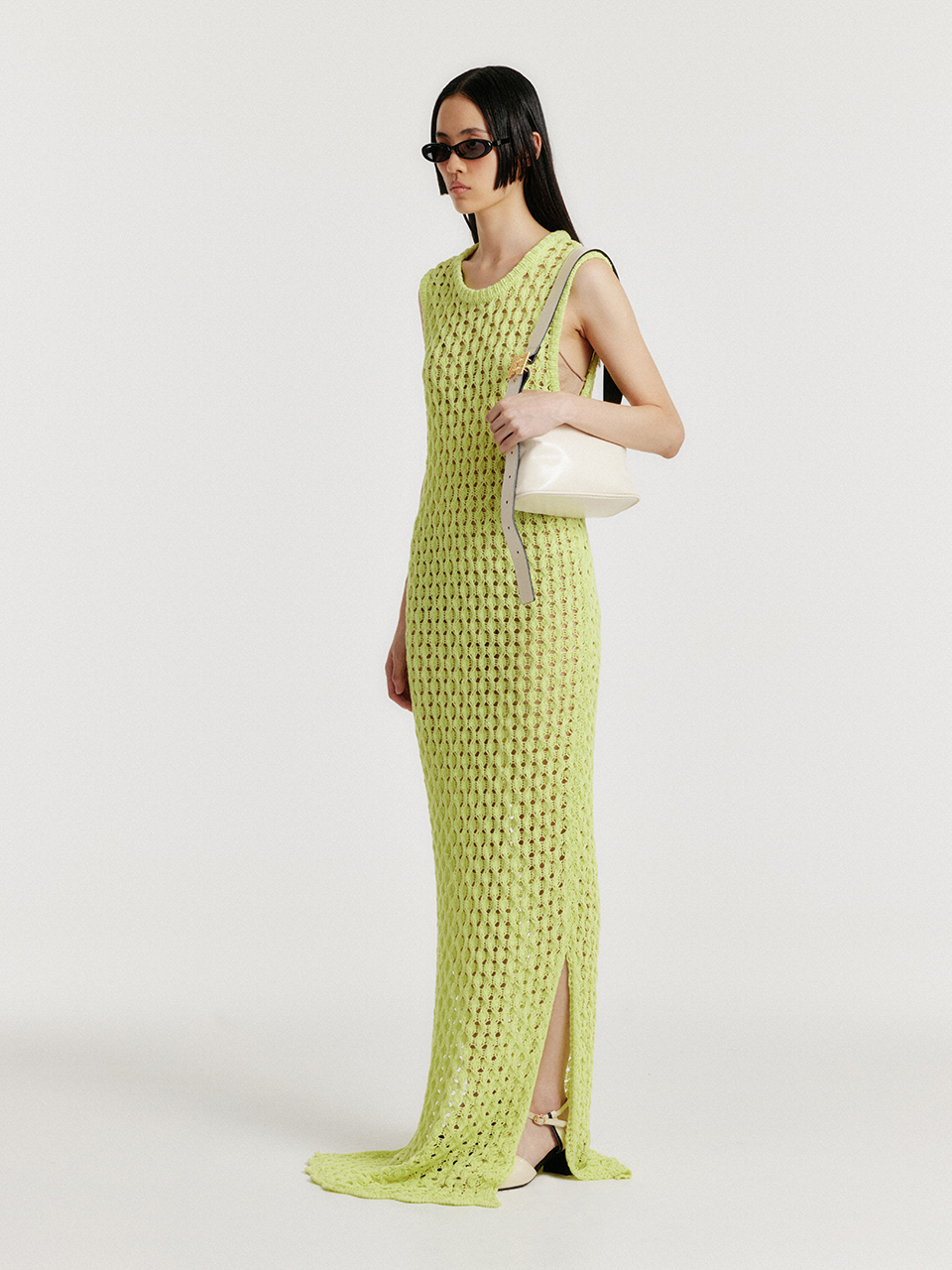 YIONY Maxi Cable Knit Dress - Yellow Green