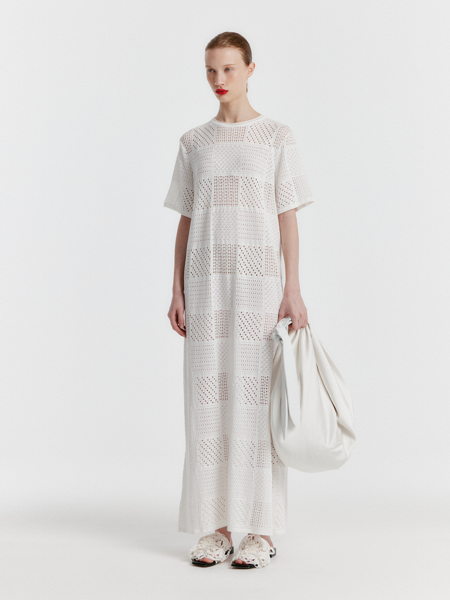 - 펀칭 디테일이 있는 니트 드레스입니다.