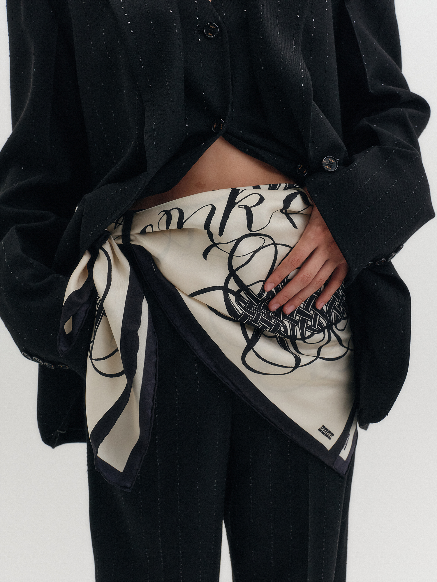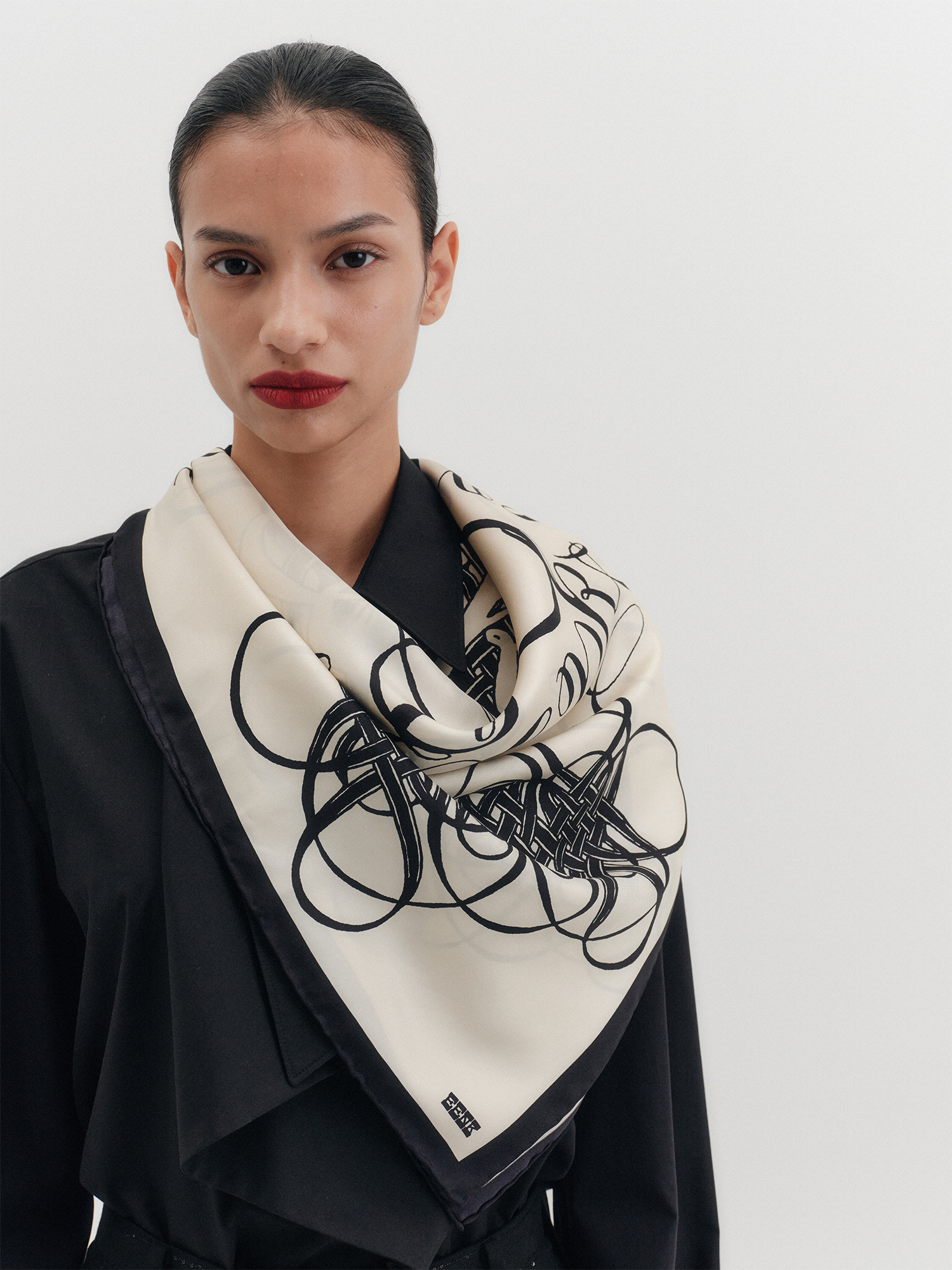 실크 프린트 스카프 - 아이보리