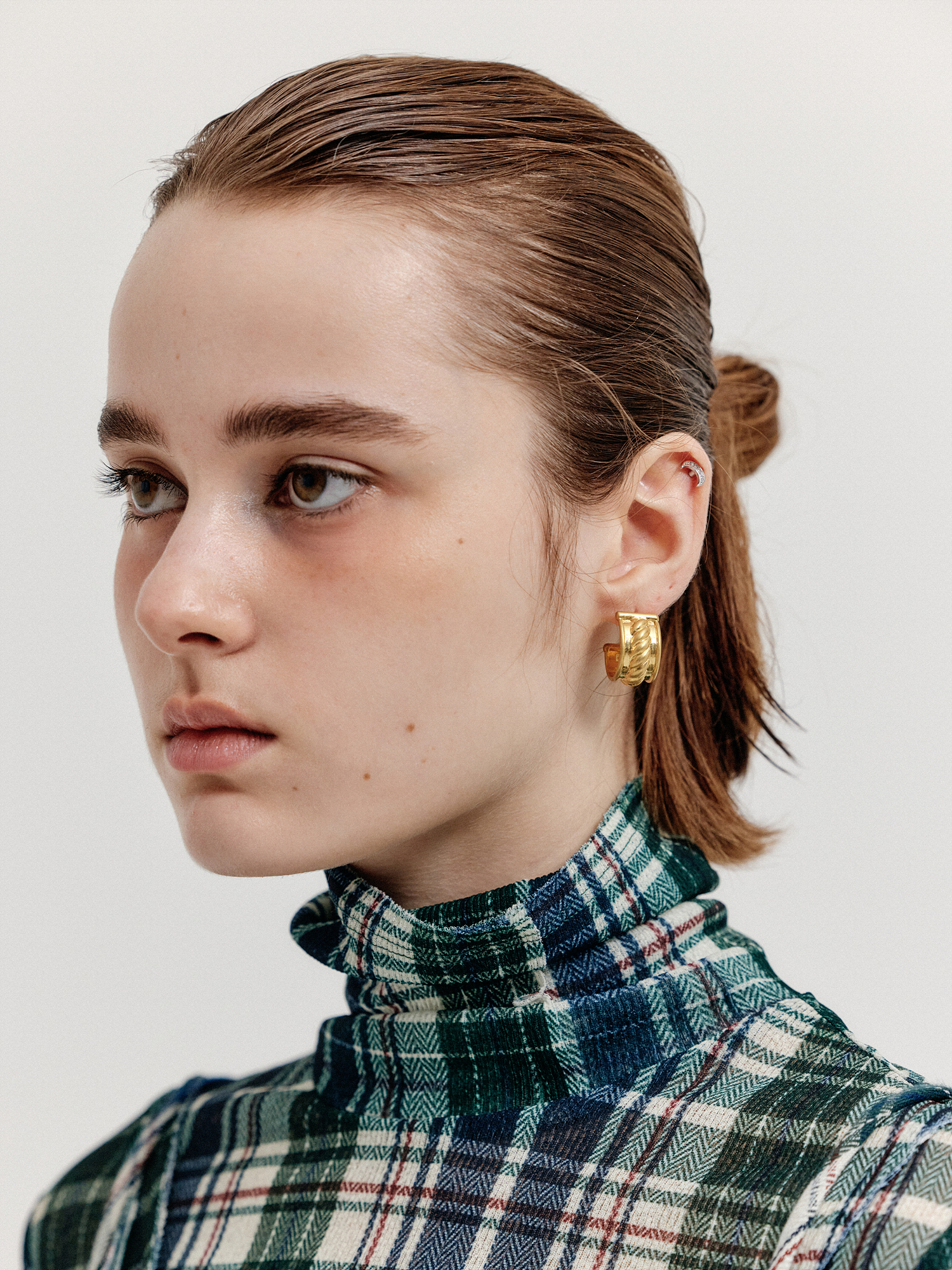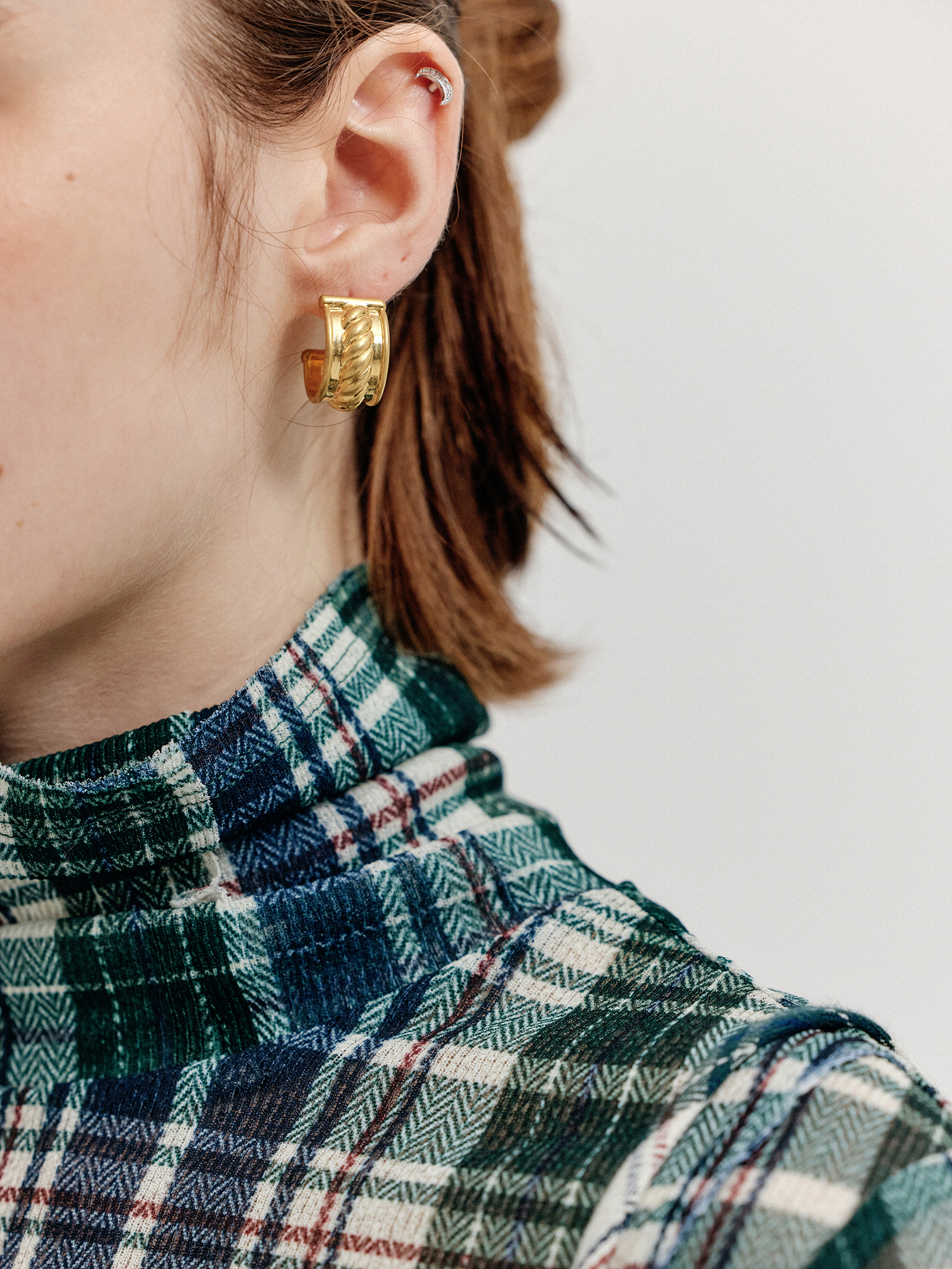 - 체인이 덧대어진 디자인의 이어링입니다.