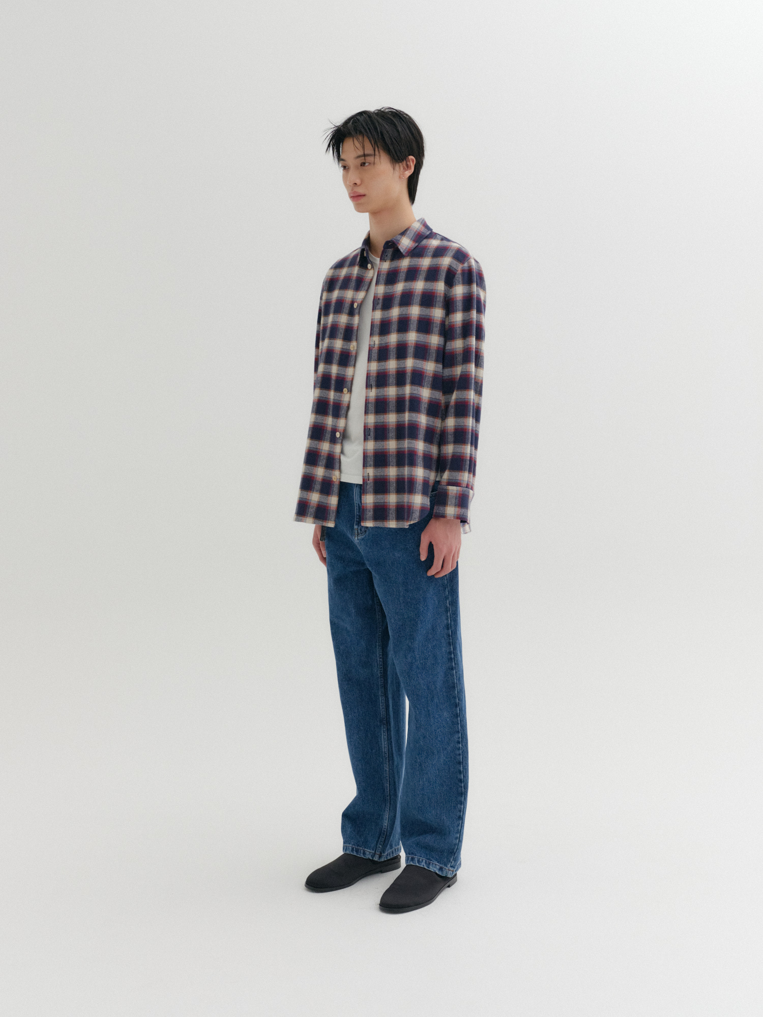 - 네이비톤 베이스의 클래식한 체크 패턴