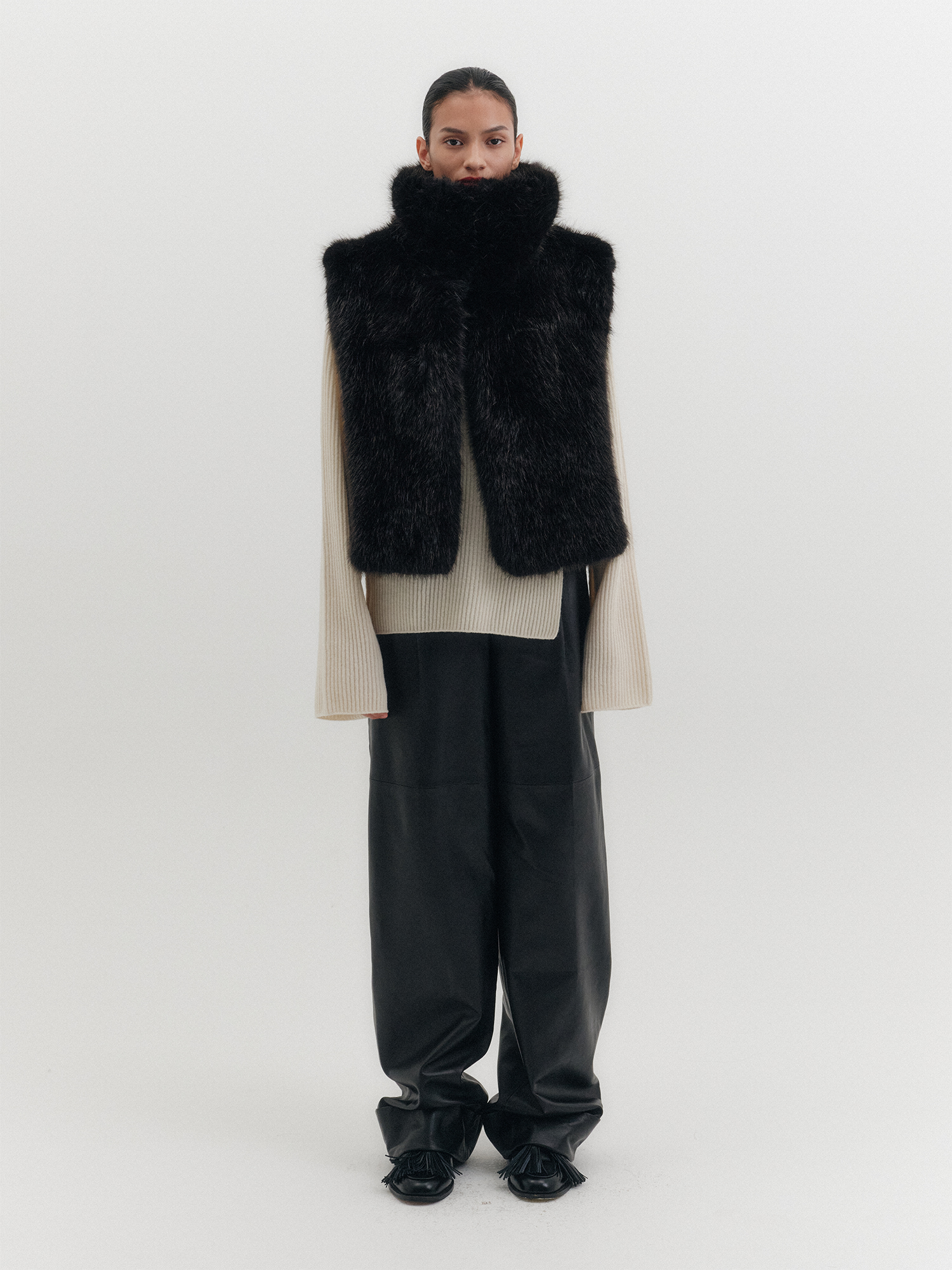 - 하이넥 디자인의 퍼 베스트
