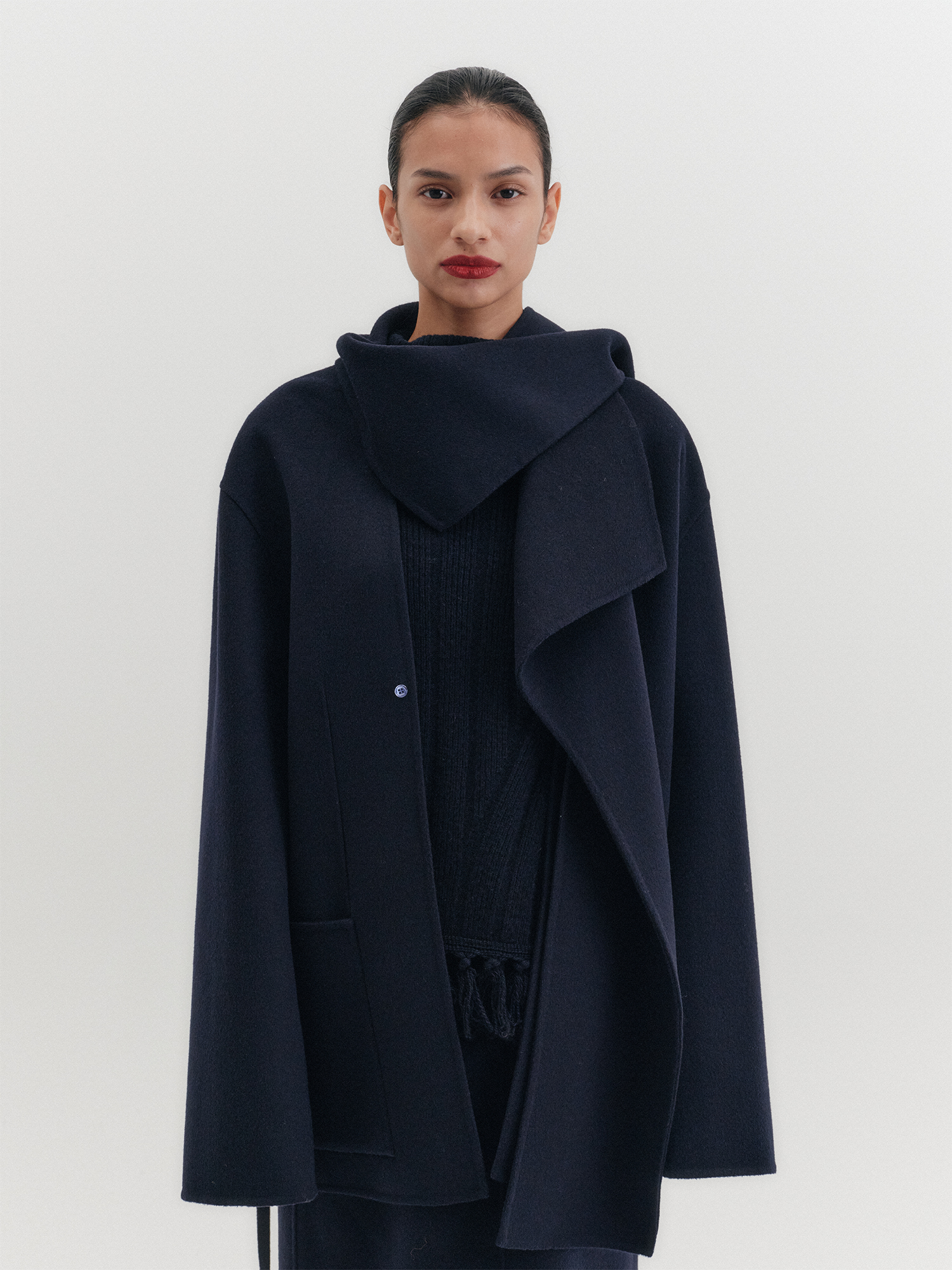 - 루즈한 핏의 핸드메이드 숄카라 코트