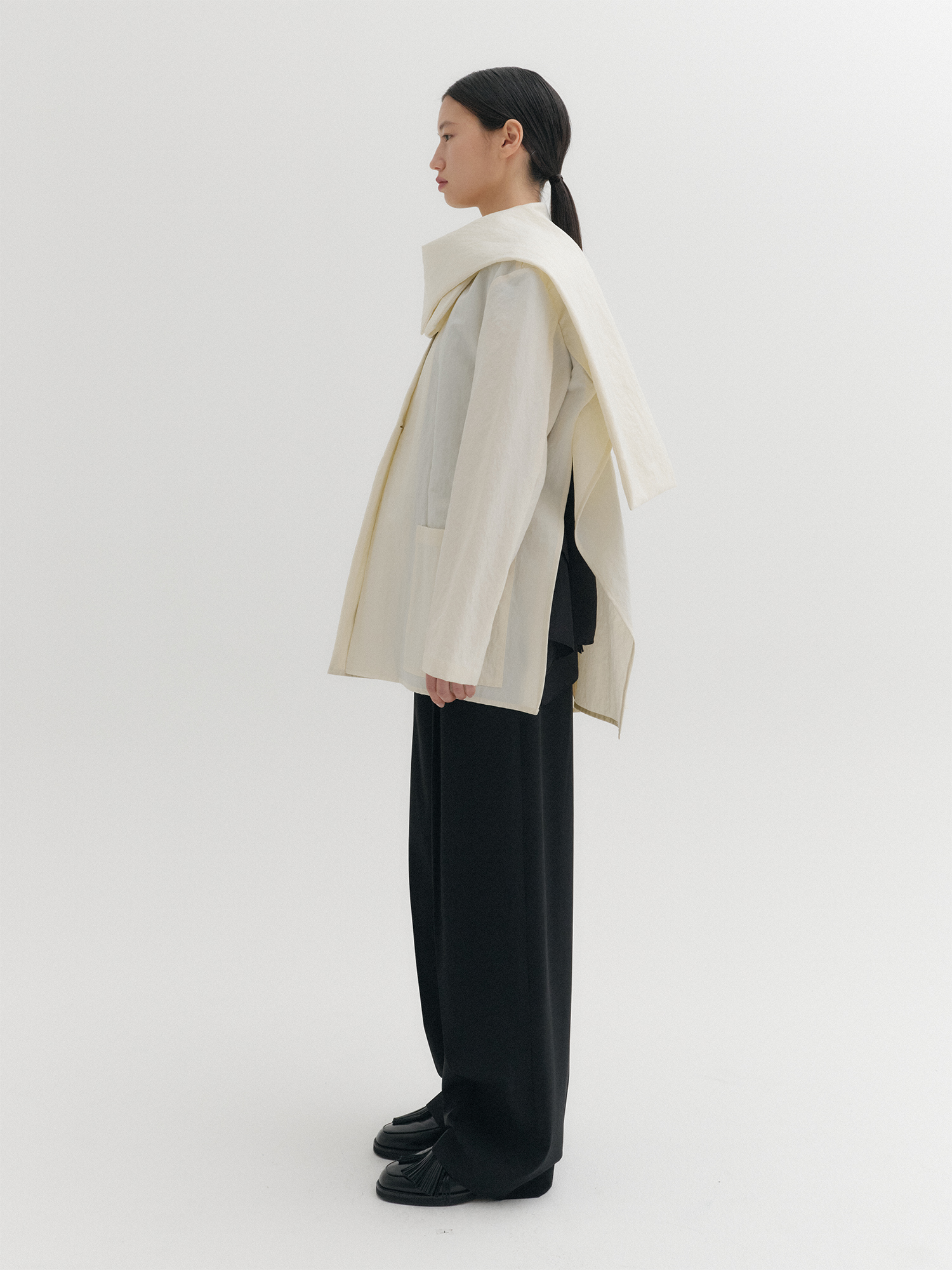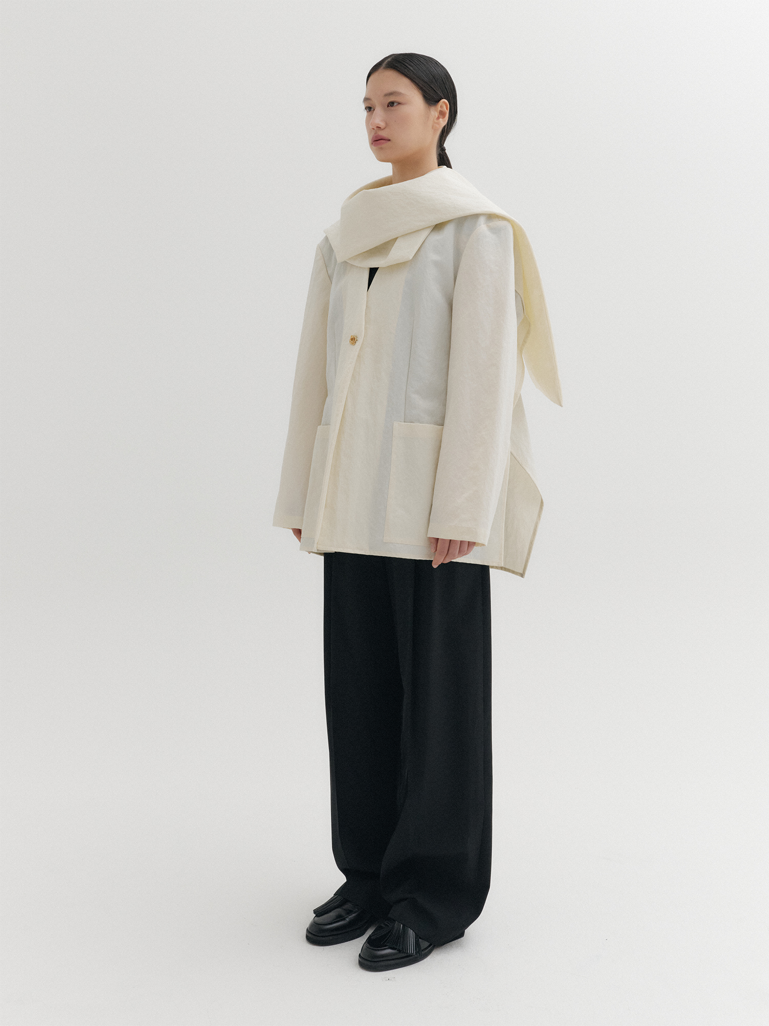 - 숄 디테일로 머플러처럼 다양한 연출 가능