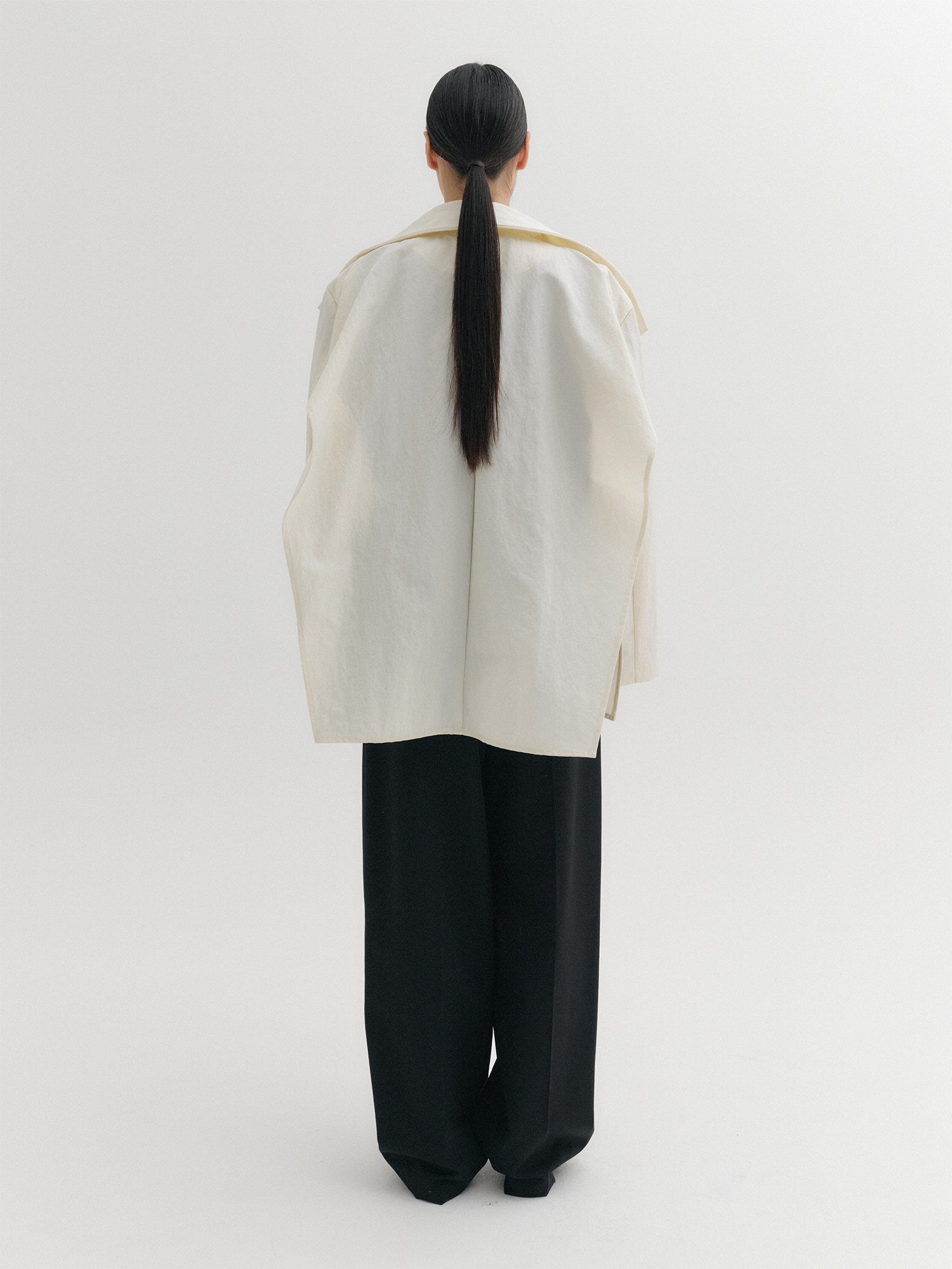 - 뒤쪽 양 사이드 슬릿 디테일로 자연스러운 드레이퍼리 실루엣 연출
