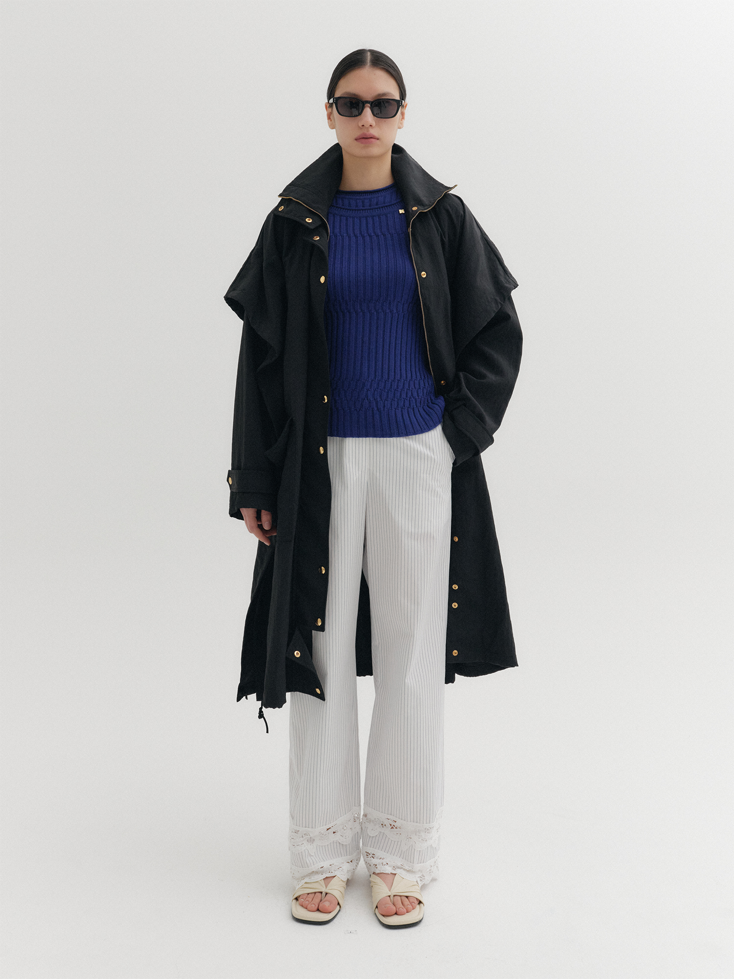 * 모델이 착용한 제품은 촬영용 샘플이며 S 사이즈 기준으로 제작되었으나 실제 제품과는 총장 및 상세 사이즈 차이가 있습니다. 정확한 사이즈는 상세페이지에 안내된 실측 사이즈를 참고해 주시기 바랍니다.