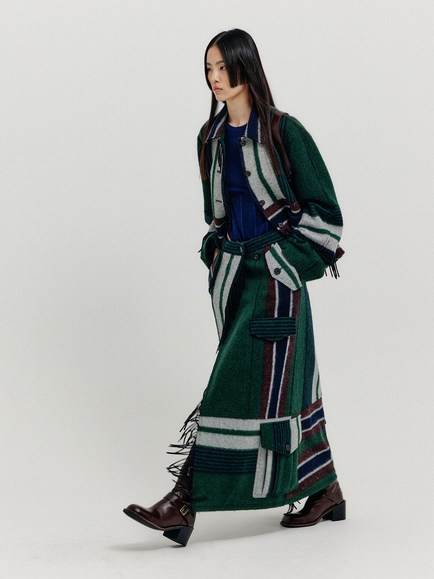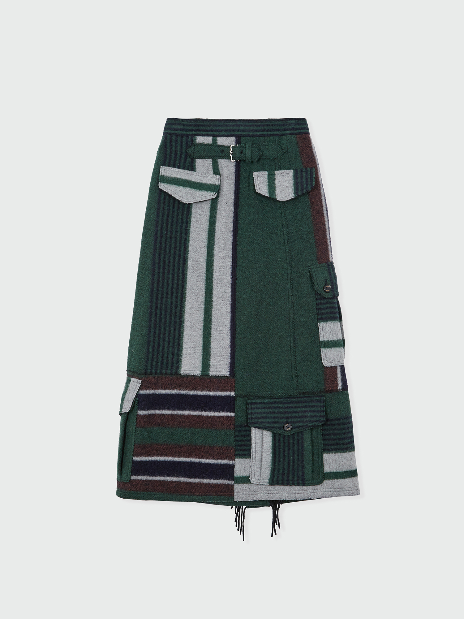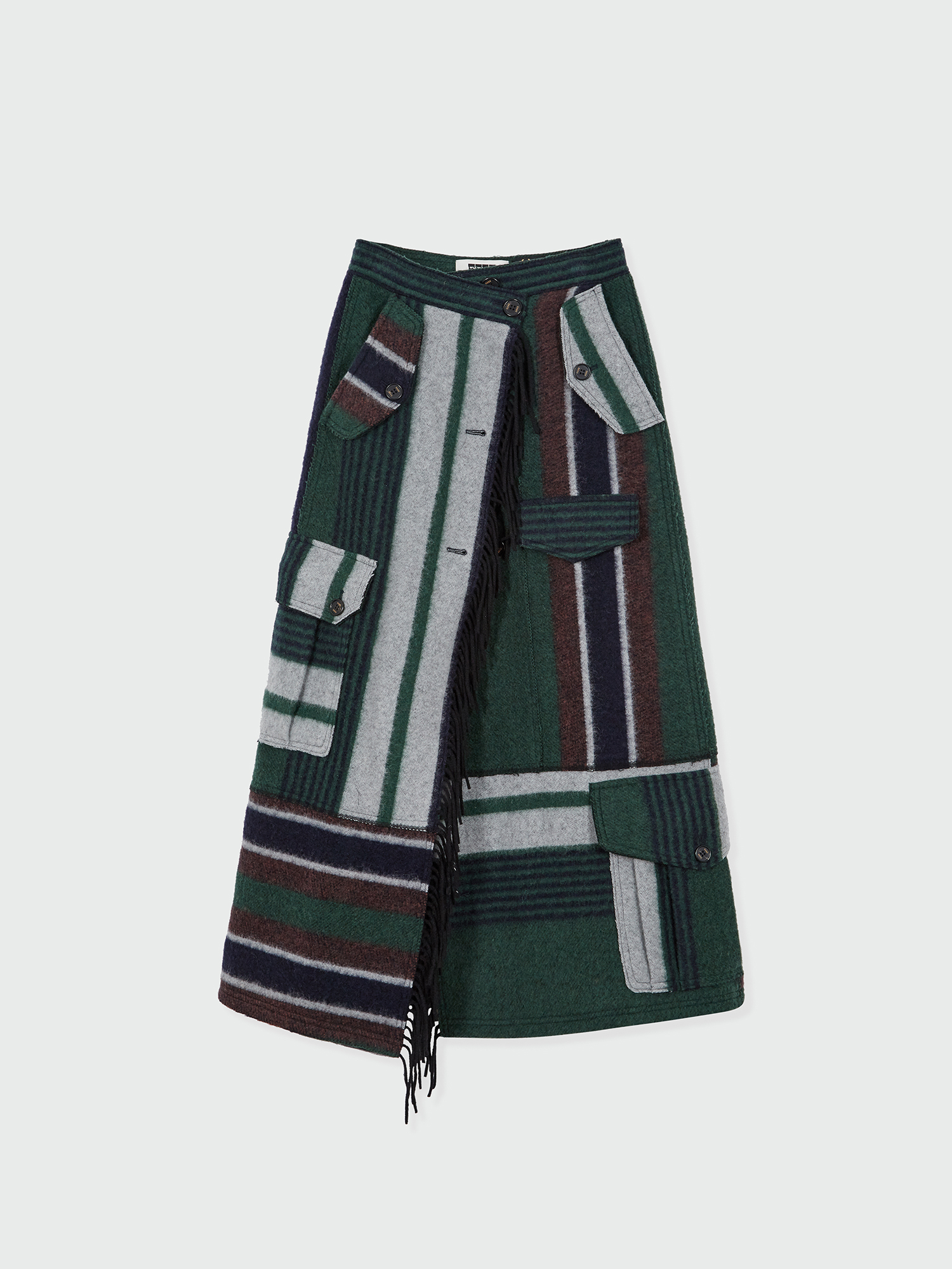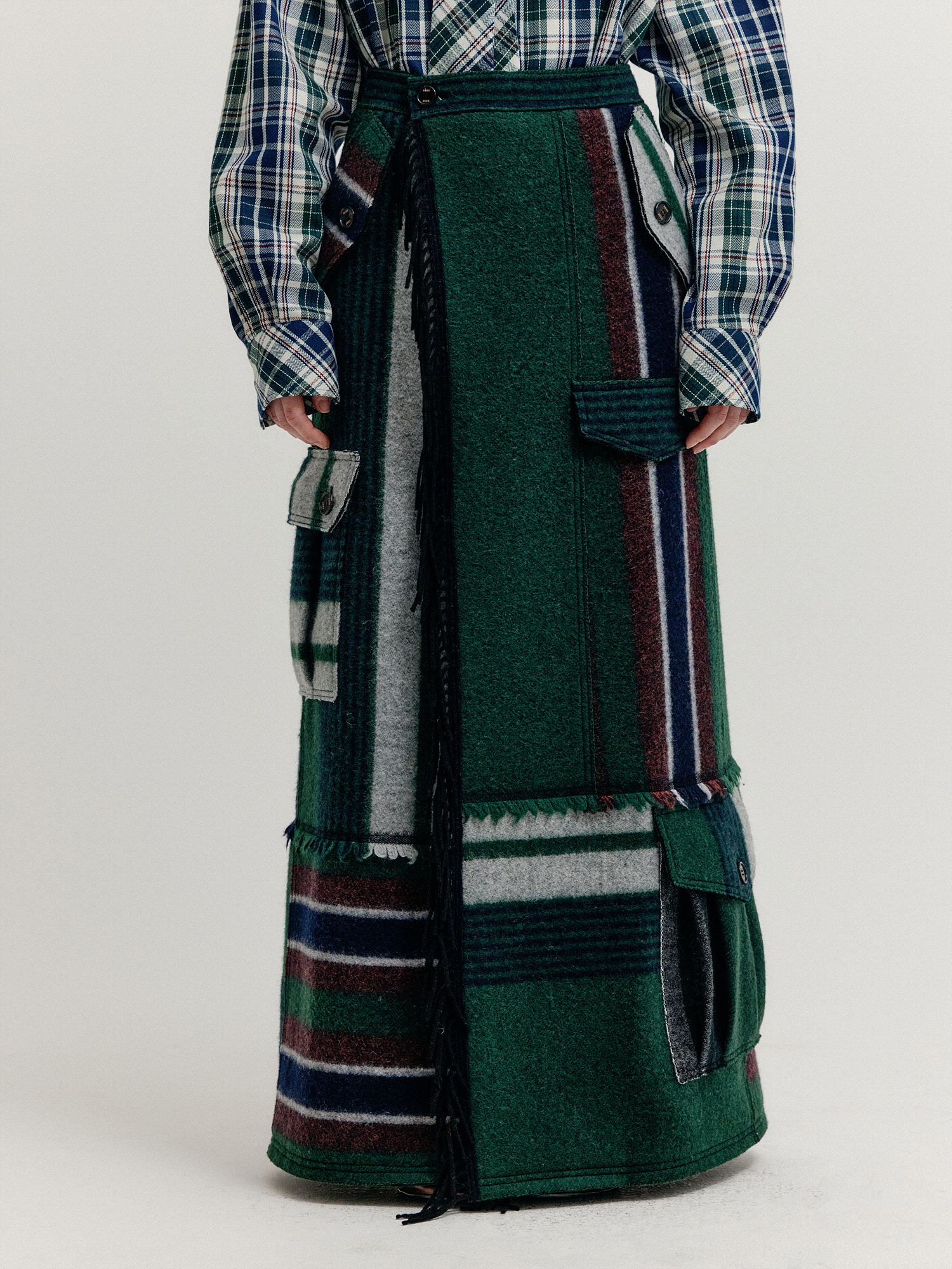 - 두께감이 있는 울 혼방 소재의 맥시 기장 랩 스커트입니다.