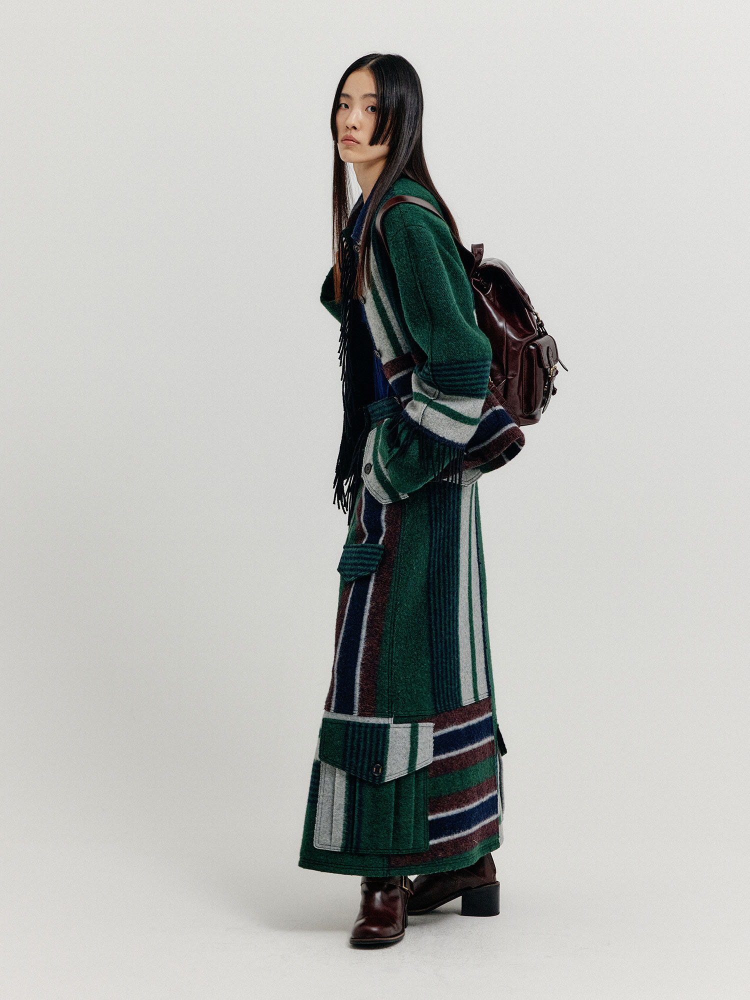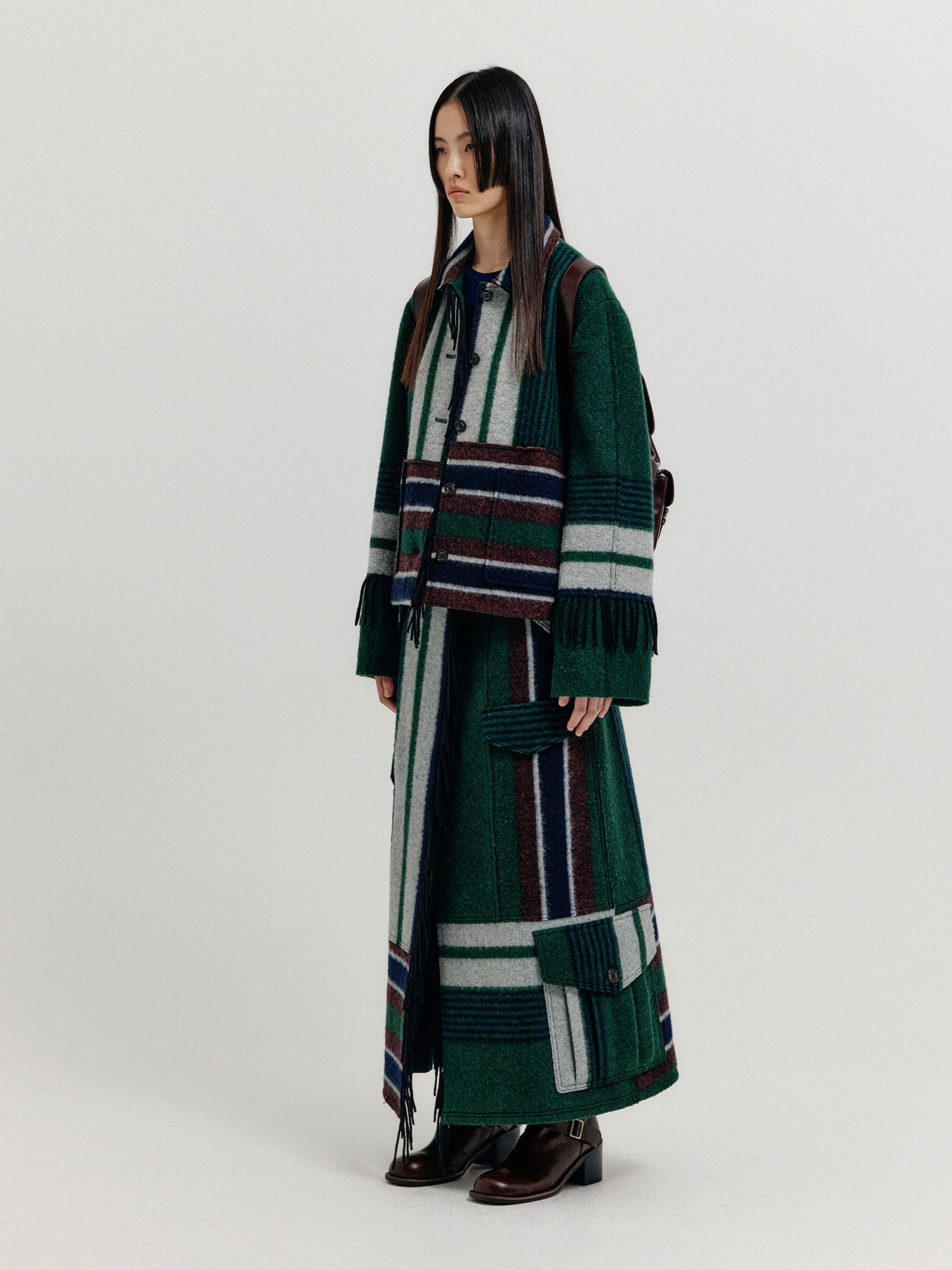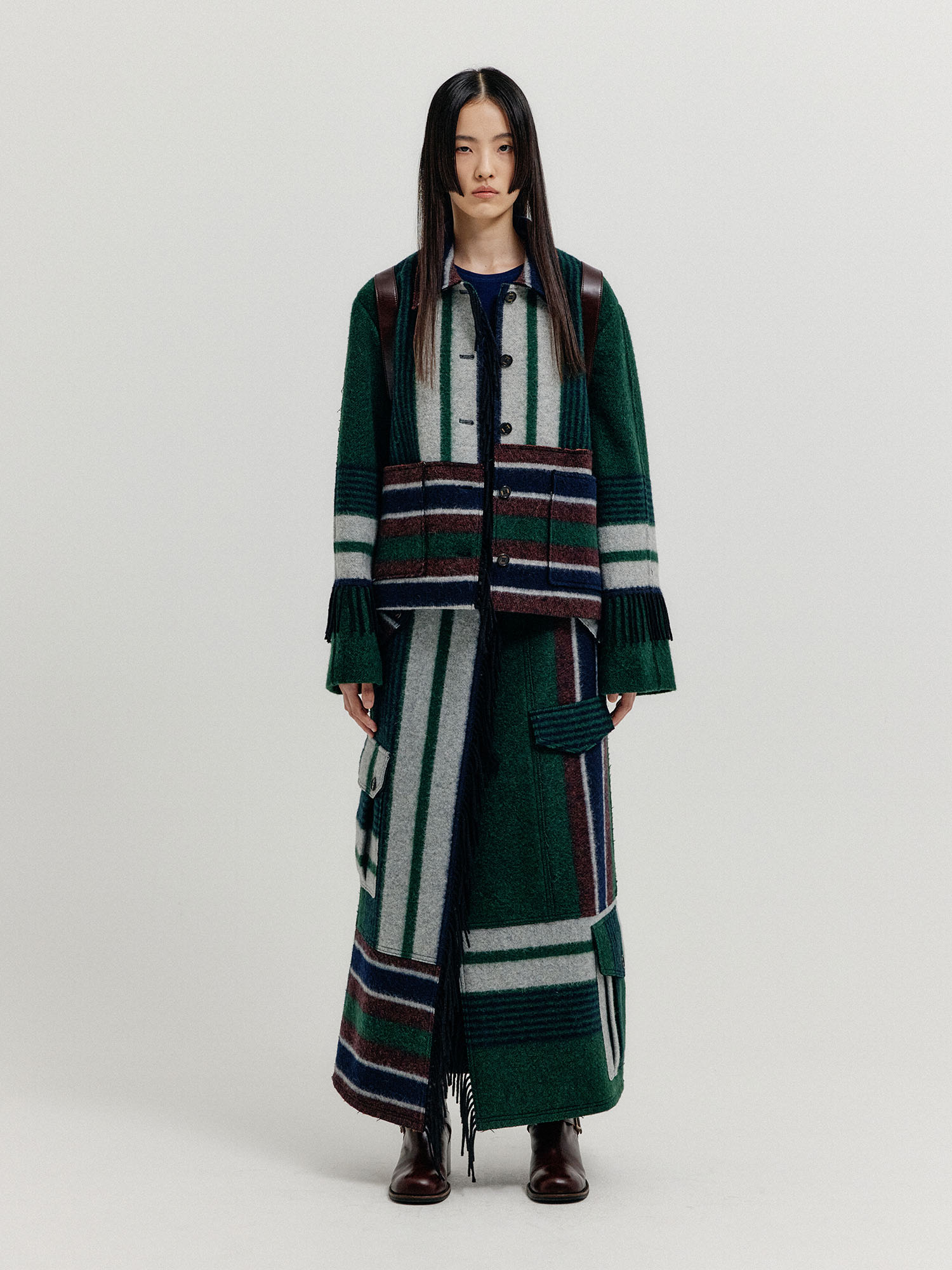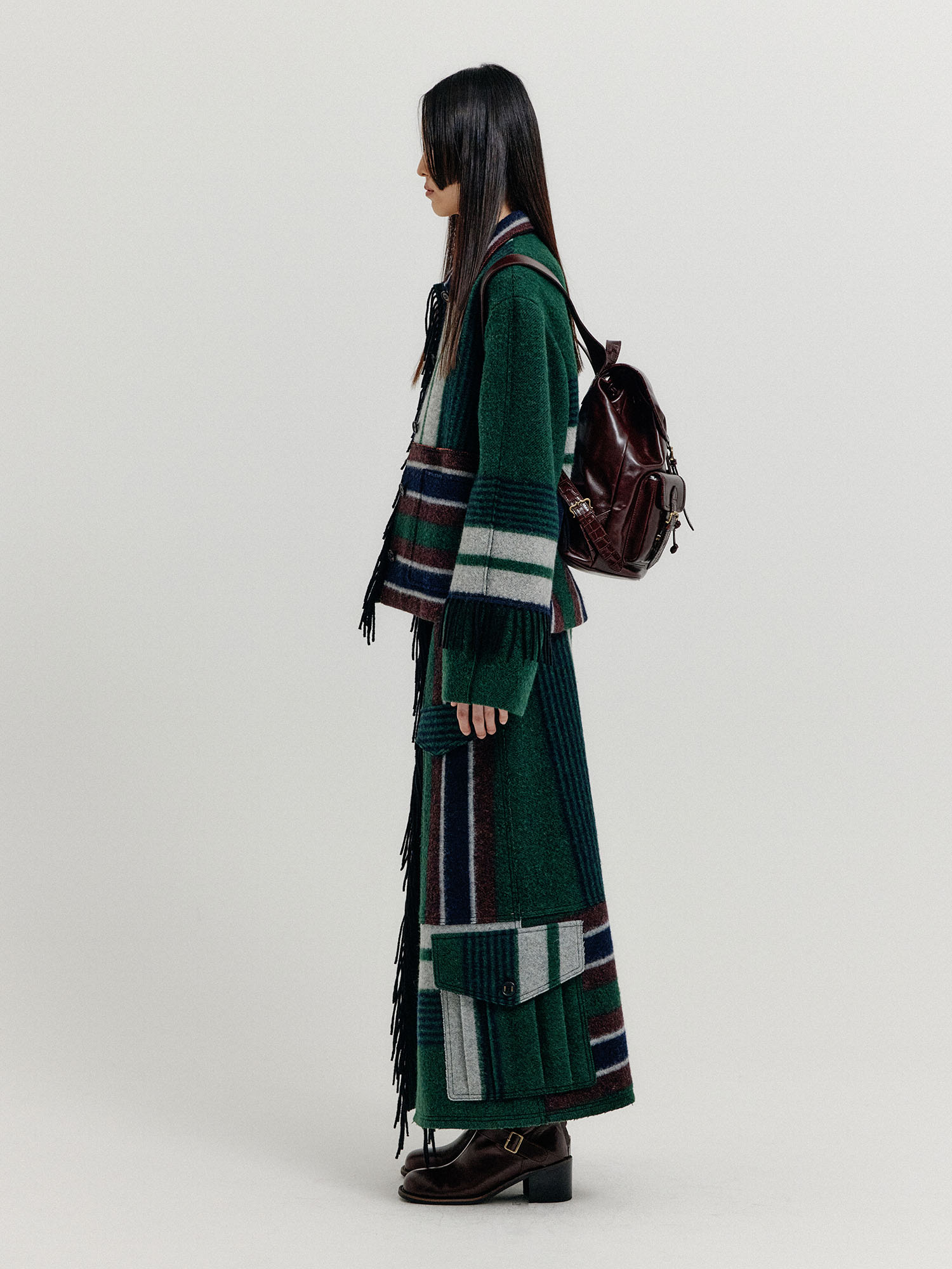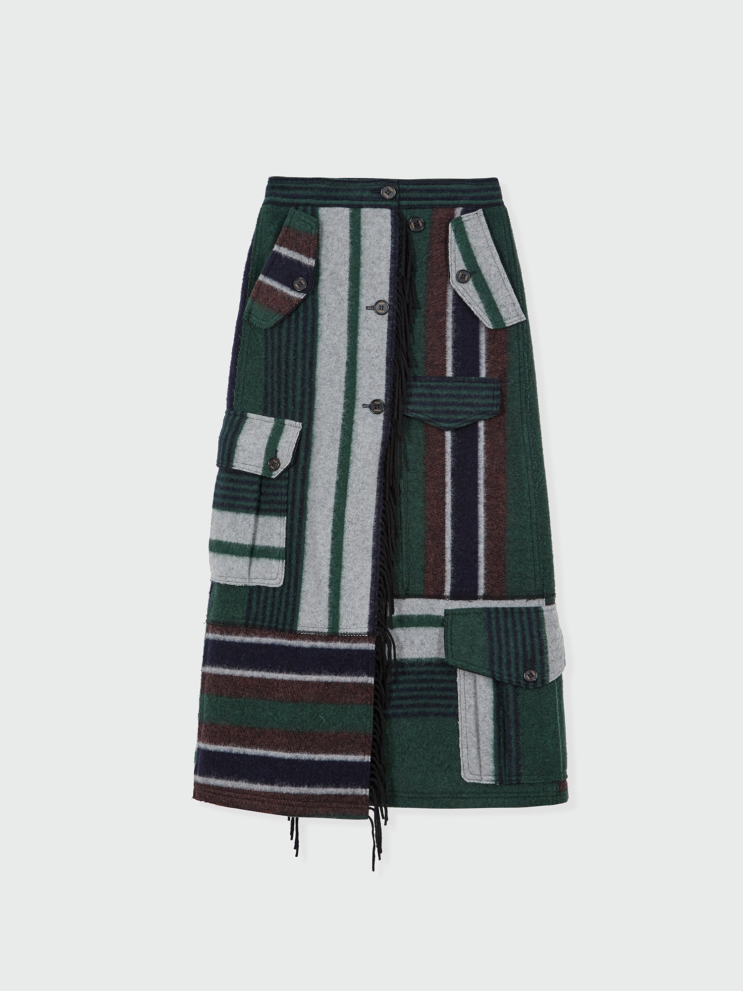 - 두께감이 있는 울 혼방 소재의 맥시 기장 랩 스커트입니다.
