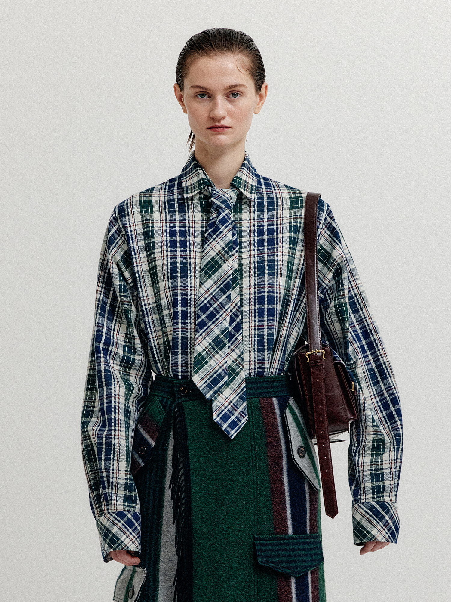 - 클래식한 체크 패턴의 코튼, 울 혼방 소재를 사용했습니다.