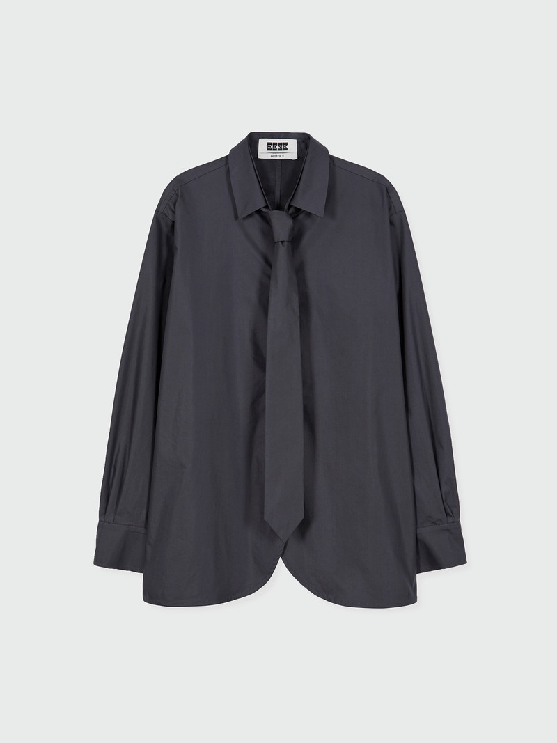 - 둥글게 떨어지는 밑단 라인과 타이 디테일이 특징인 셔츠입니다.