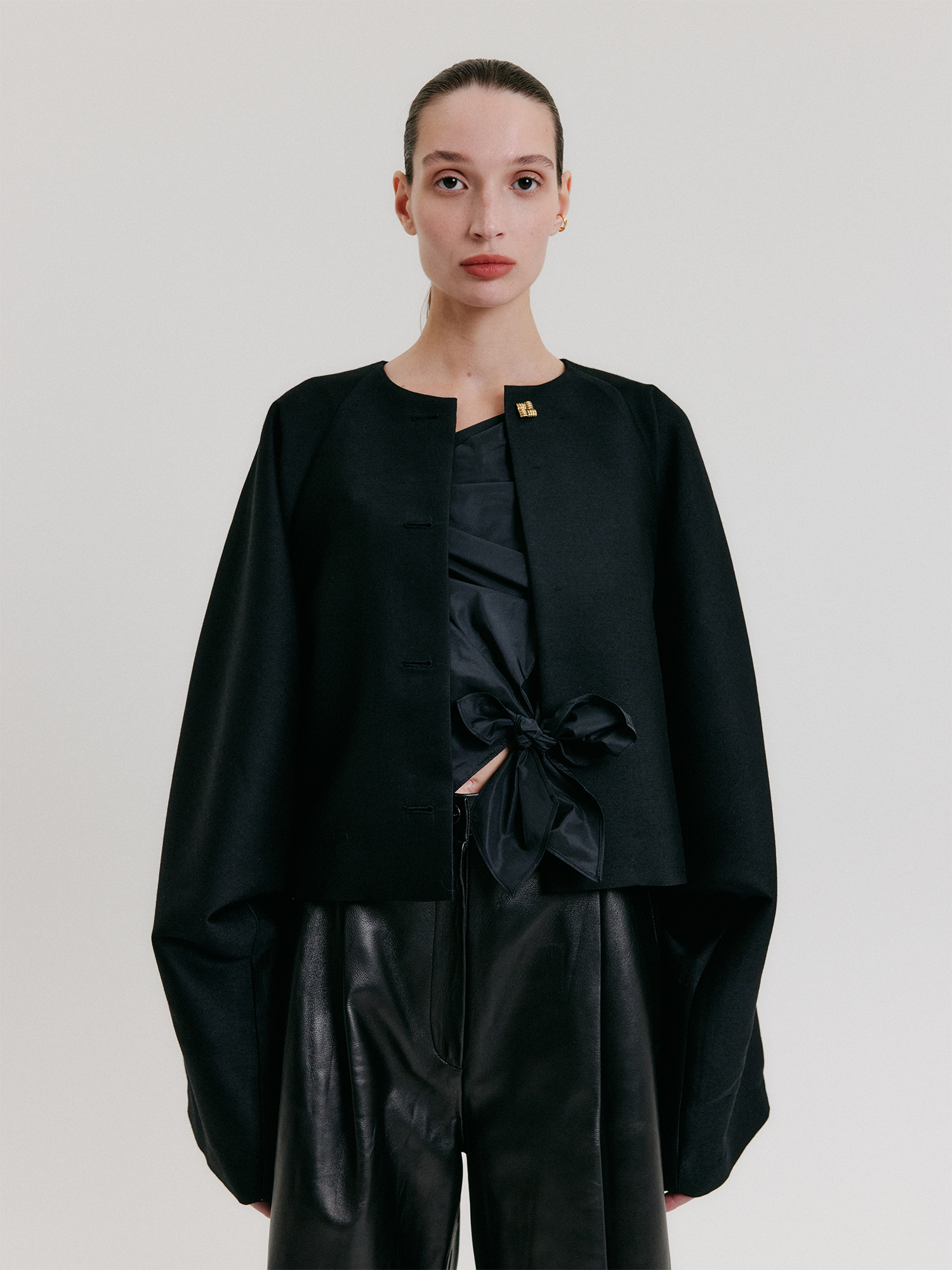 - 곡선적인 실루엣의 카라리스 자켓