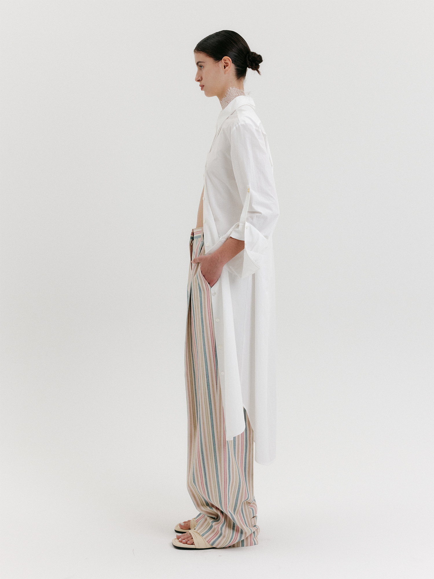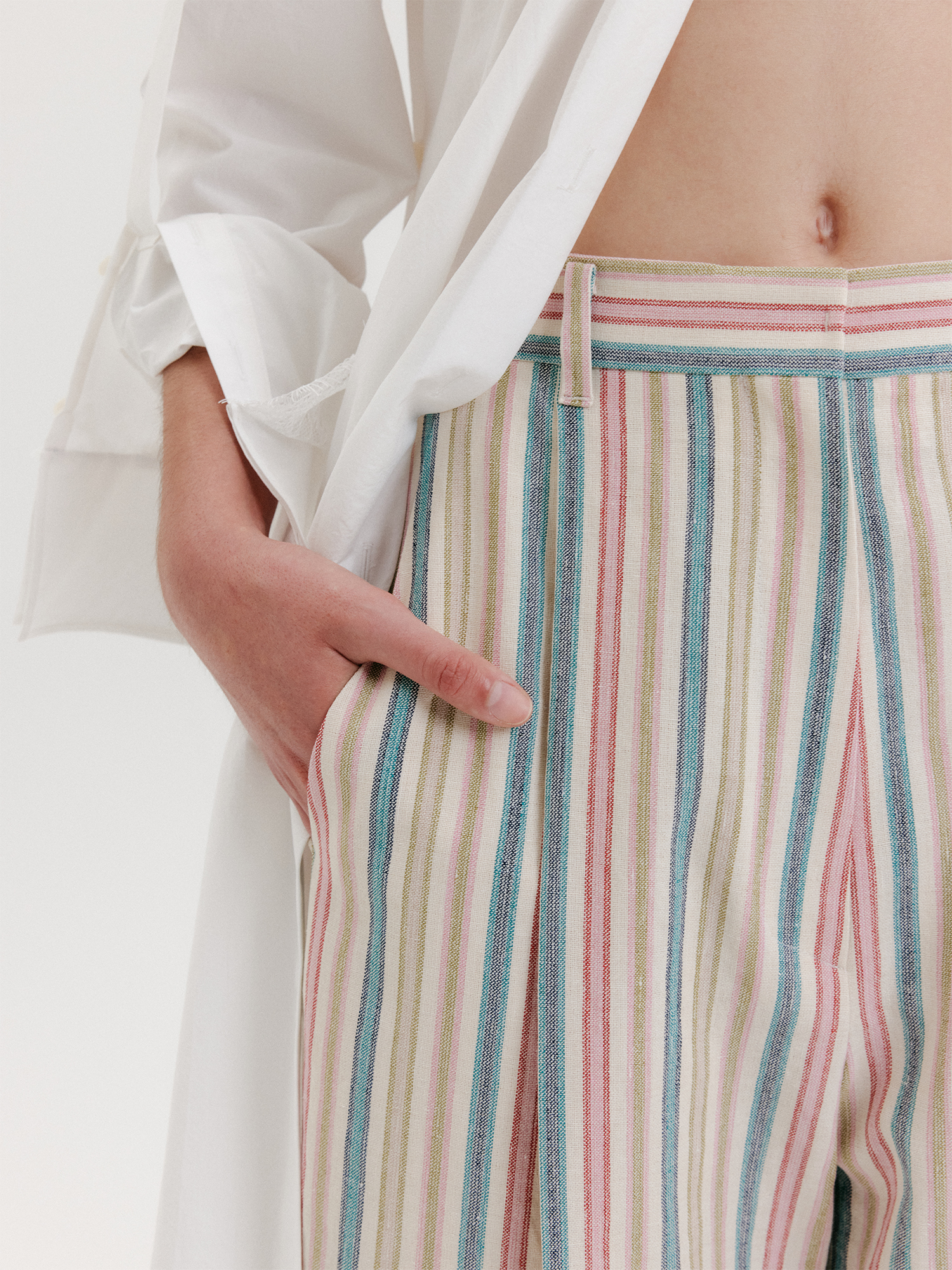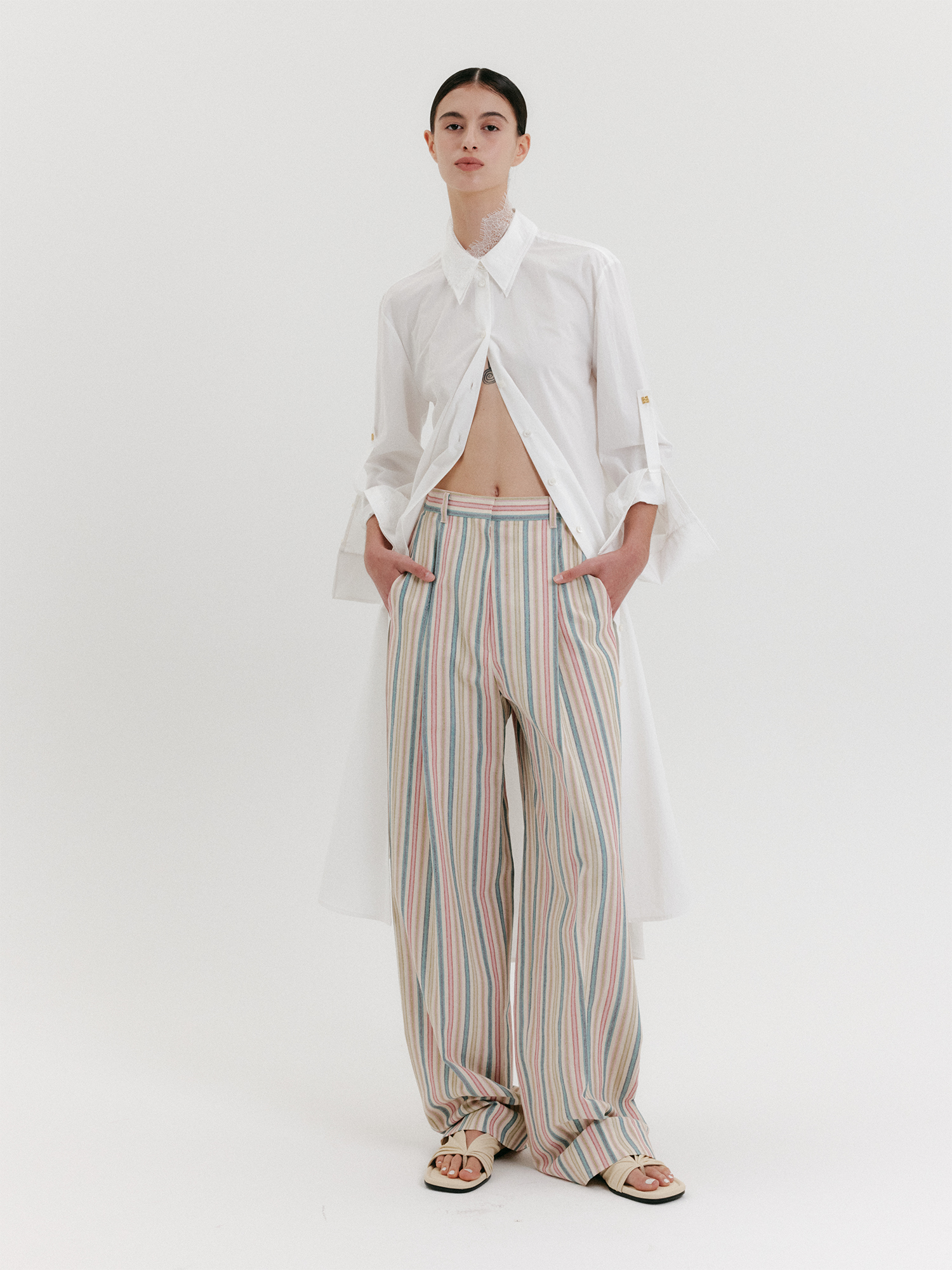 - 와이드 핏의 하이라이즈 팬츠