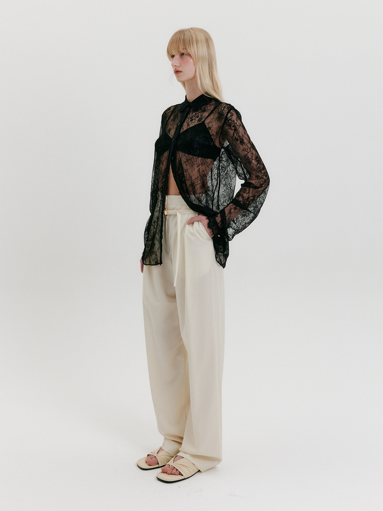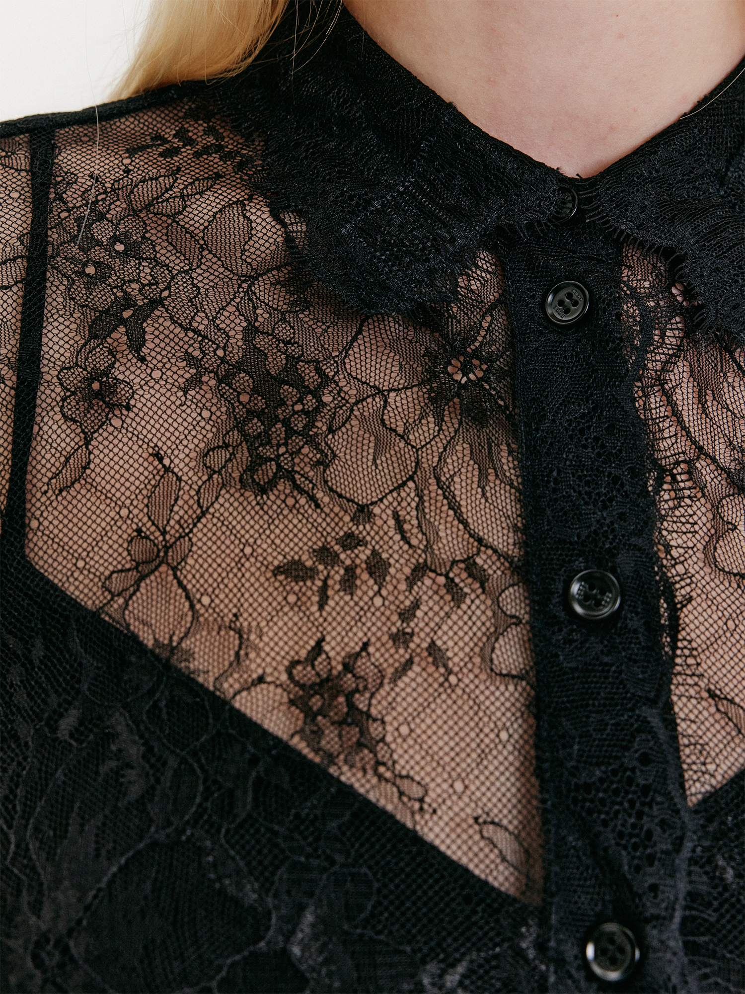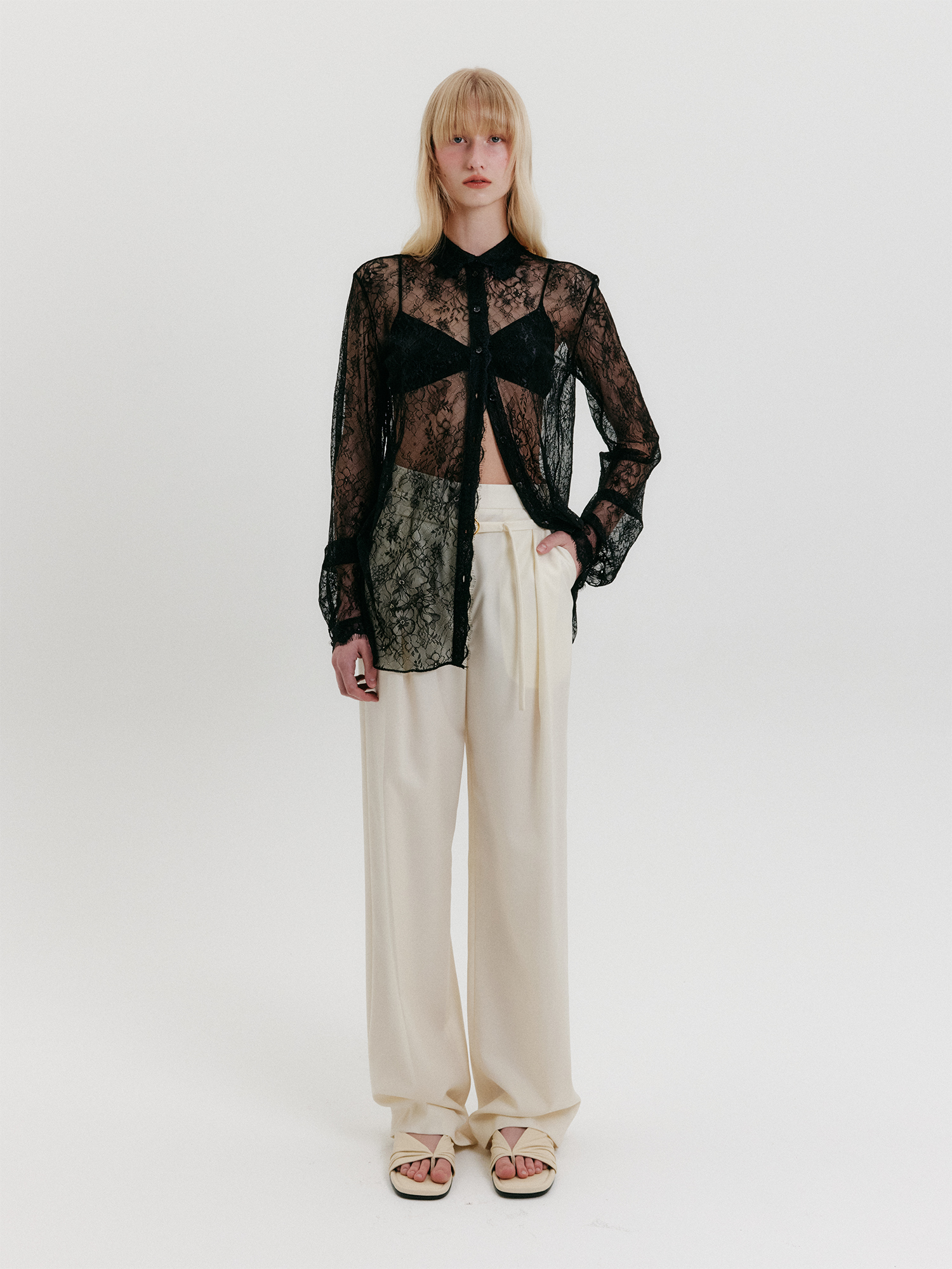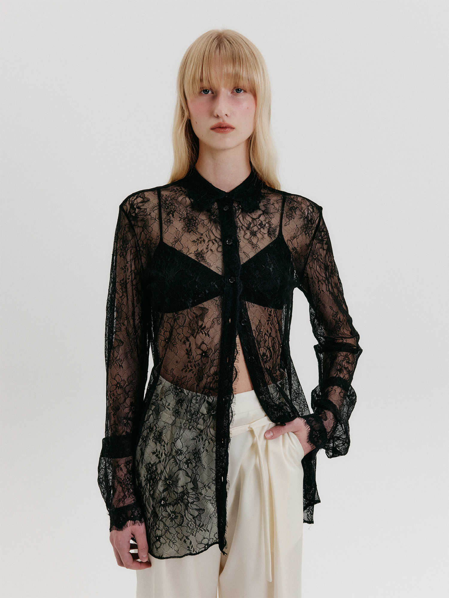 - 카라,커프스,플라켓 부분 레이스 트리밍 디테일