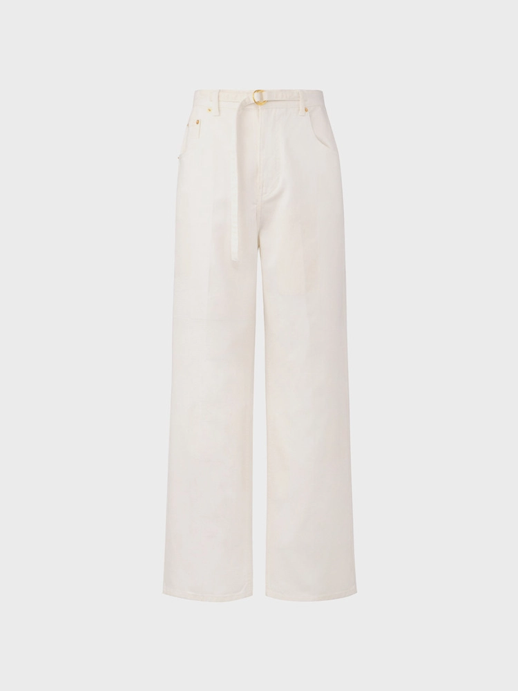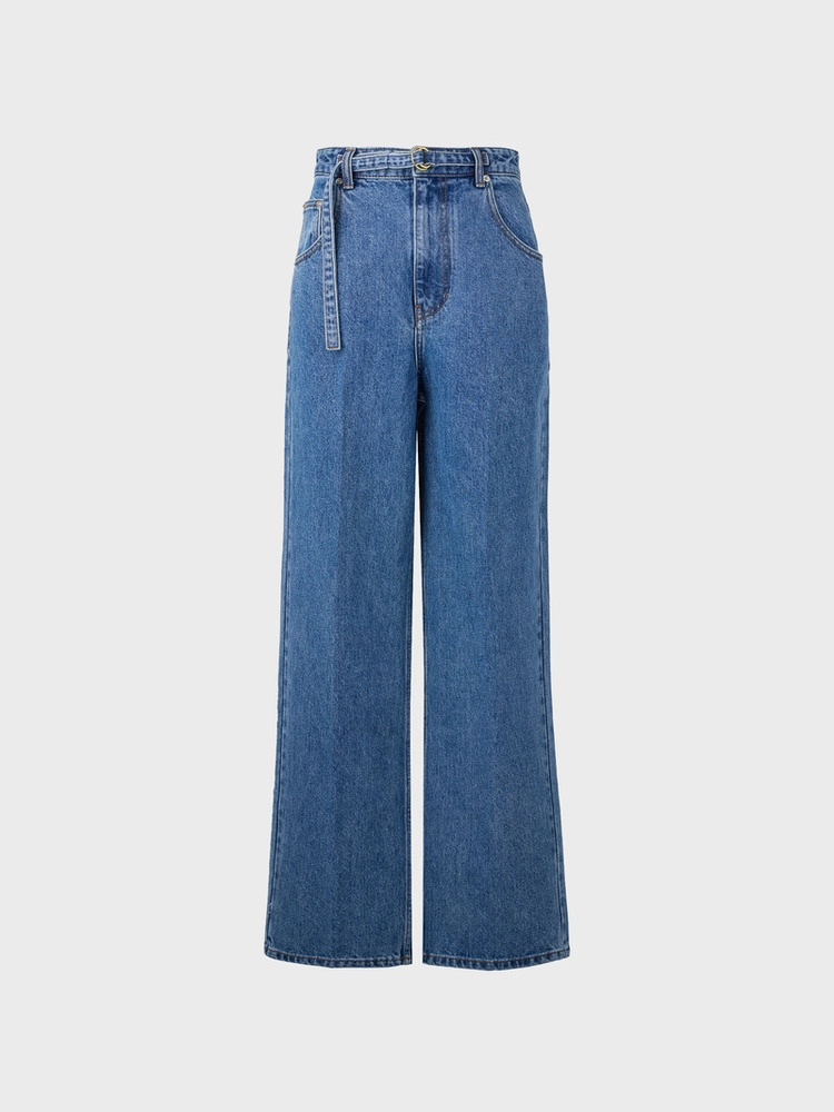 Belted Straight Denim Pants - Blue