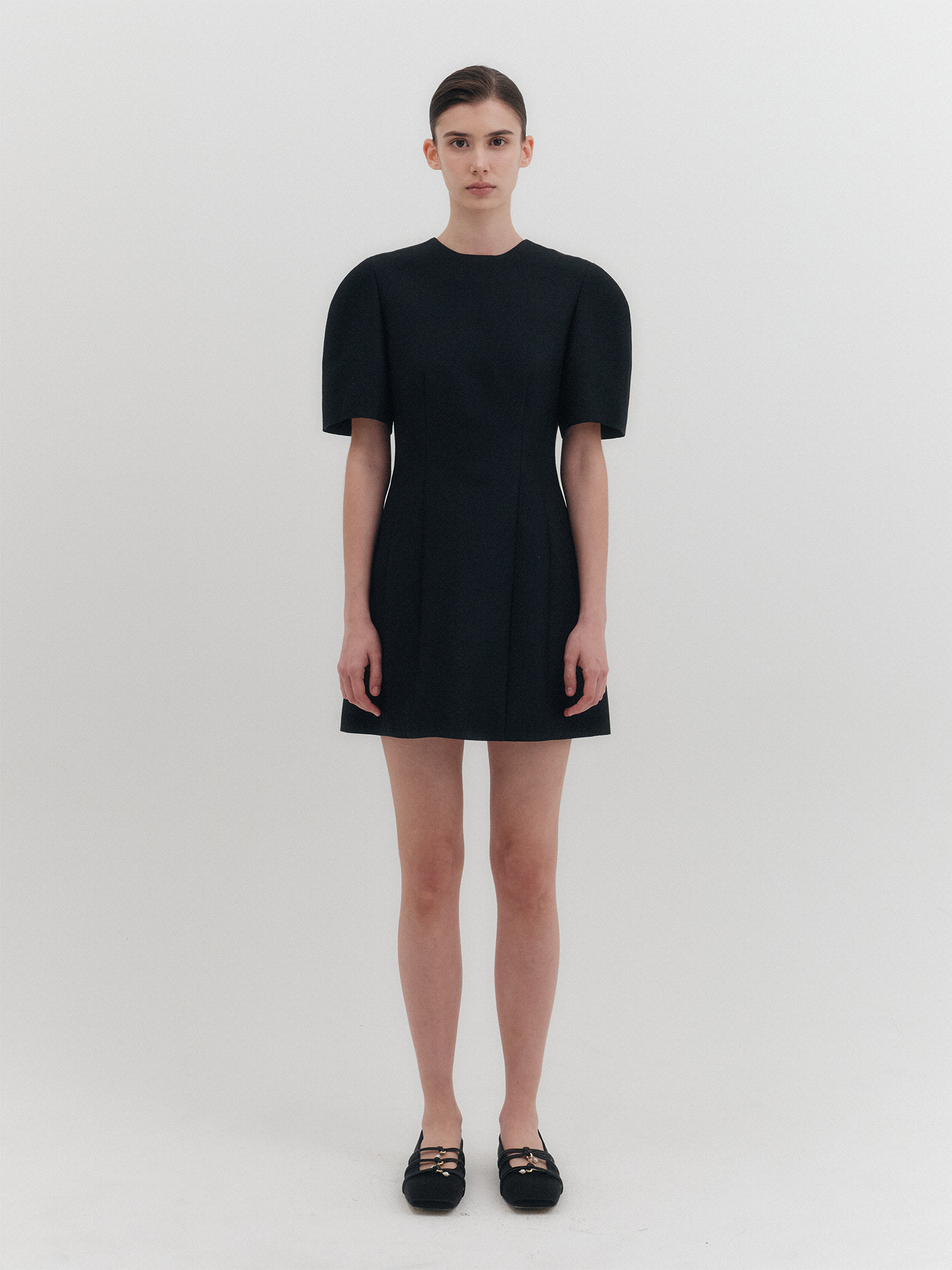 - 볼륨감 있는 하프 슬리브 & A라인 스커트