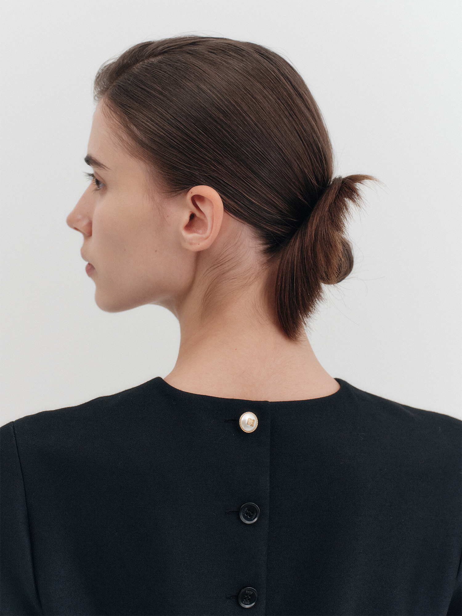 - 후면 나비 로고 금장 진주 장식, 버튼 여밈