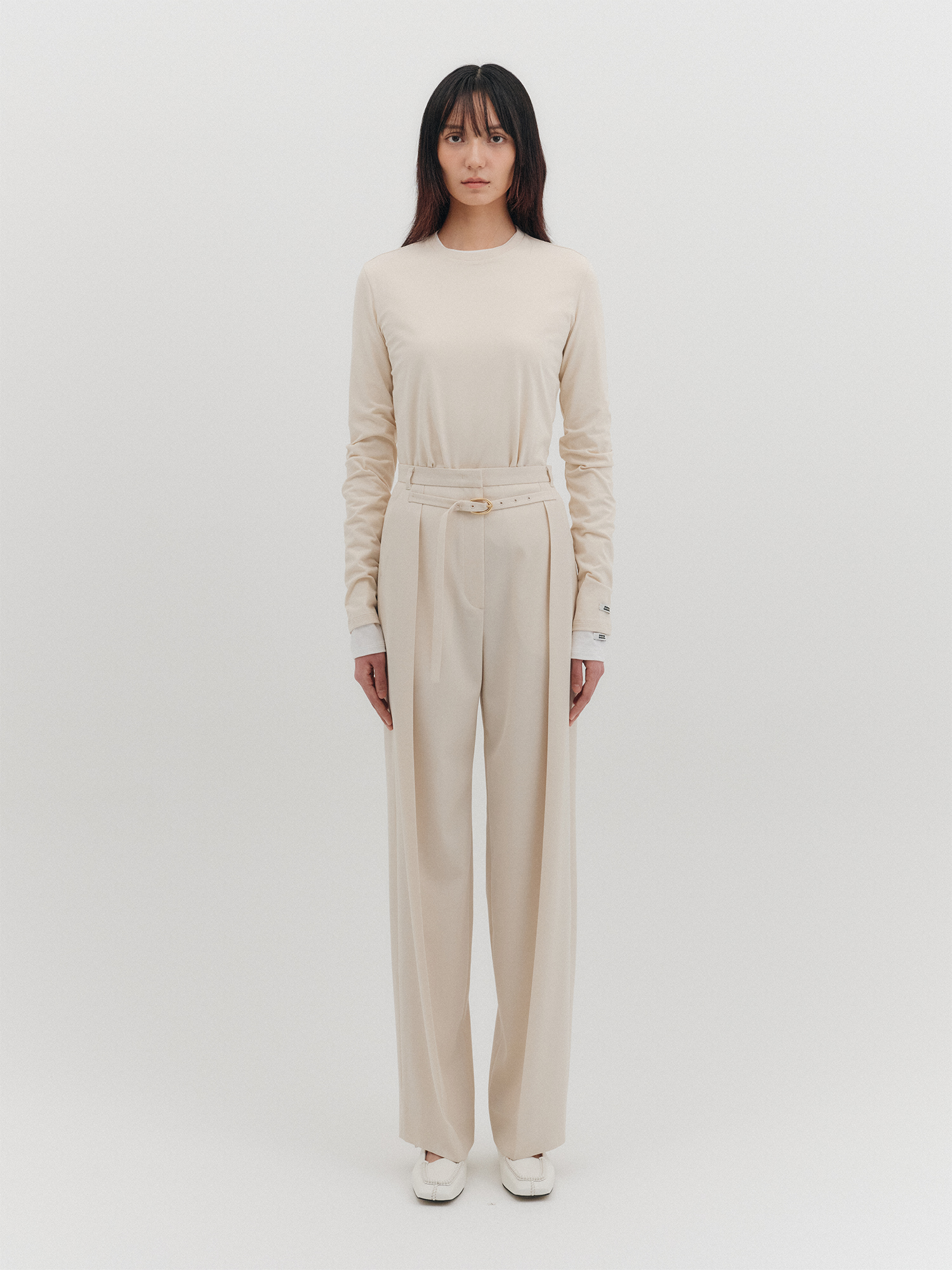 - EENK의 에센셜 라인 벨티드 턱 팬츠