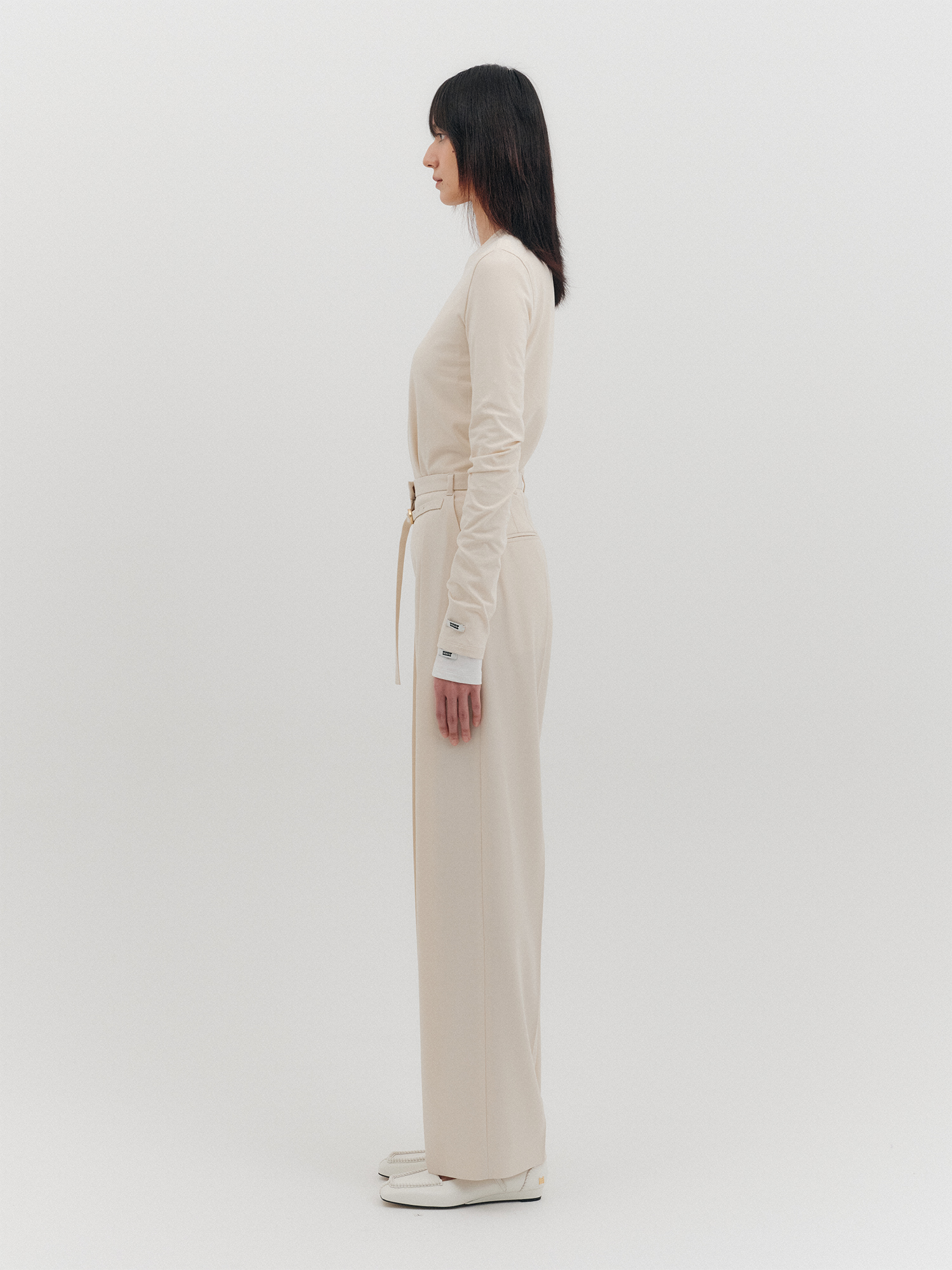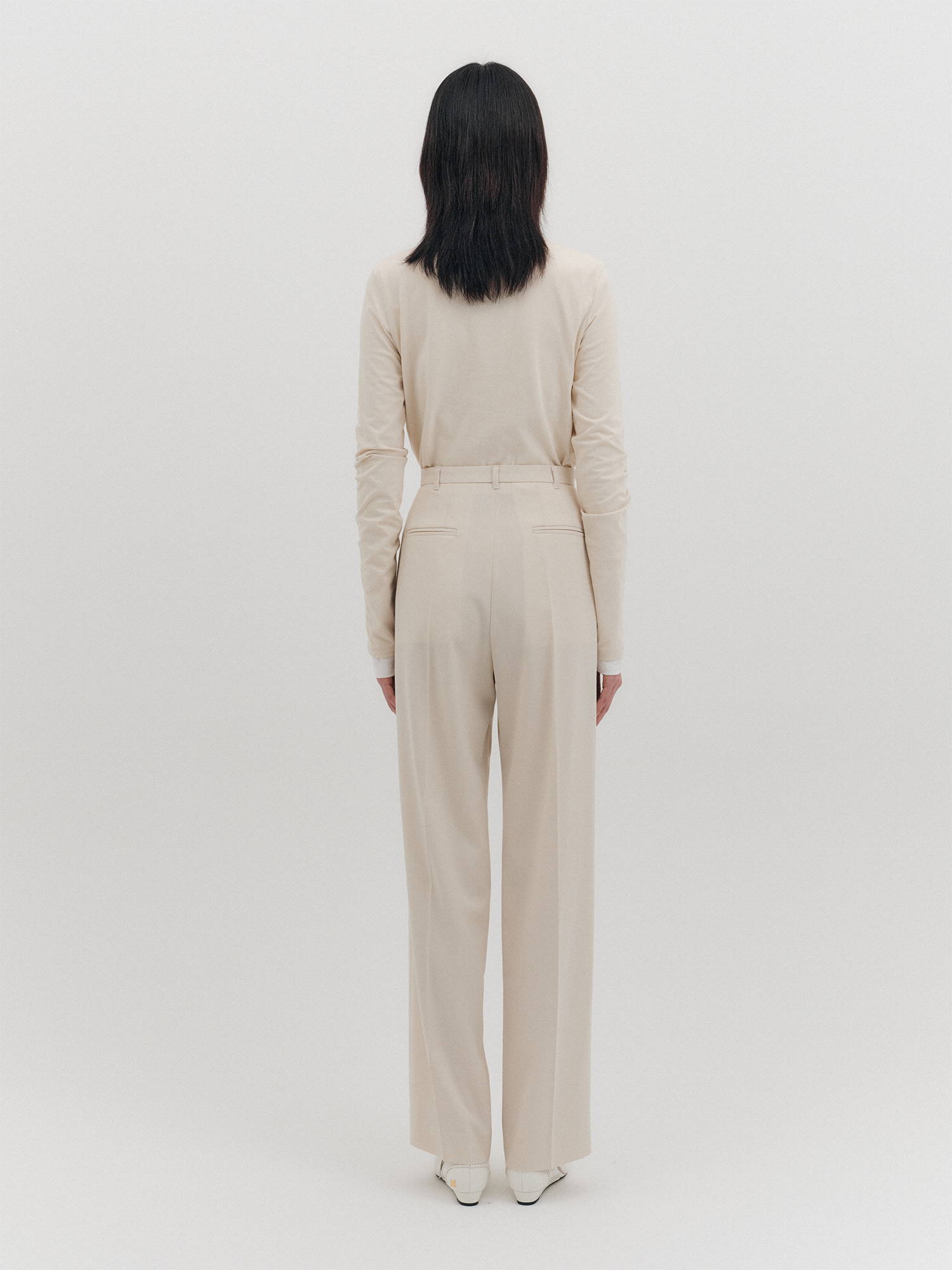 - 허리 중심의 핀턱 디테일로 구조적인 볼륨감