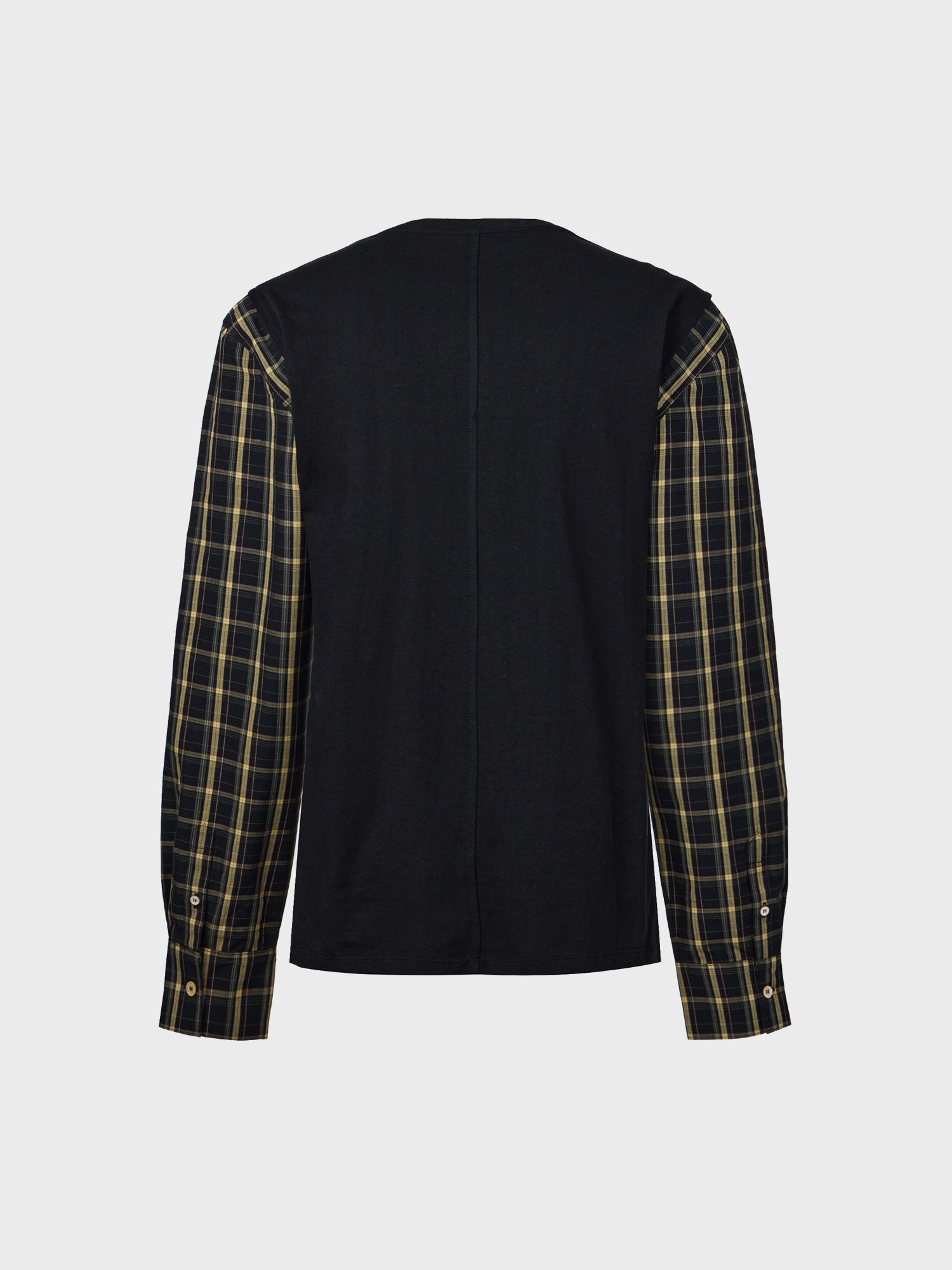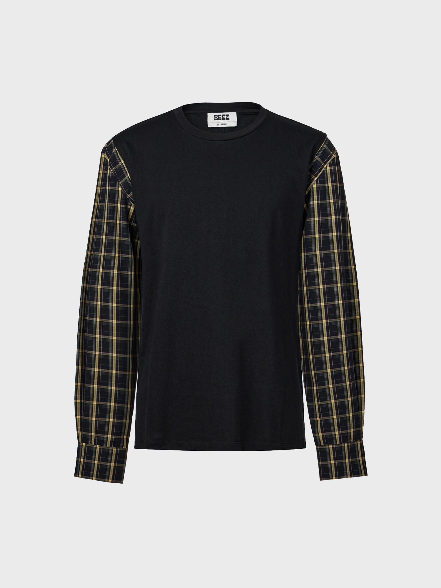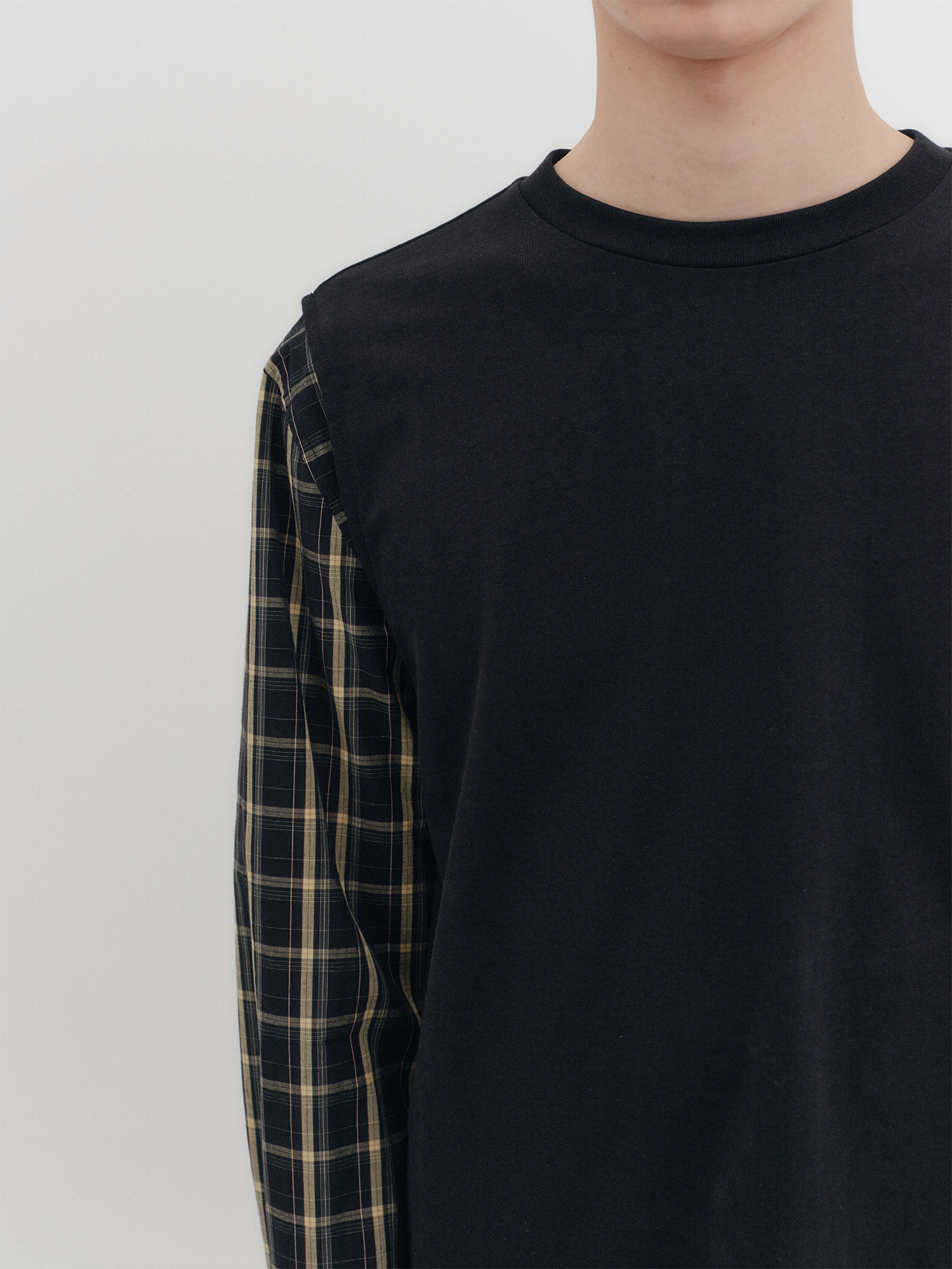 배색 롱 슬리브 탑- 블랙