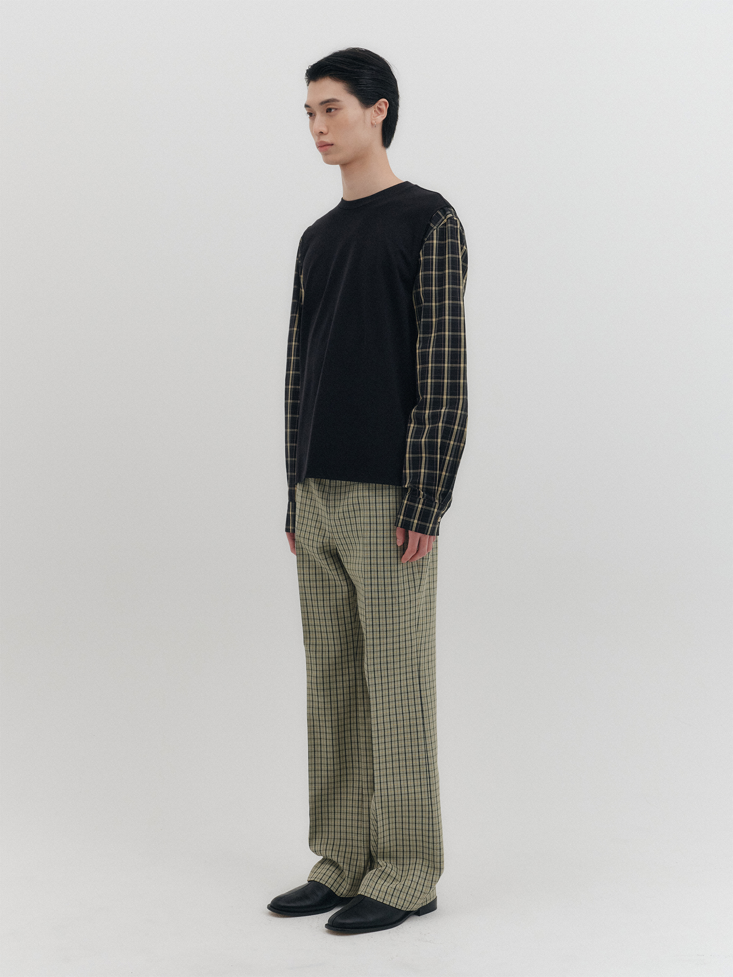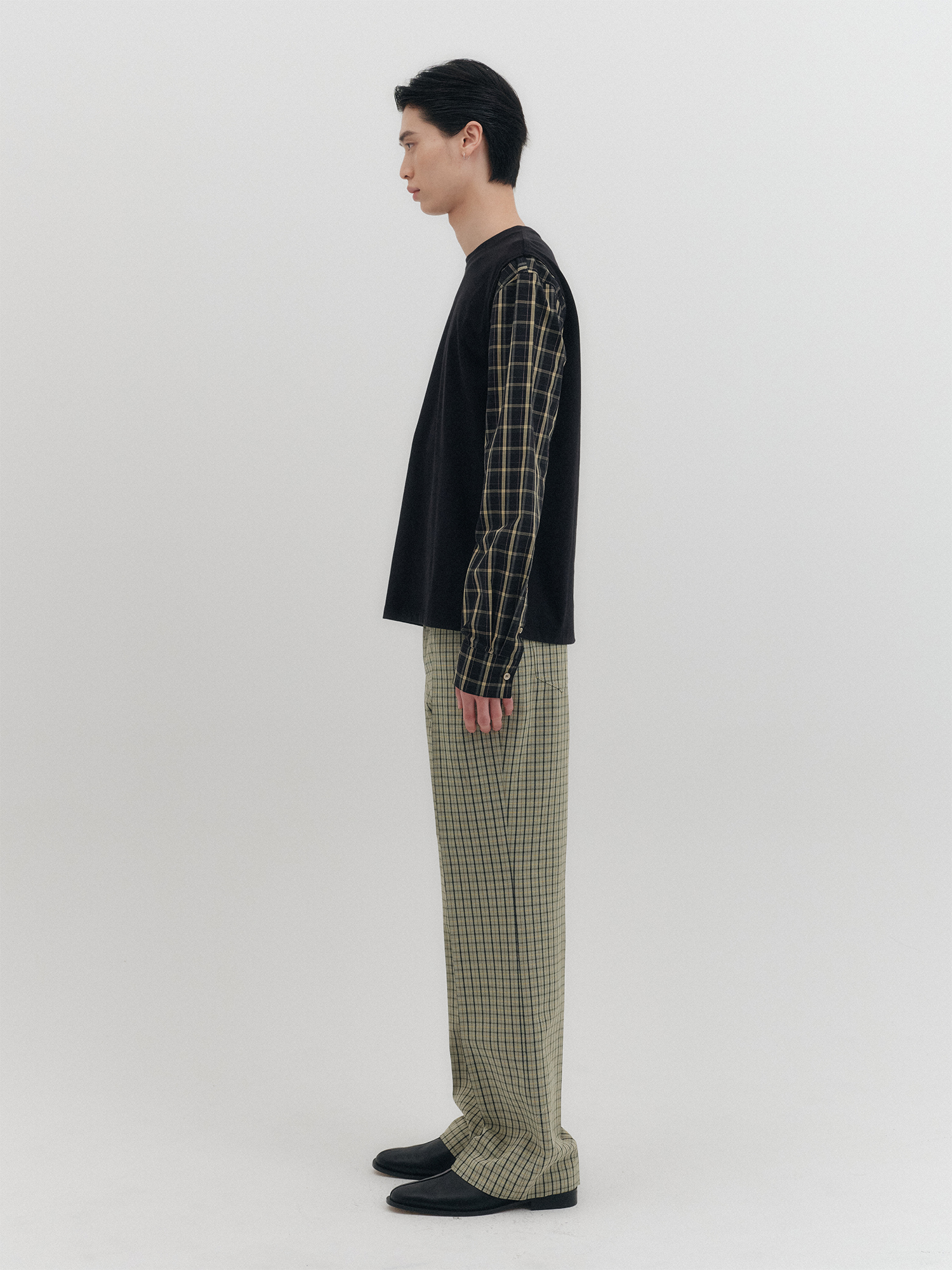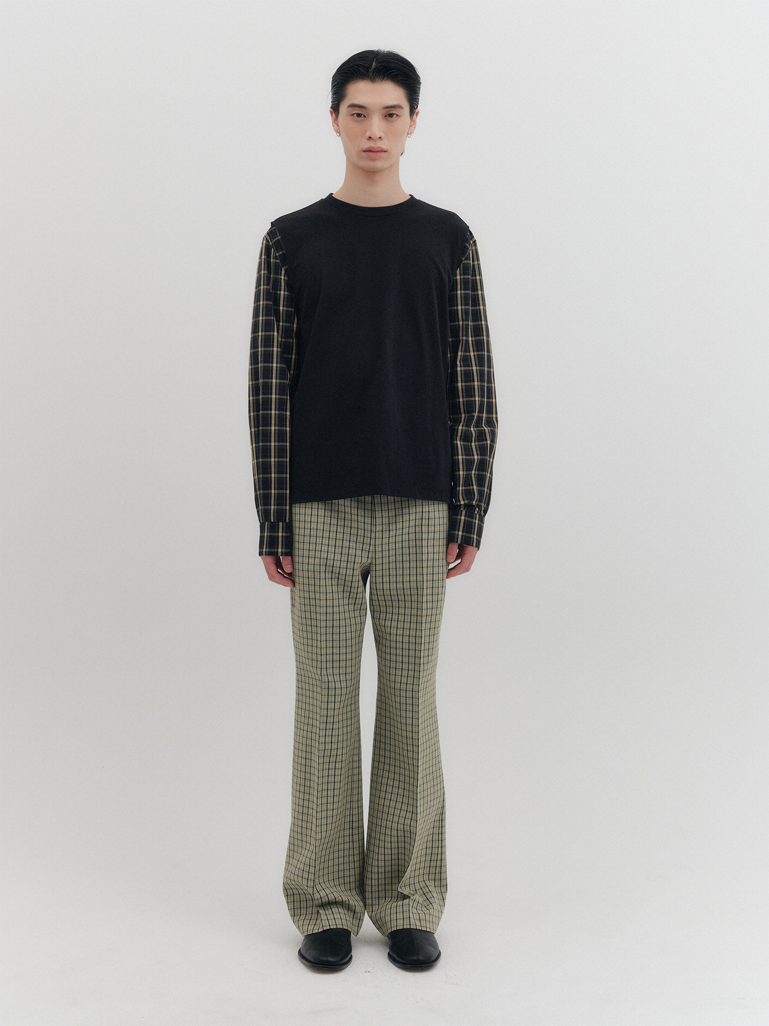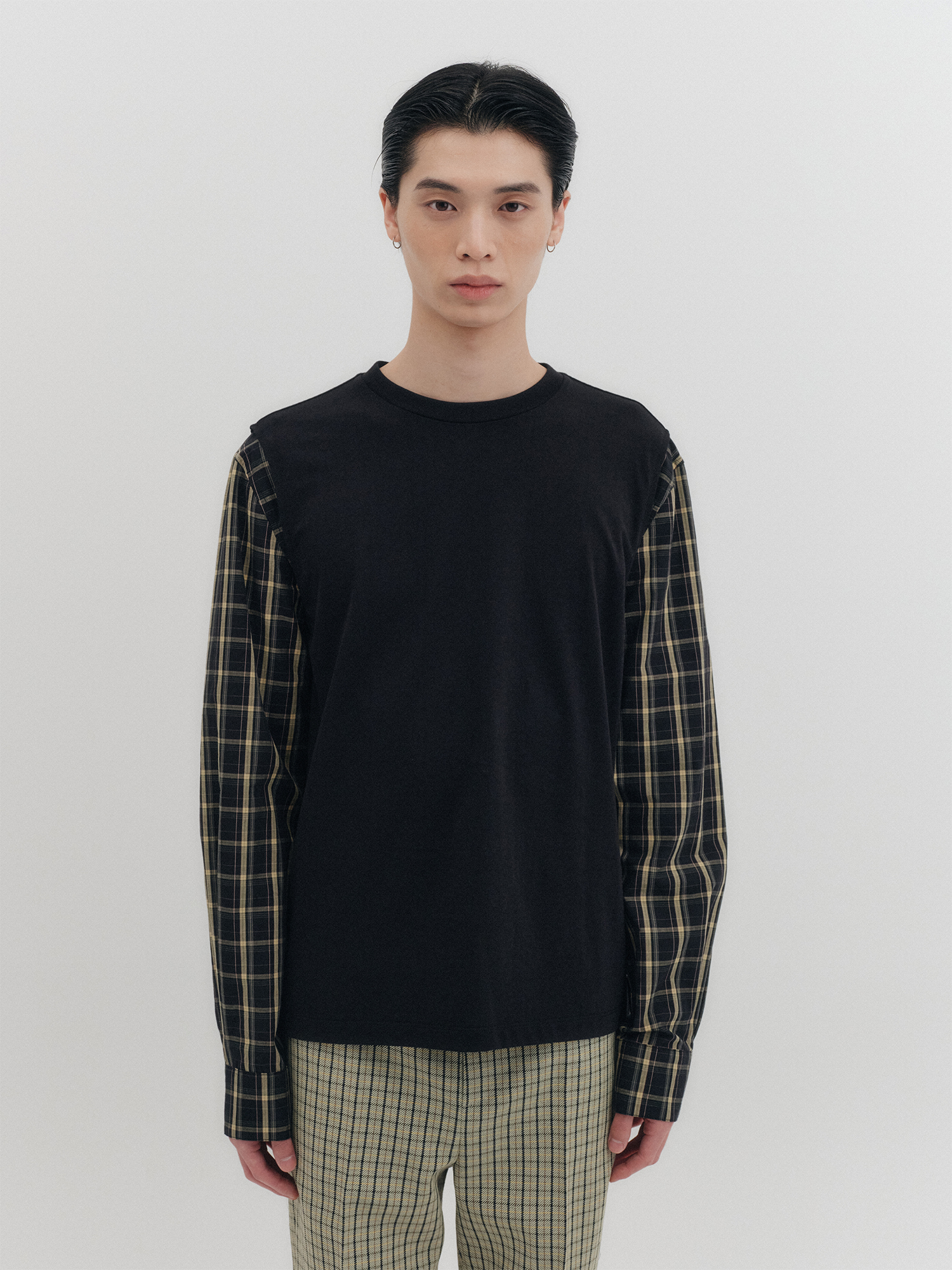 배색 롱 슬리브 탑- 블랙
