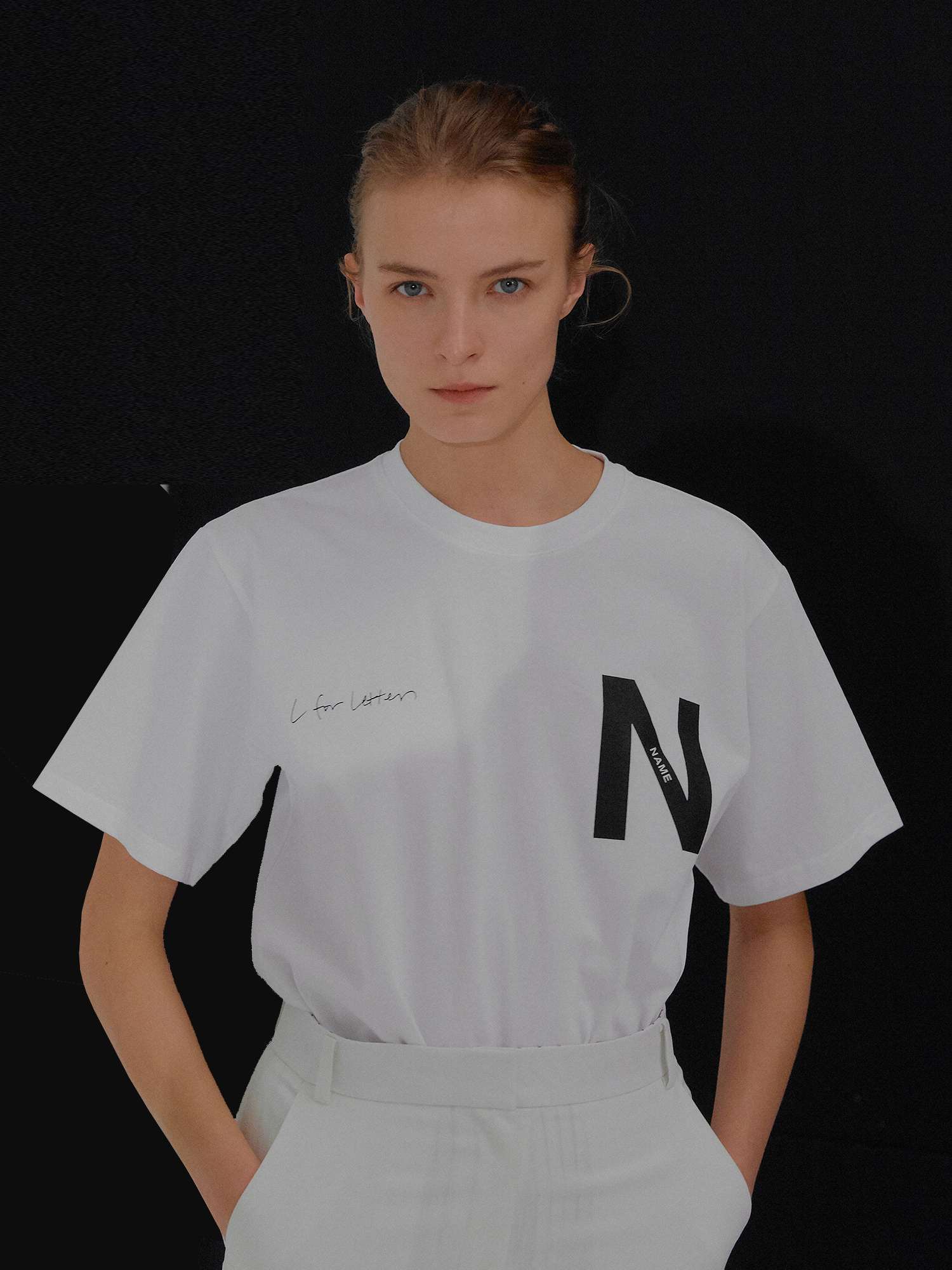 - L for Letter 라인의 알파벳 프린팅 티셔츠입니다.