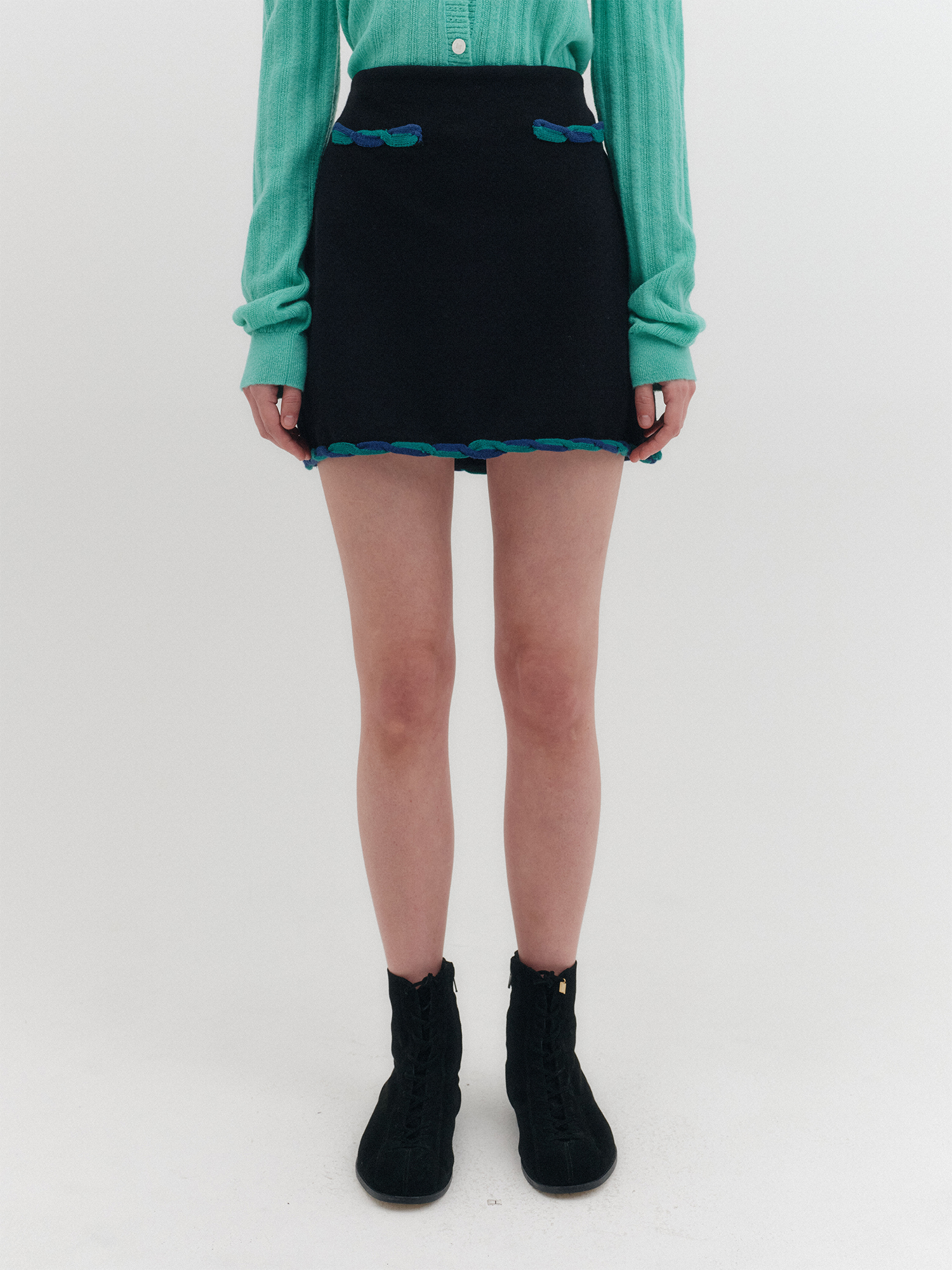 트위스트 엣지 니트 스커트 - 블랙