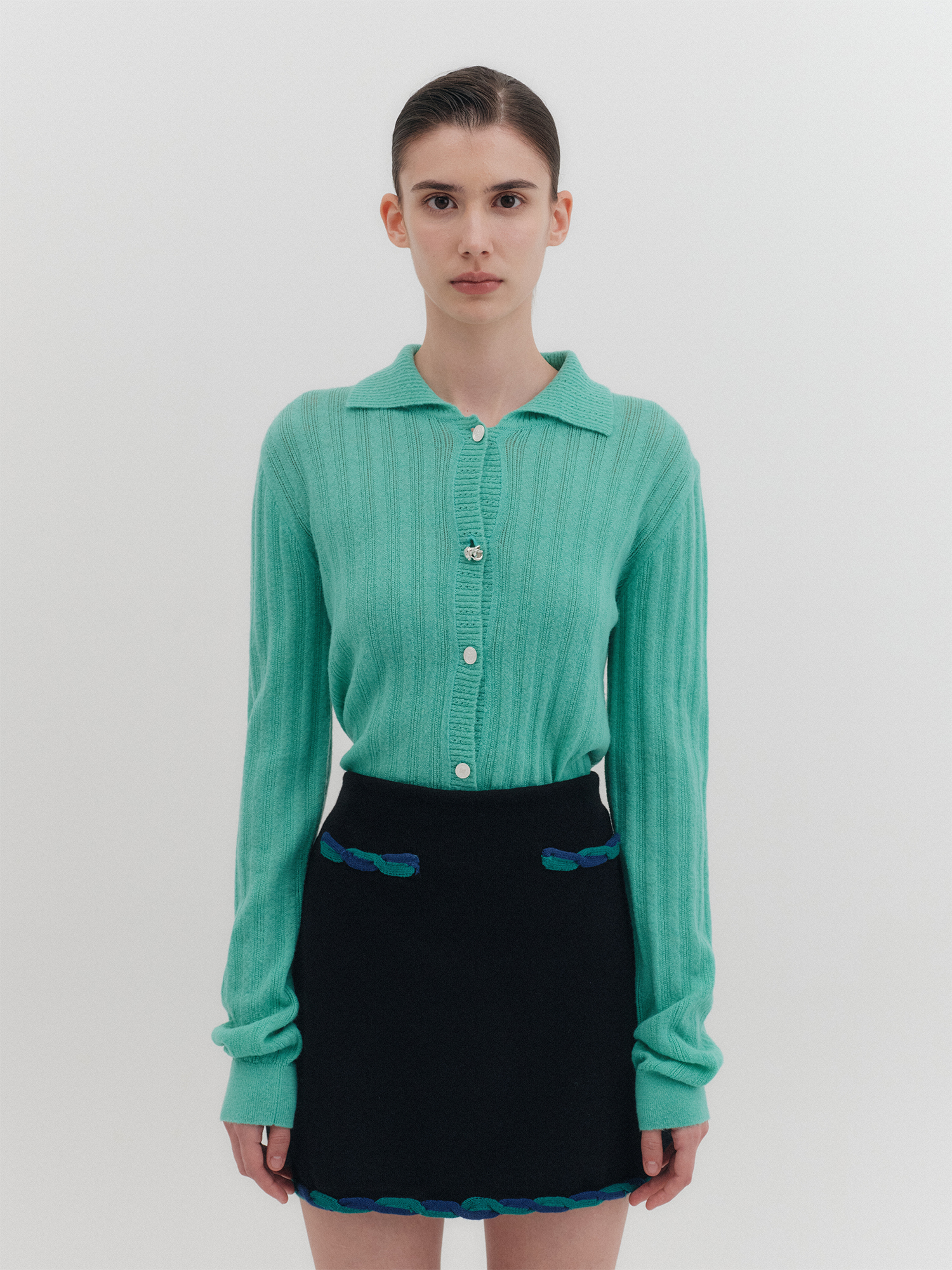- 밴딩, 마감라인 배색 트위스트 트리밍 디테일