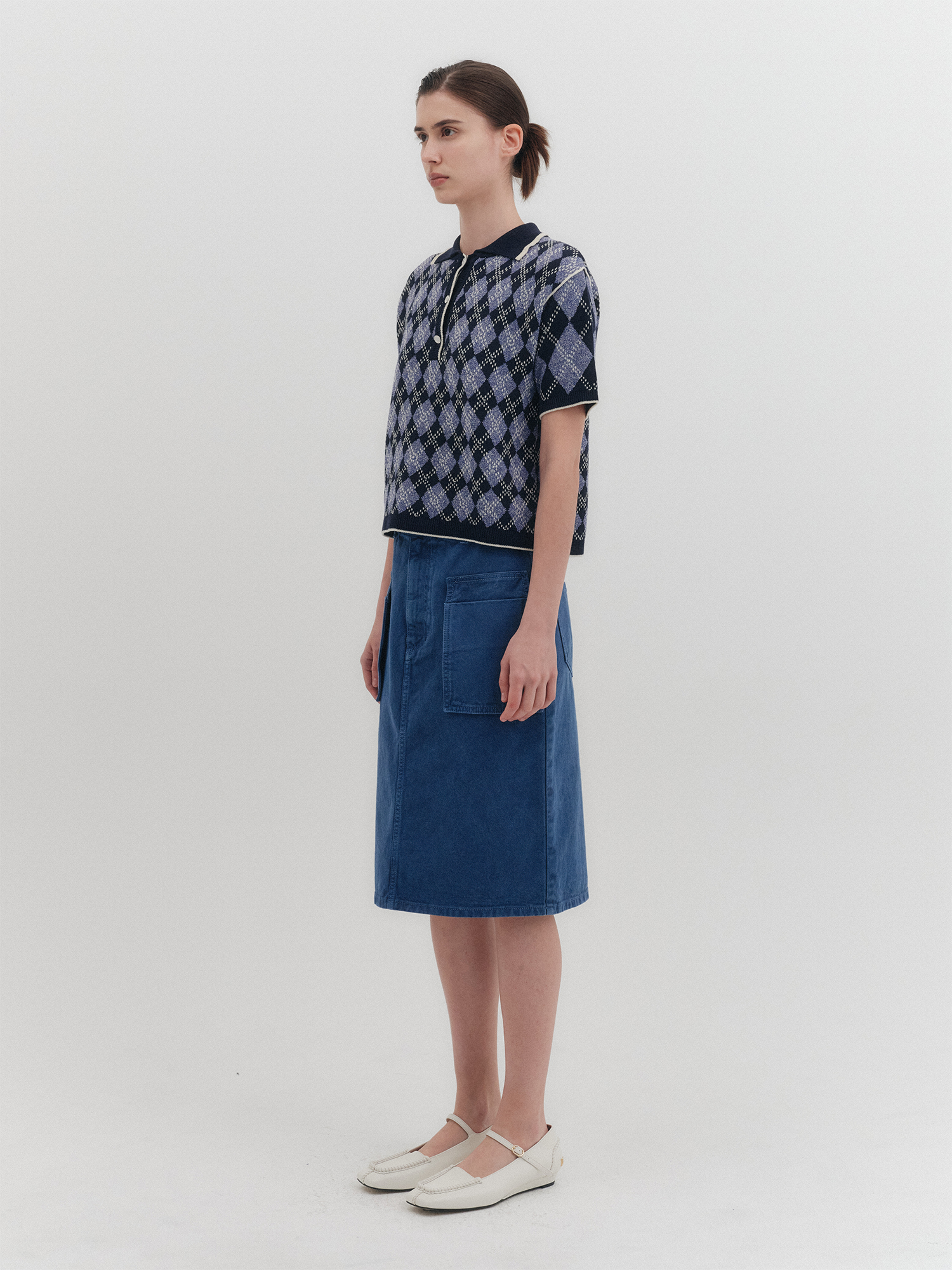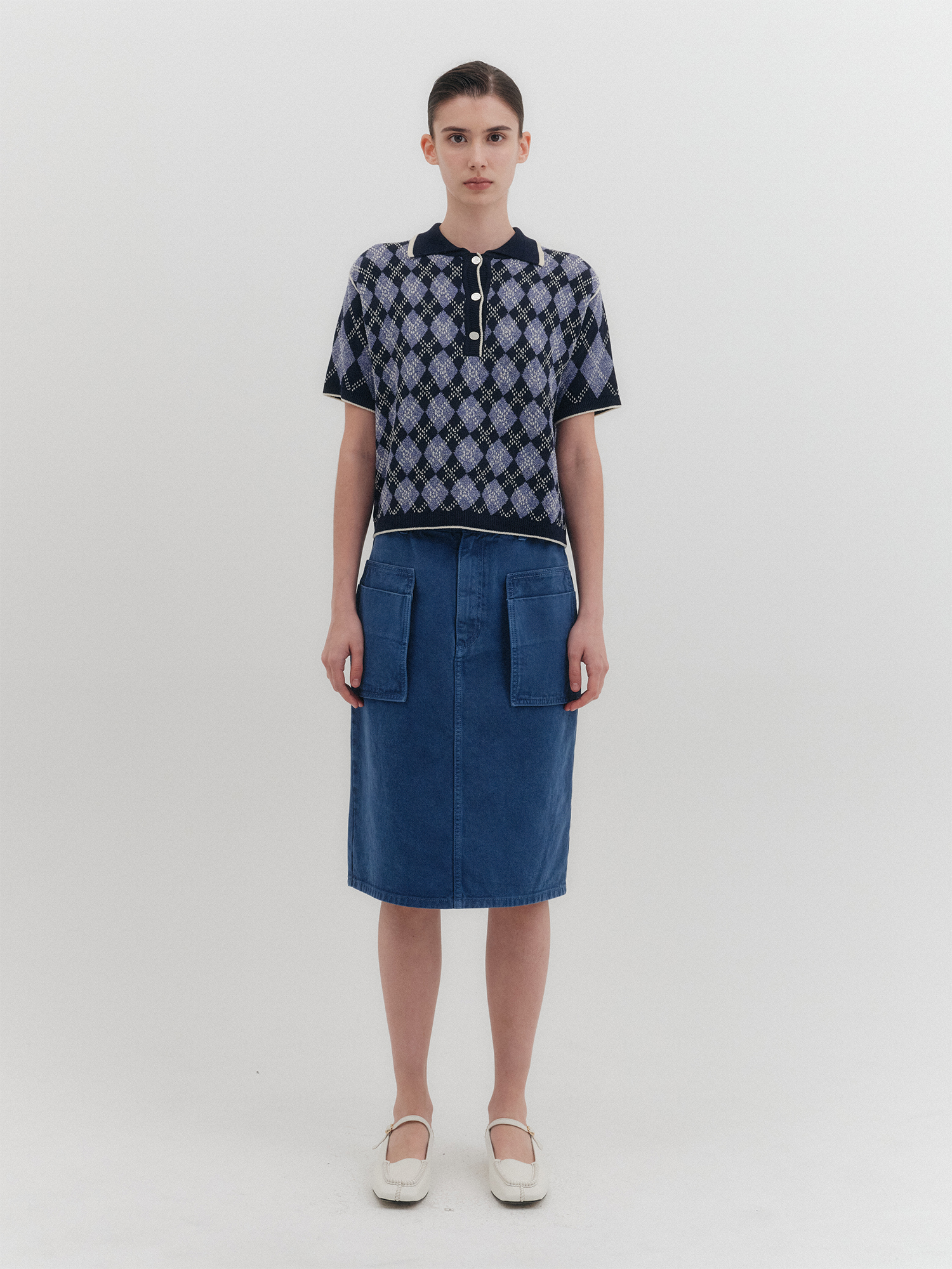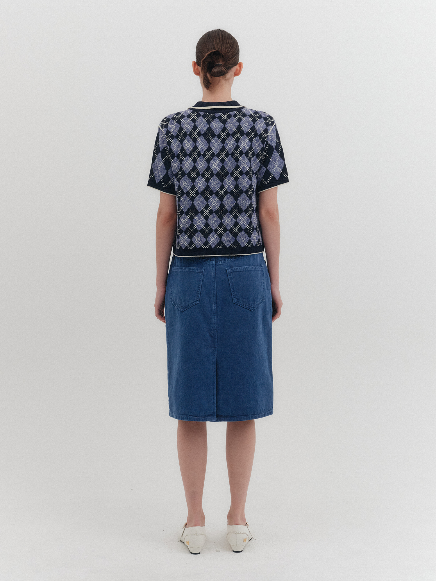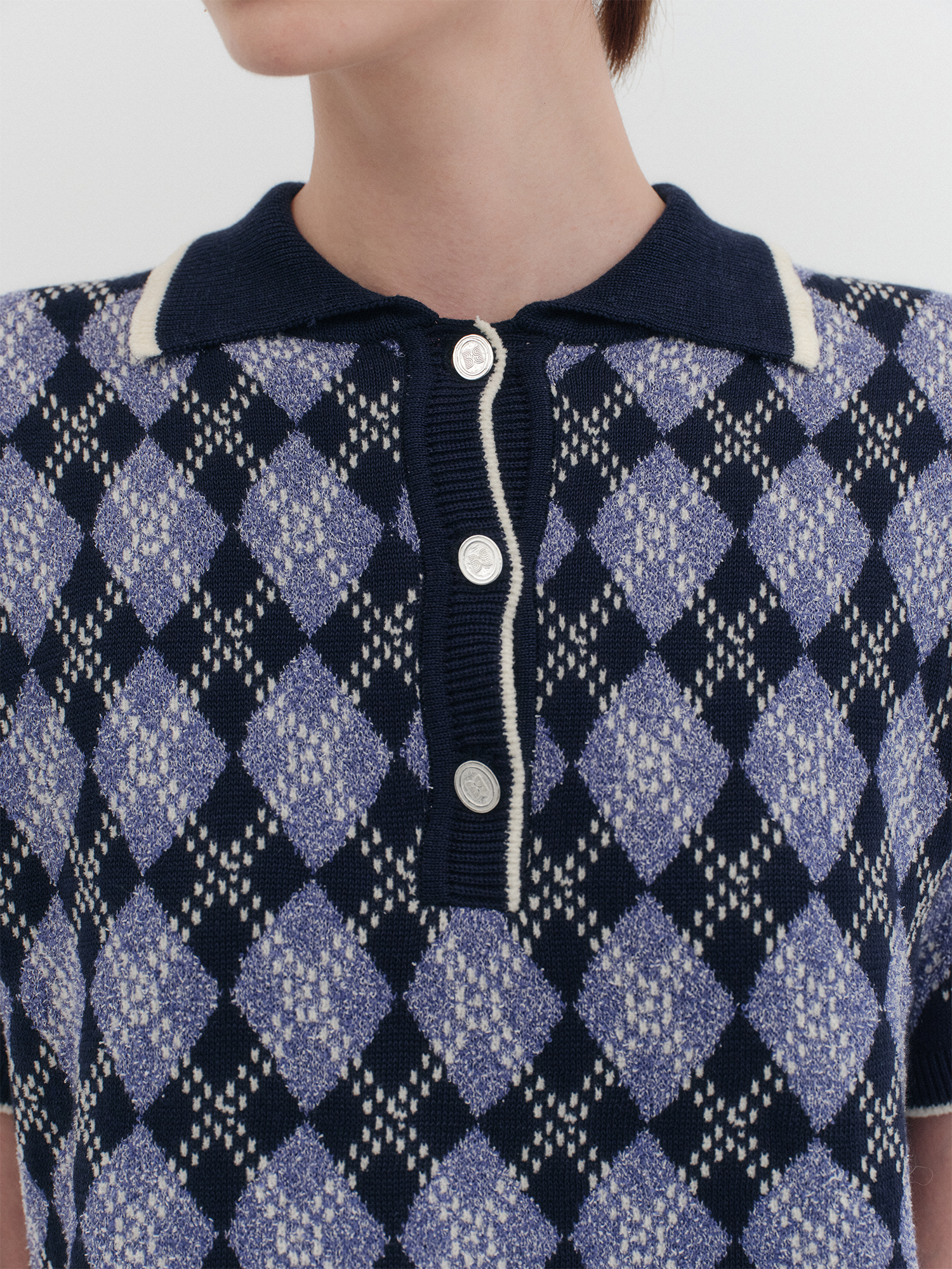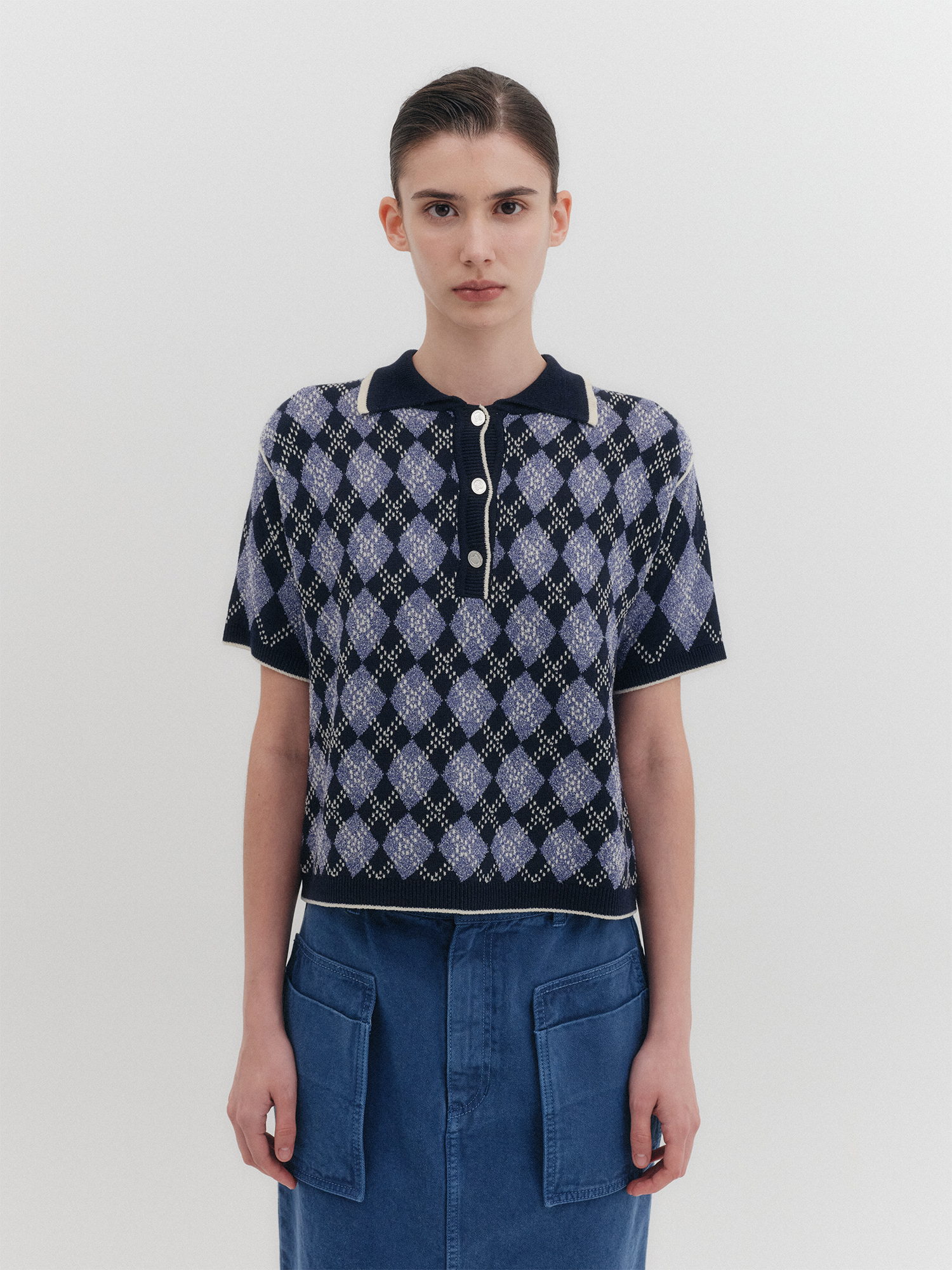 - 레귤러 핏 하프 슬리브 크롭 니트 탑