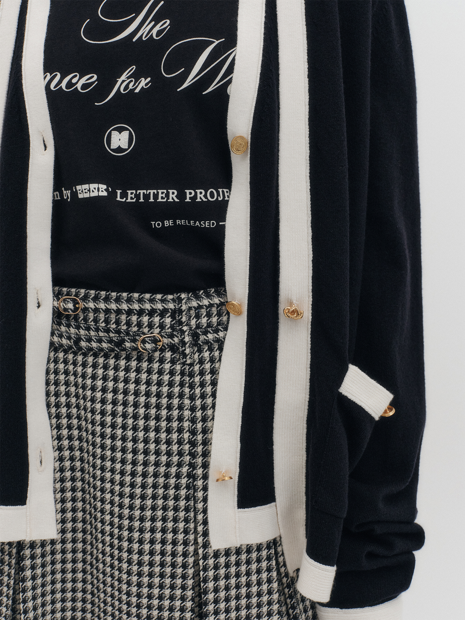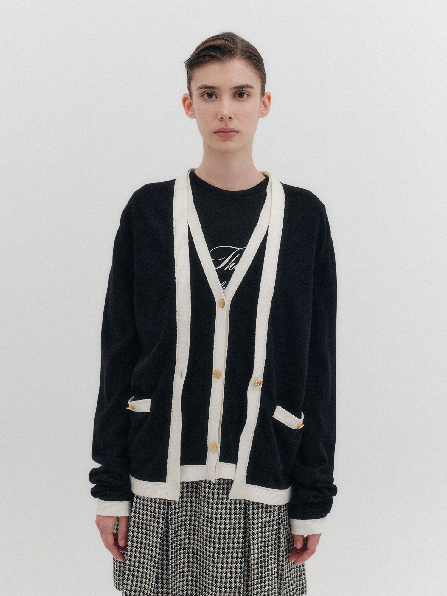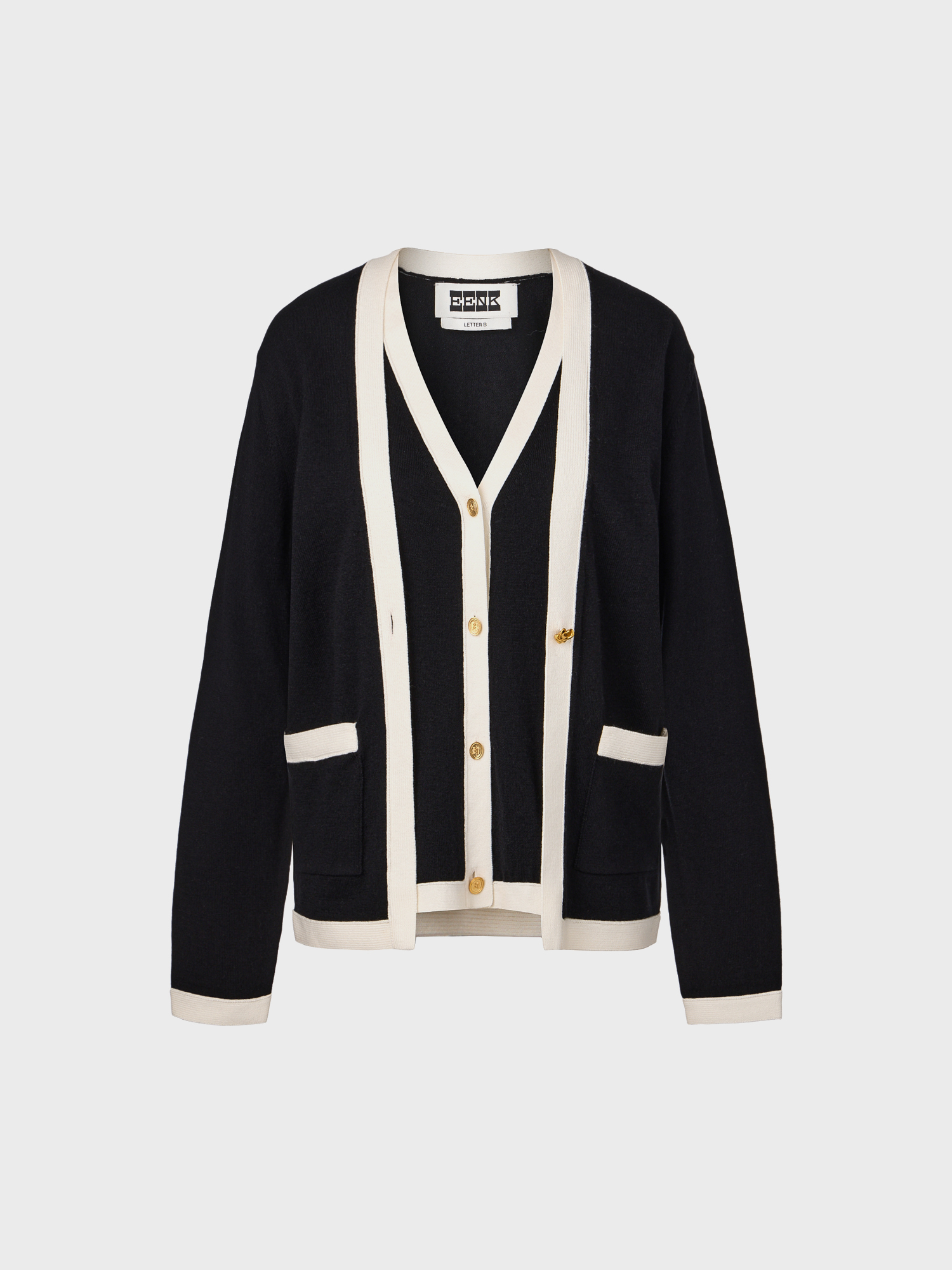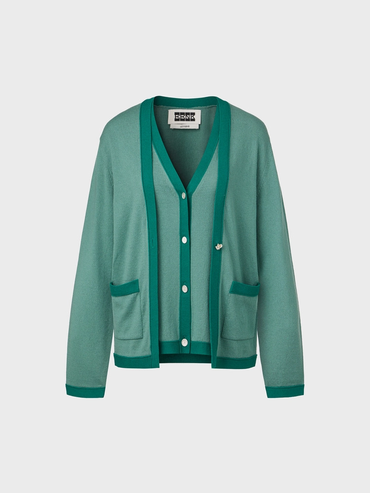 레이어드 니트 가디건 - 블랙