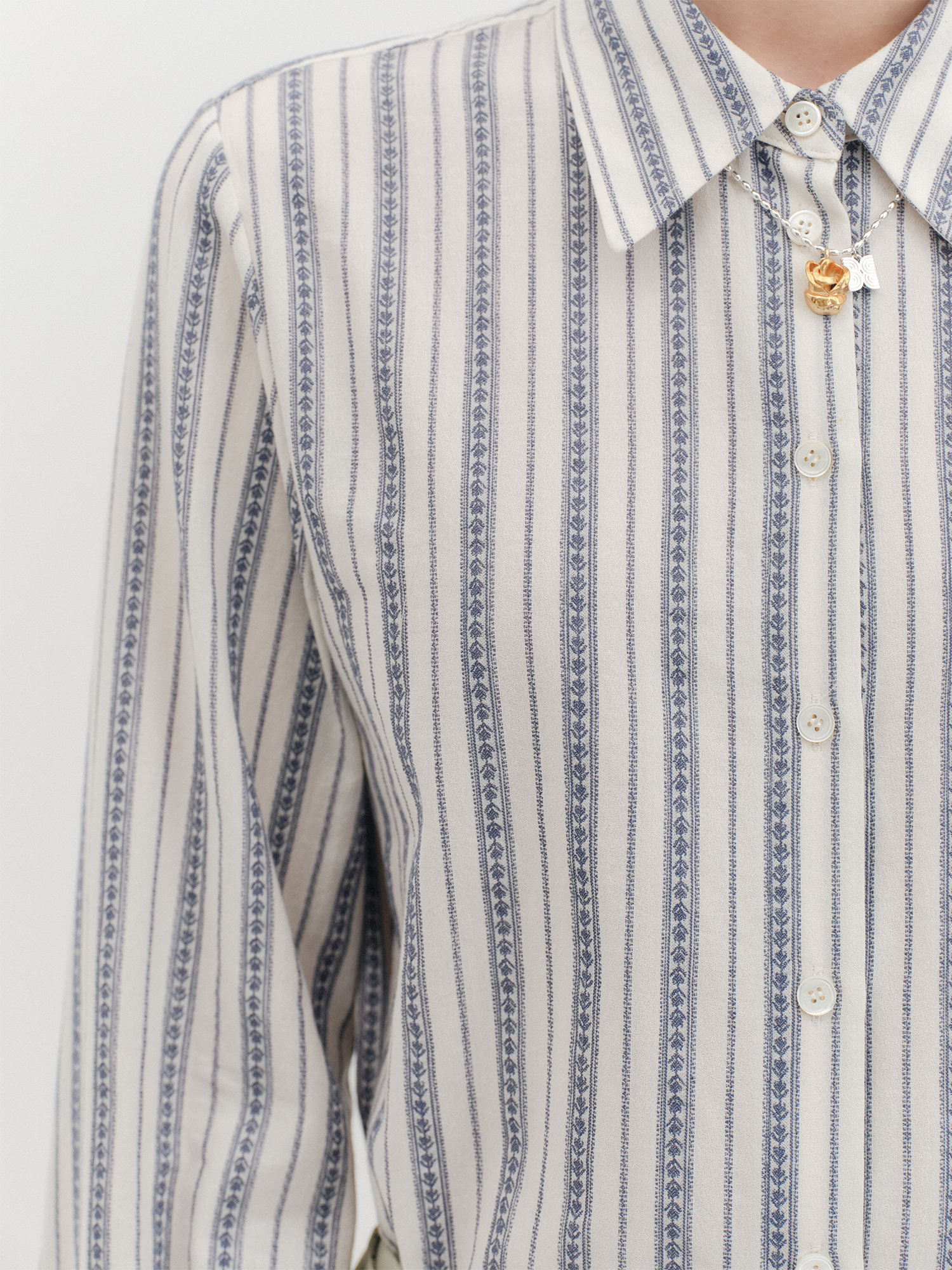 - 플라워 자카드 디테일의 스트라이프 패턴