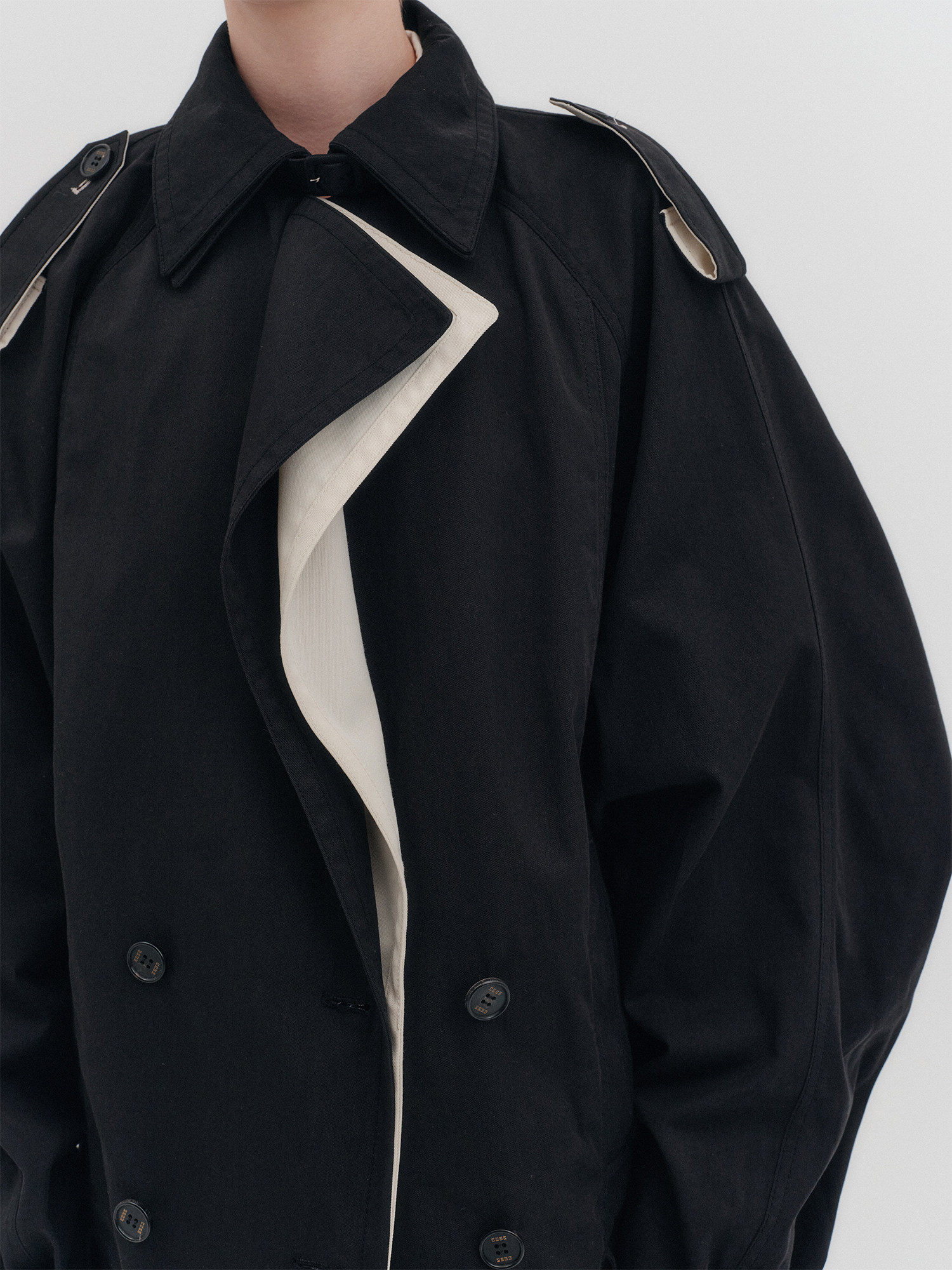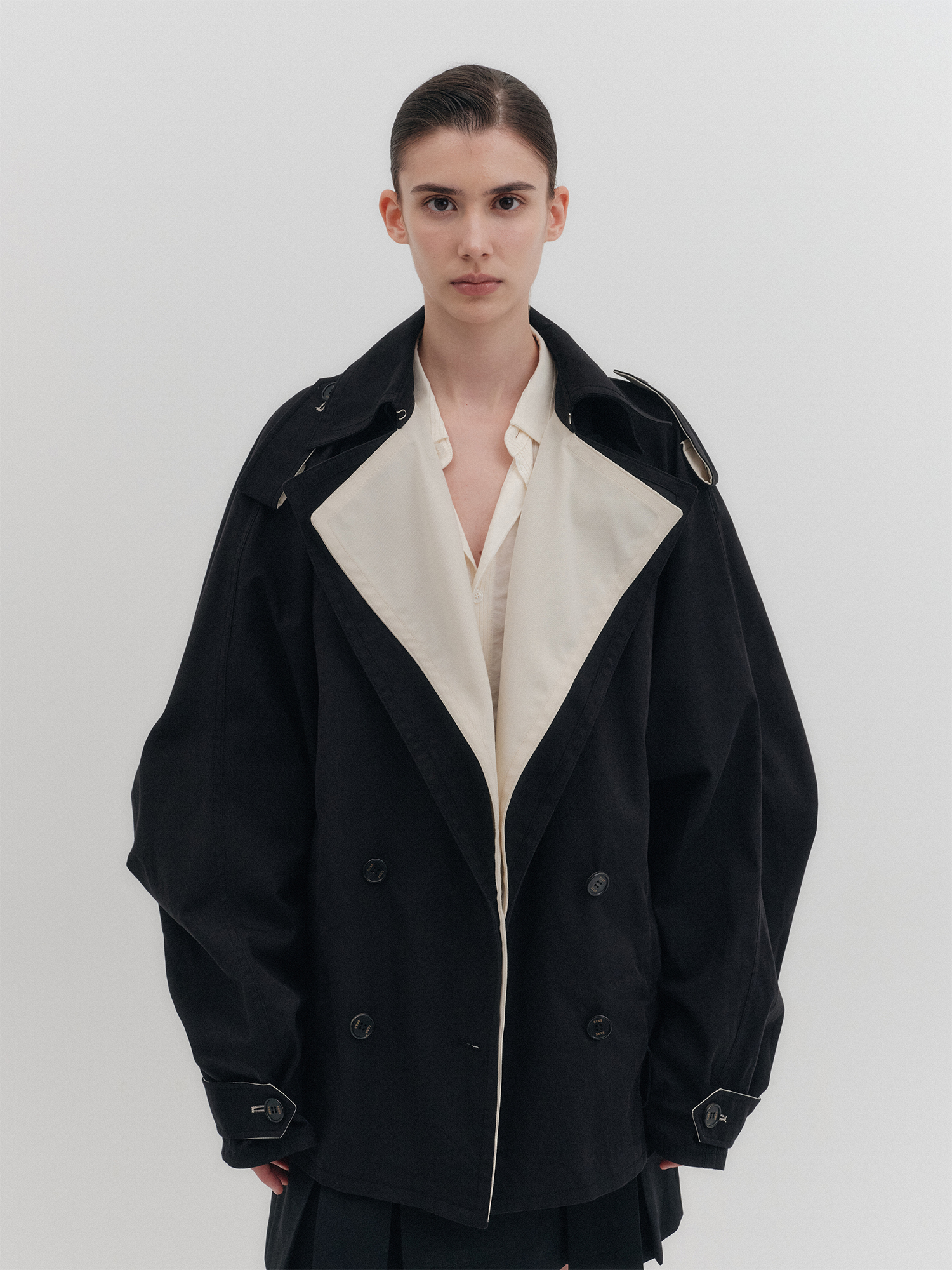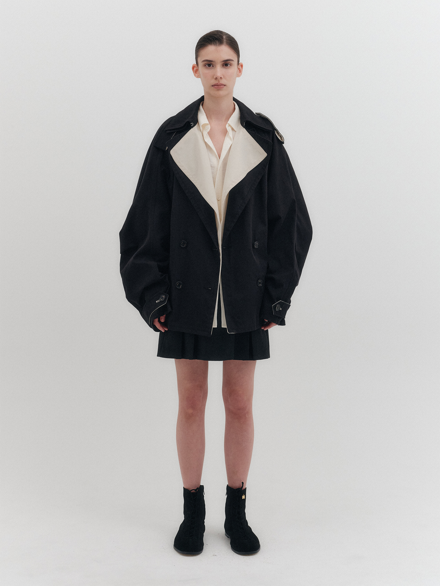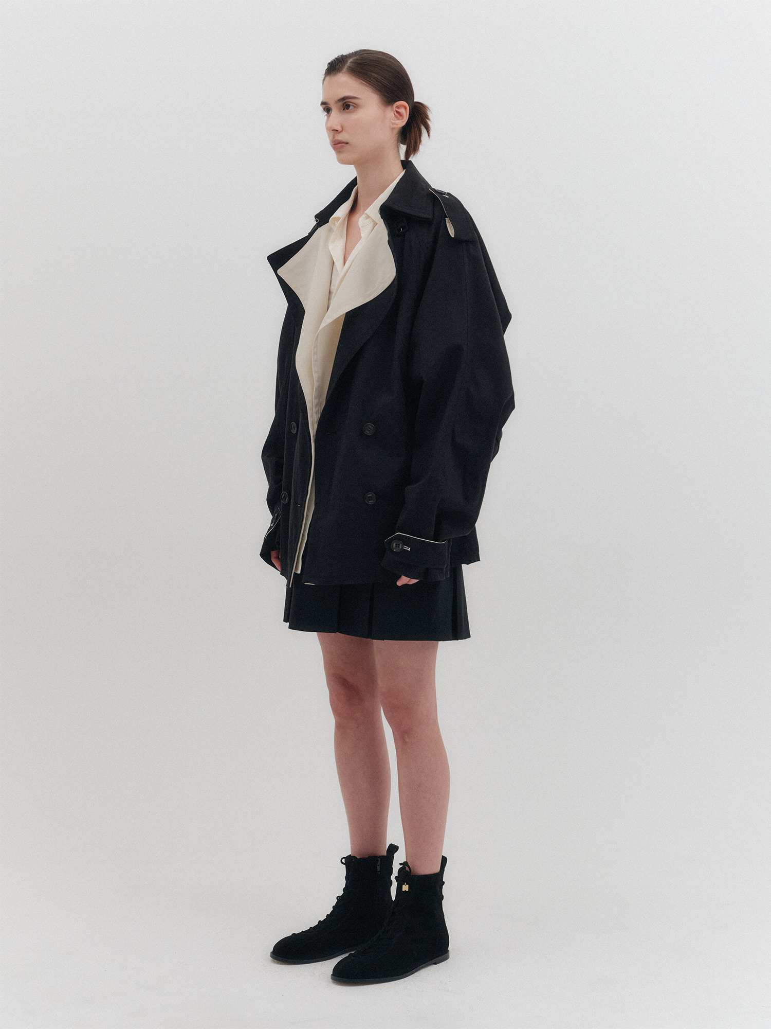 - 오버 핏 하프 트렌치 코트
