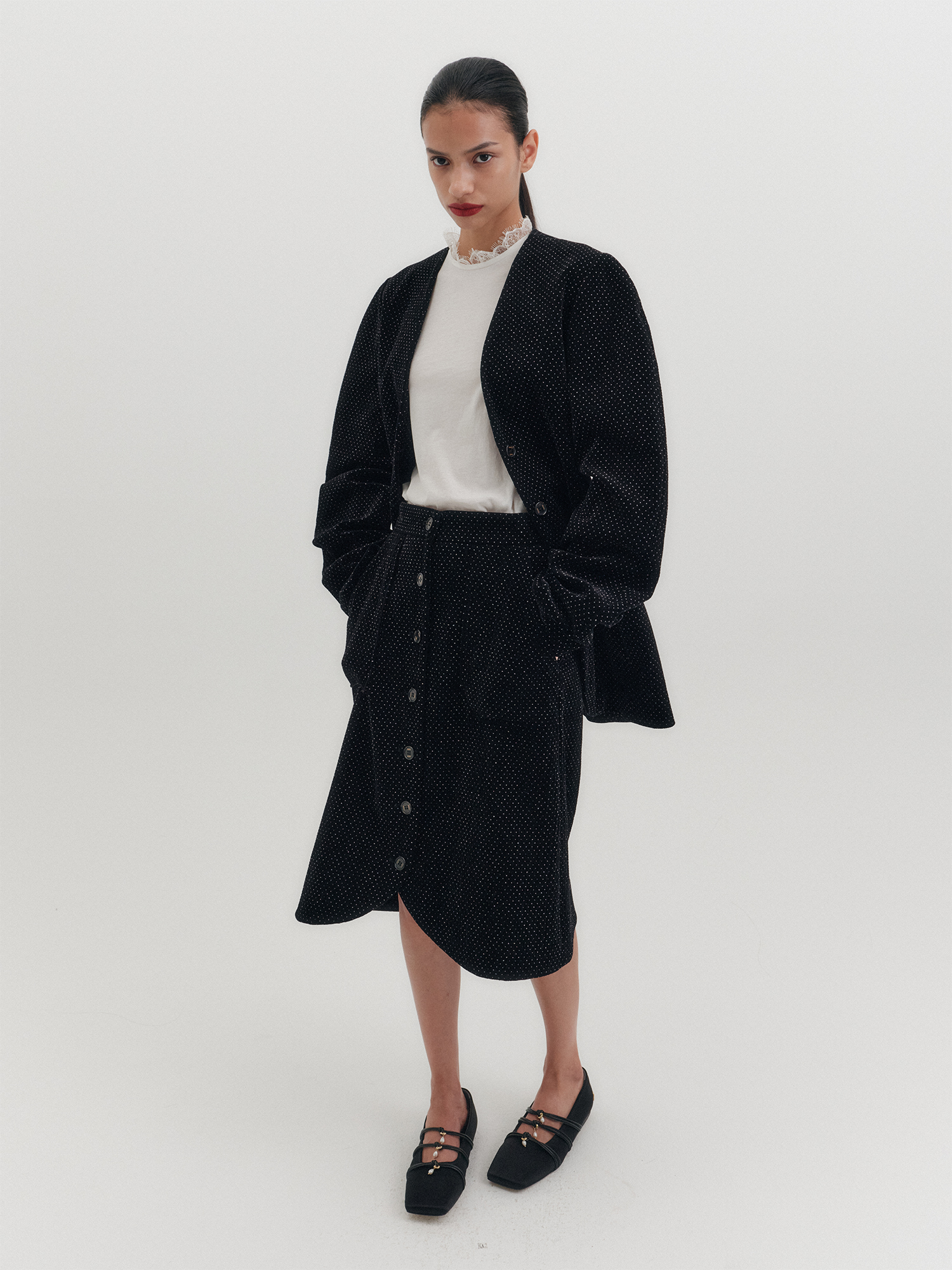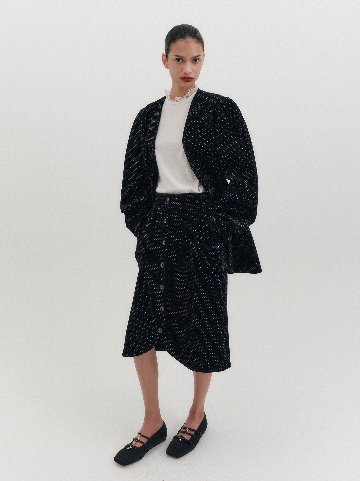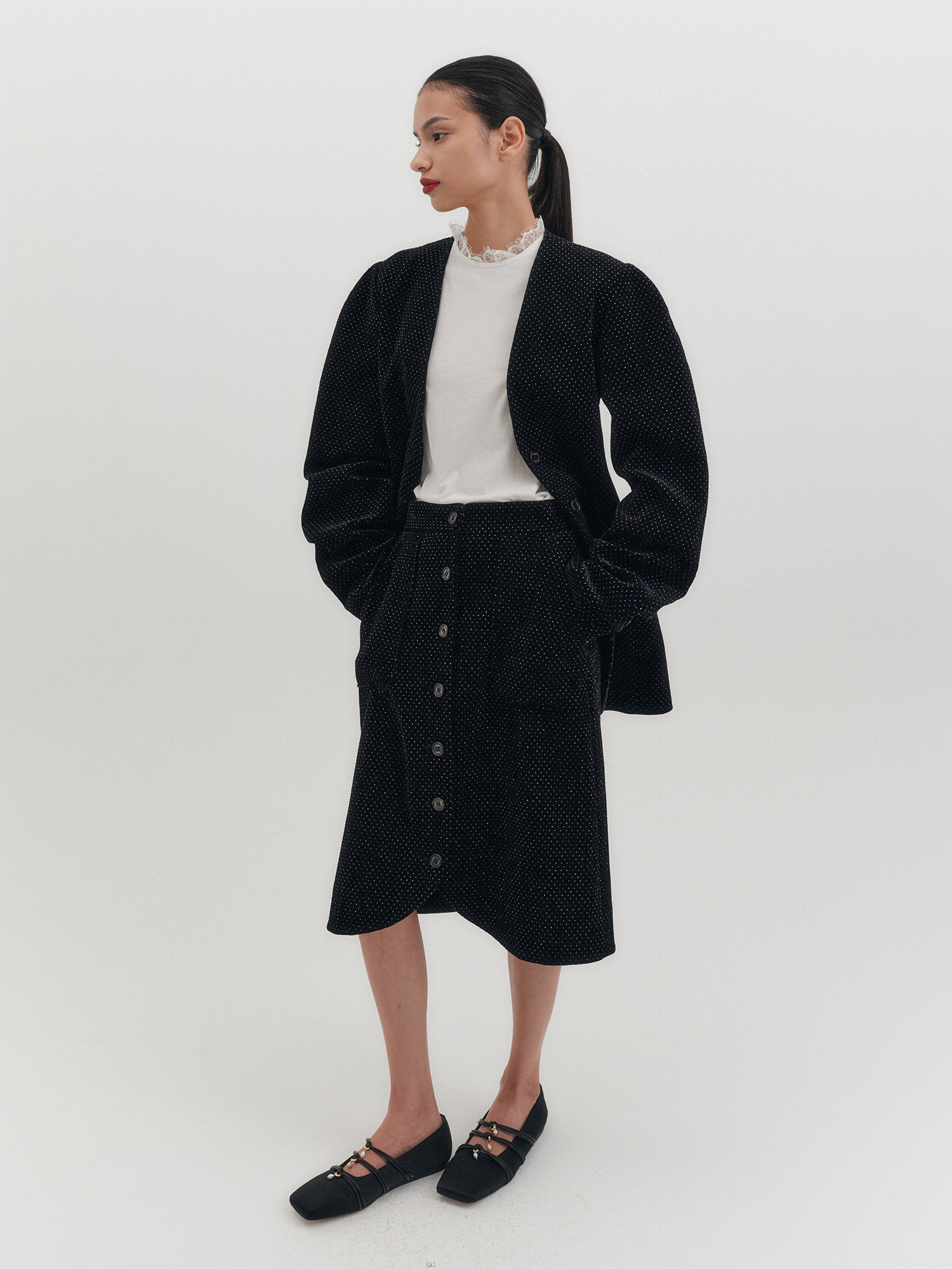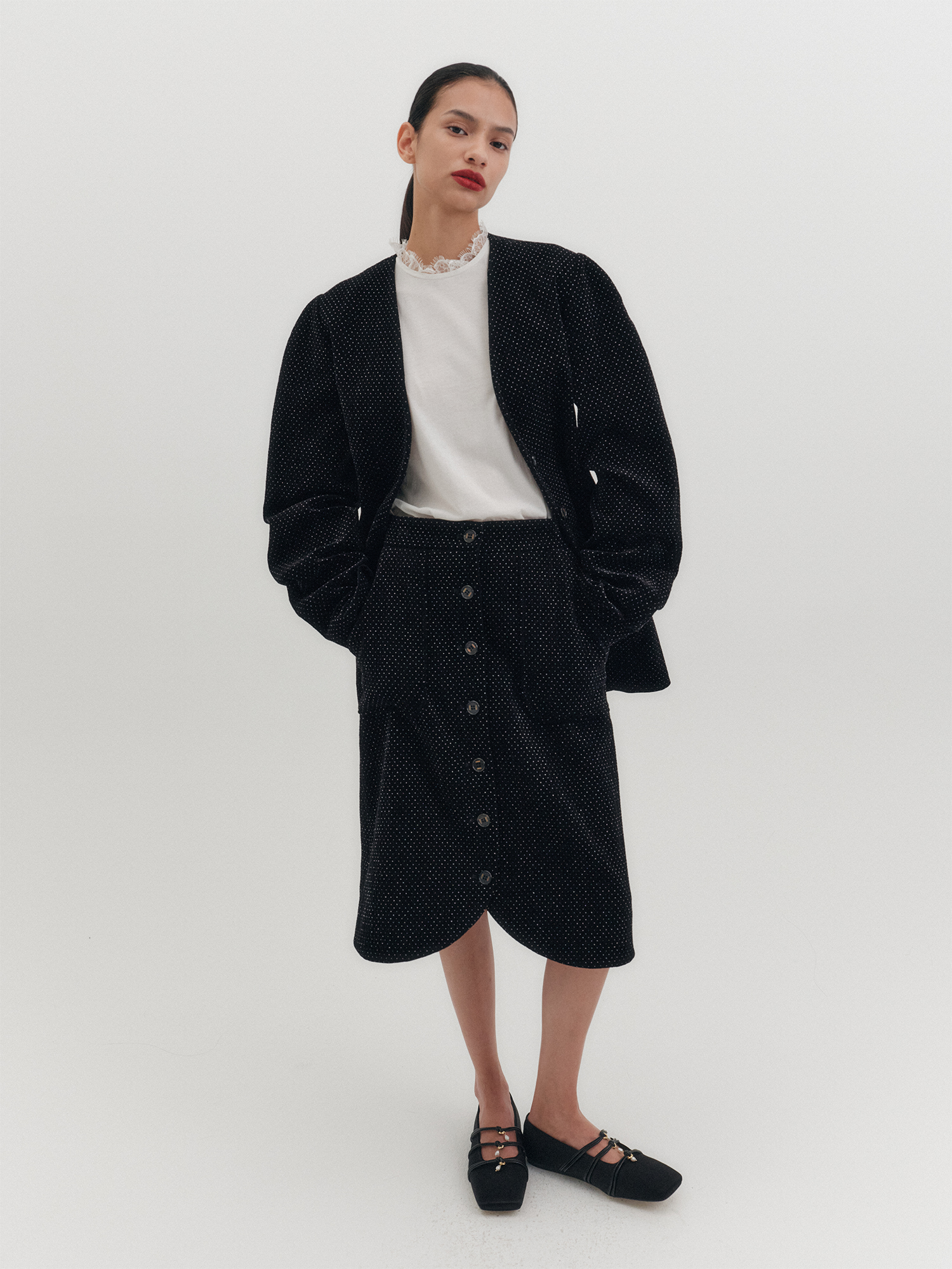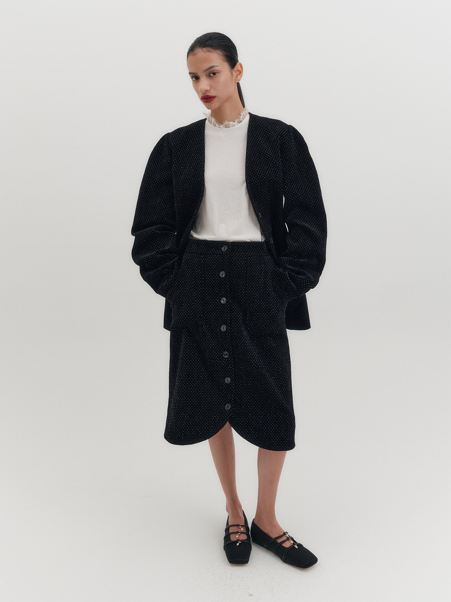 벨벳 버튼 스커트 - 블랙