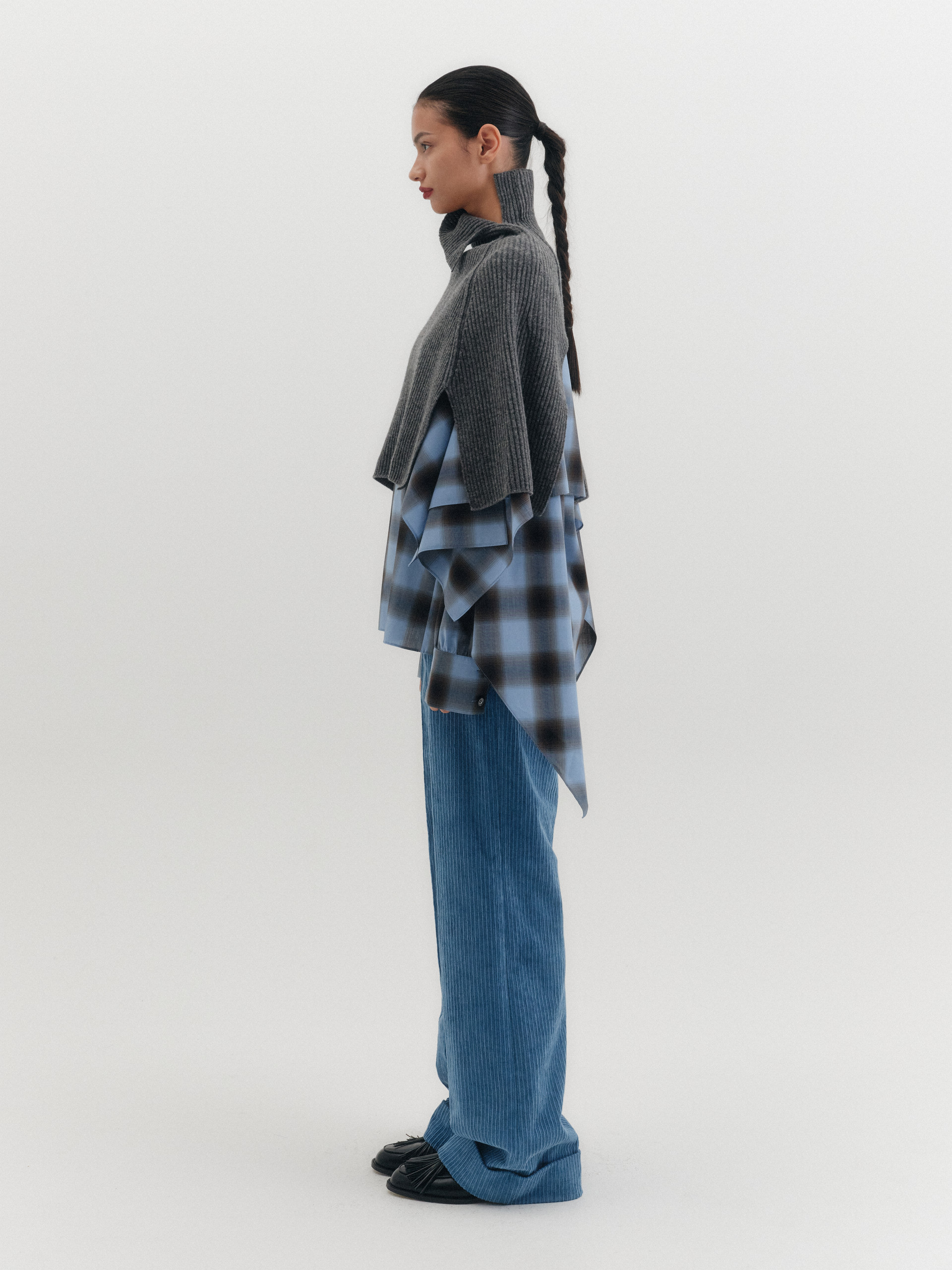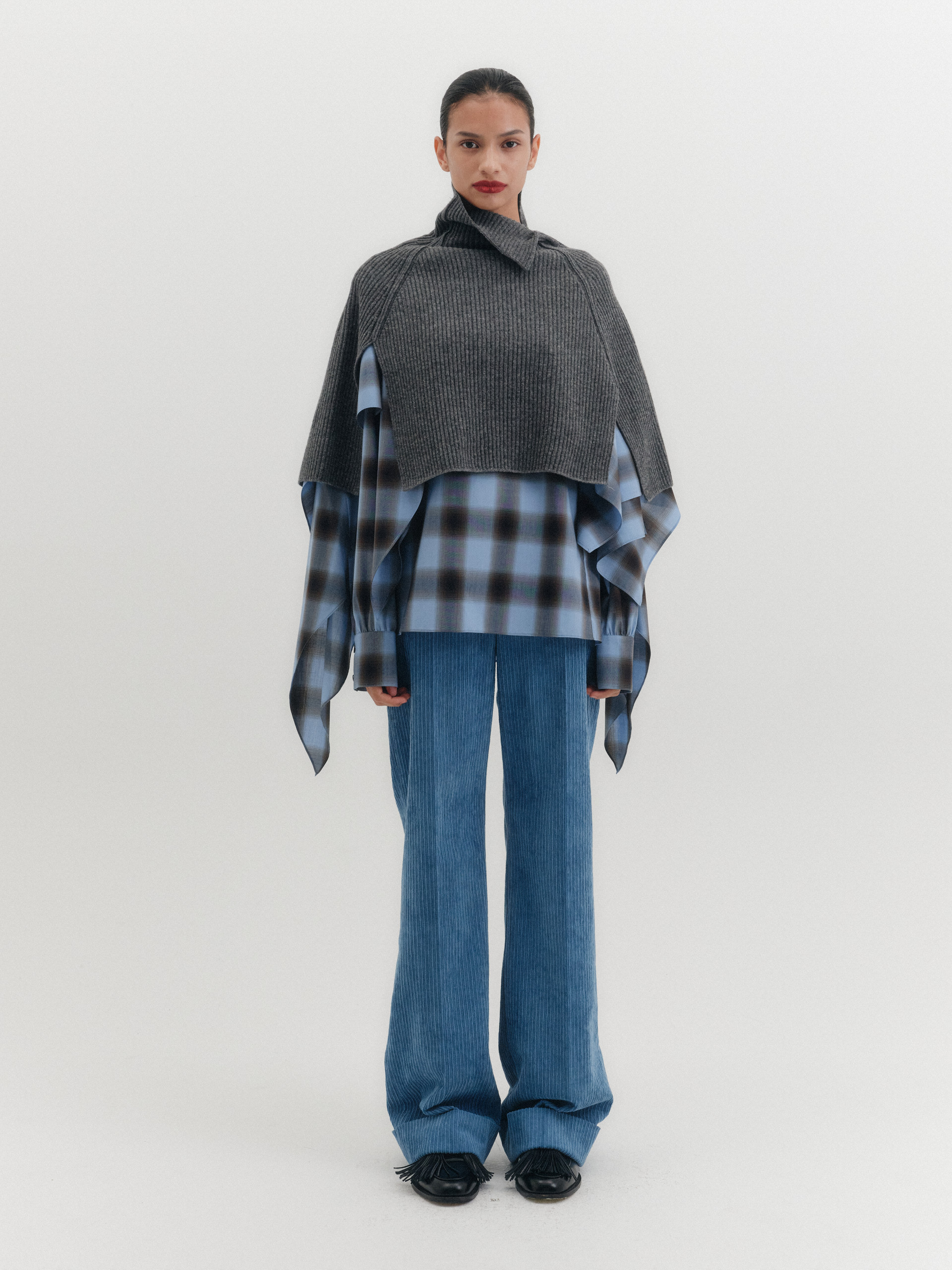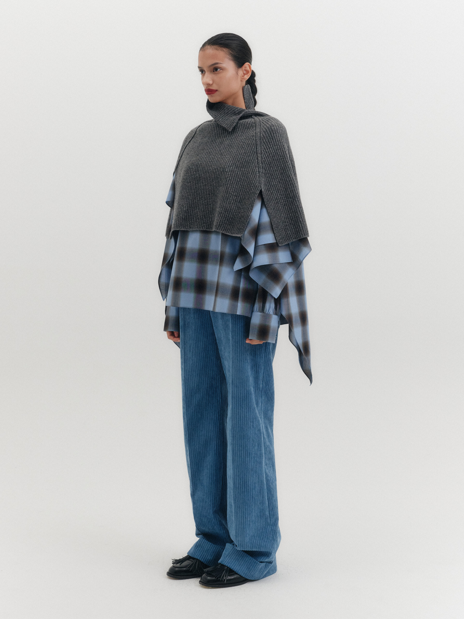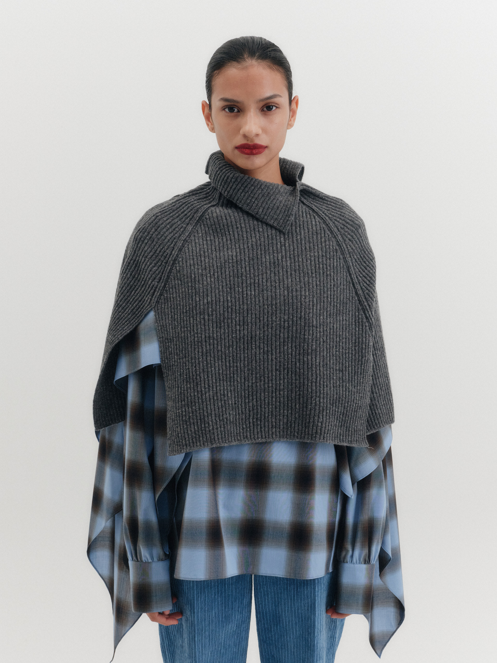 하이넥 니트 케이프 - 그레이*