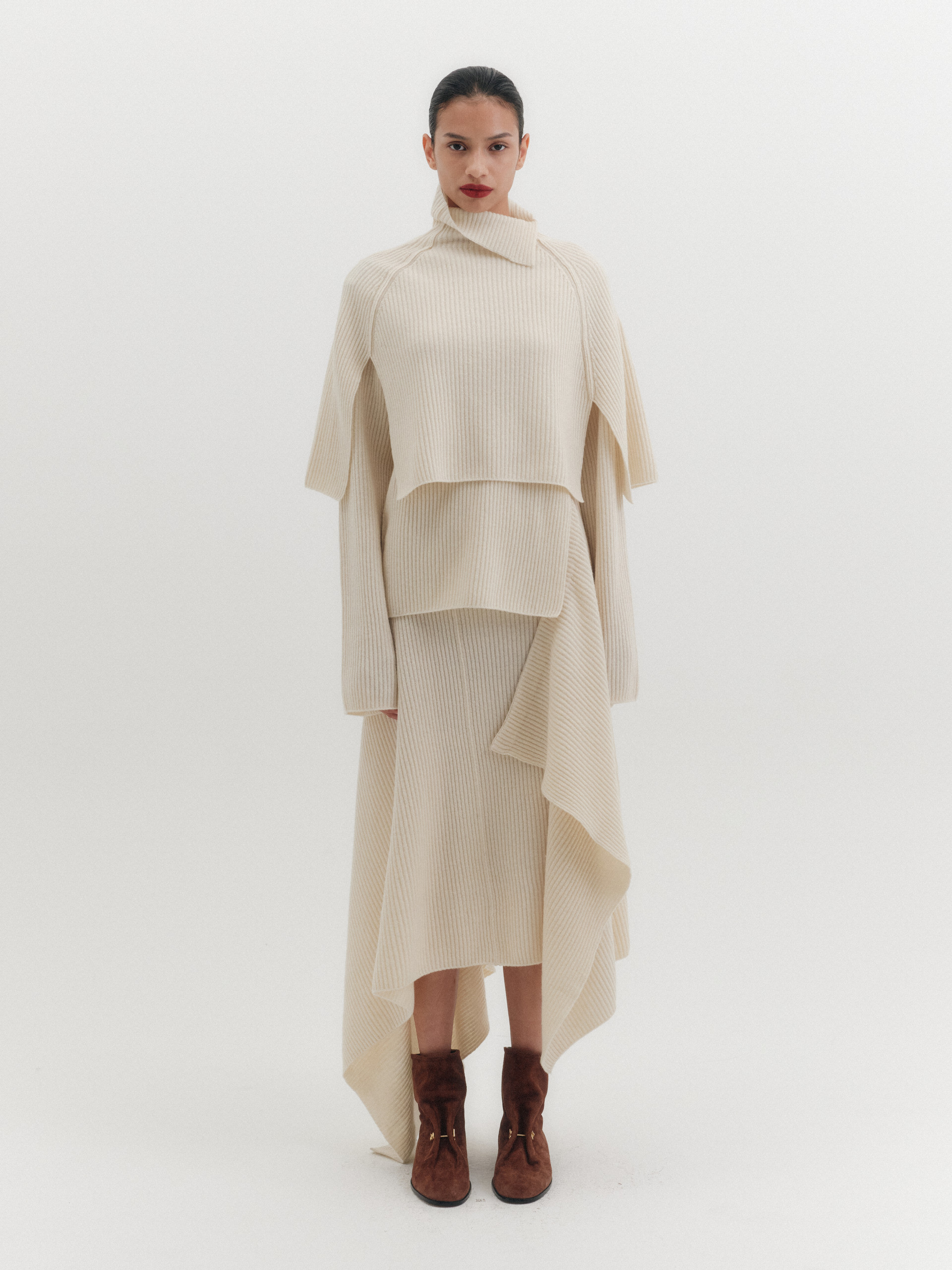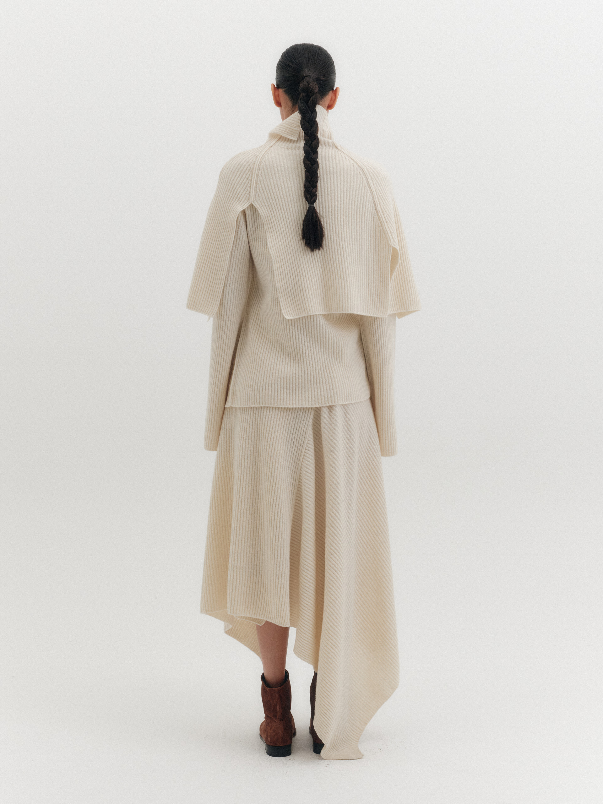 하이넥 니트 케이프 - 아이보리