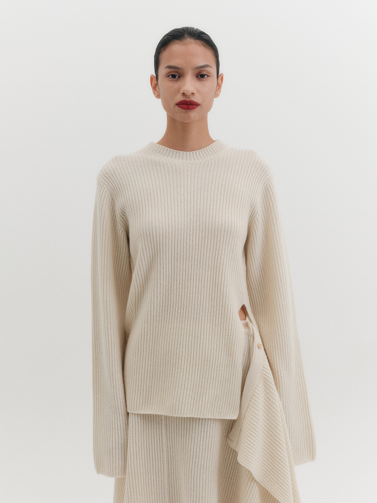 - 골지 소재의 부드럽고 탄탄한 니트 조직감