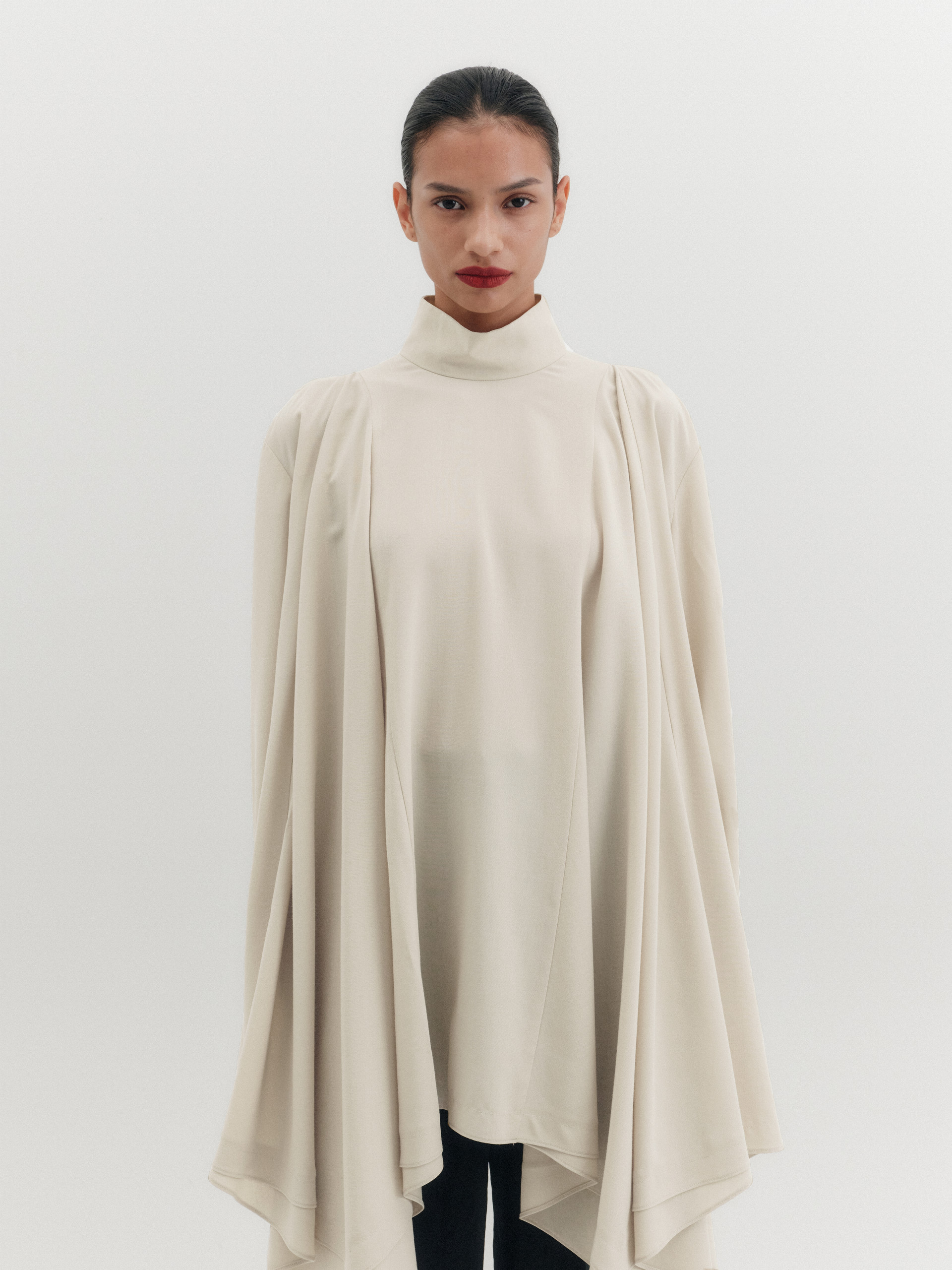 - 플레어 디테일로 볼륨감 있는 드레이프 실루엣 완성