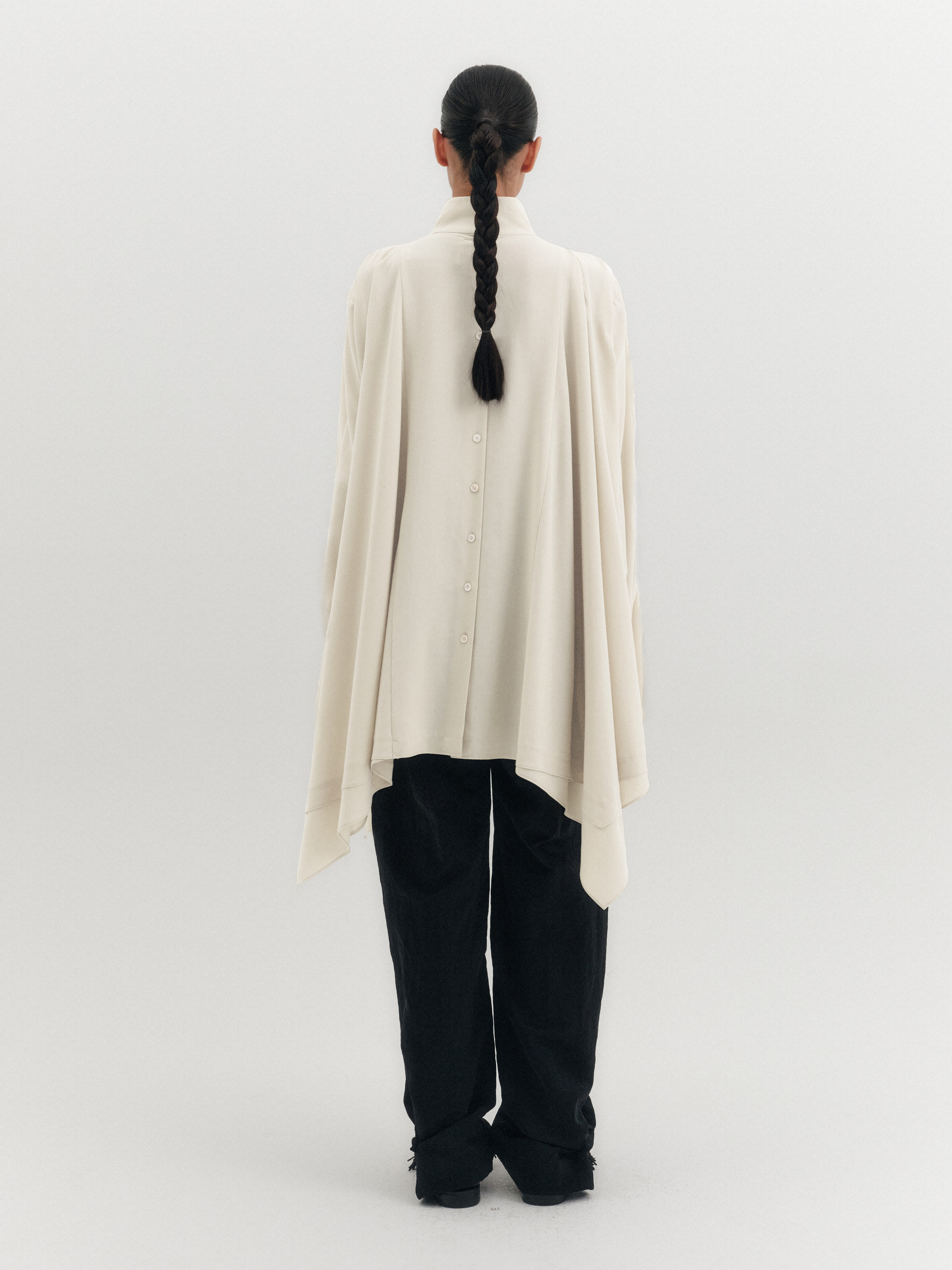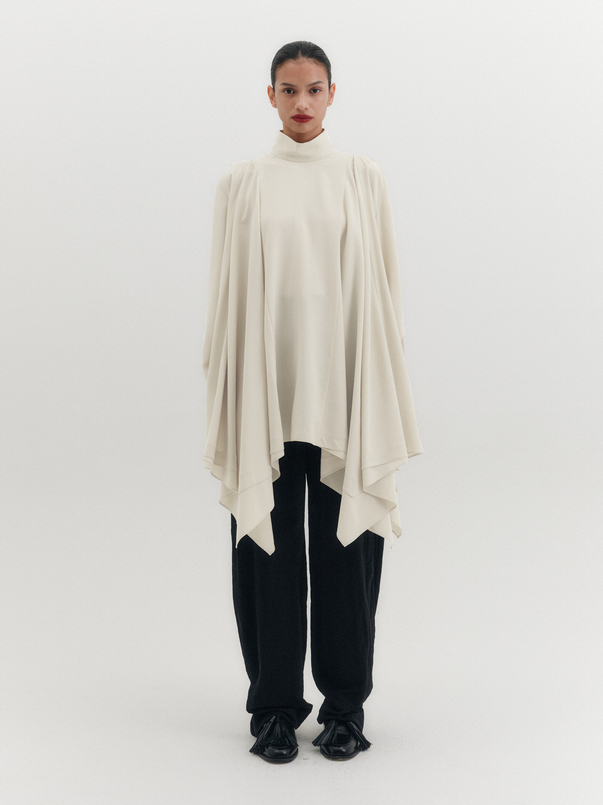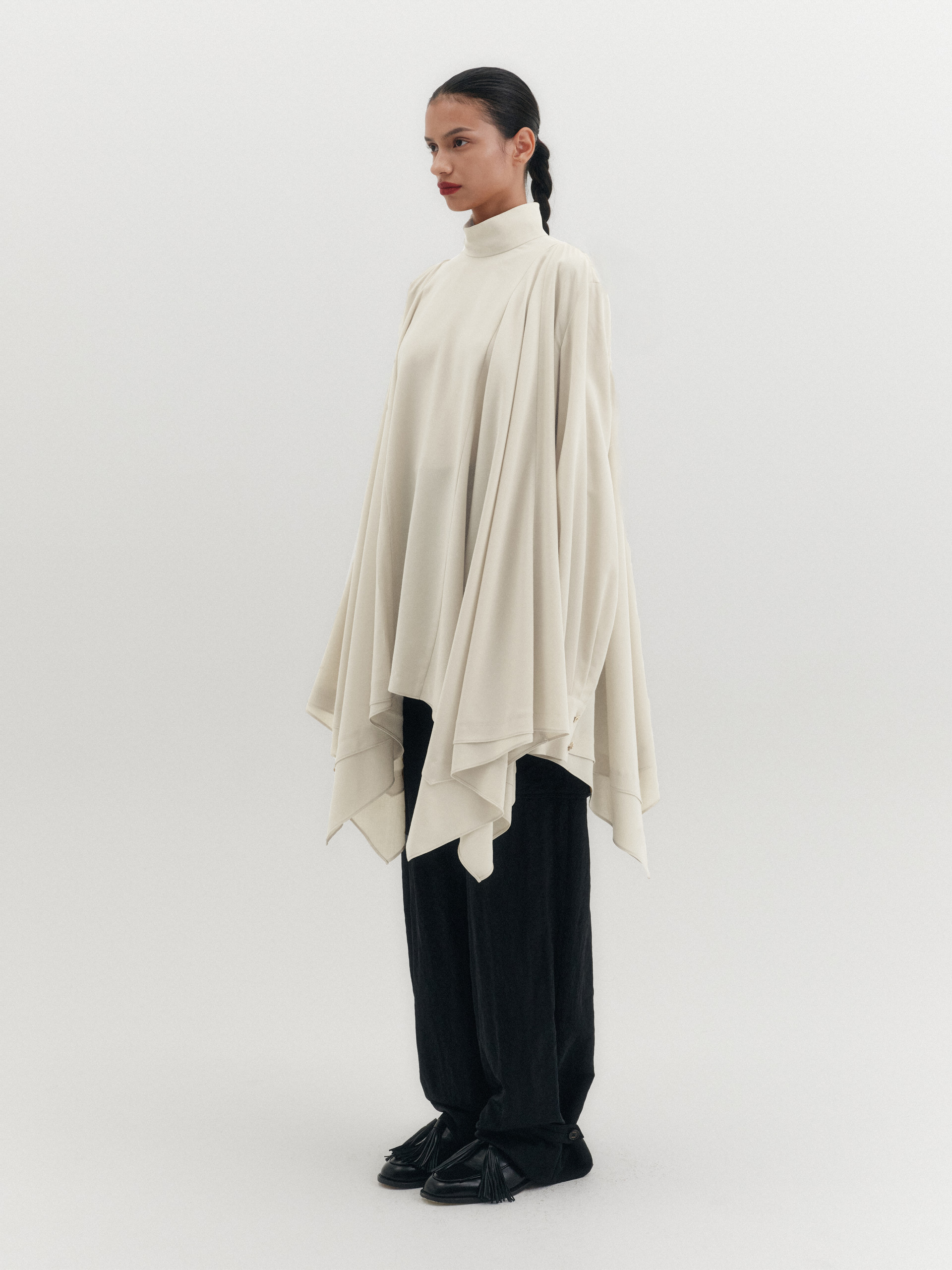 - 루즈한 핏의 하이넥 블라우스