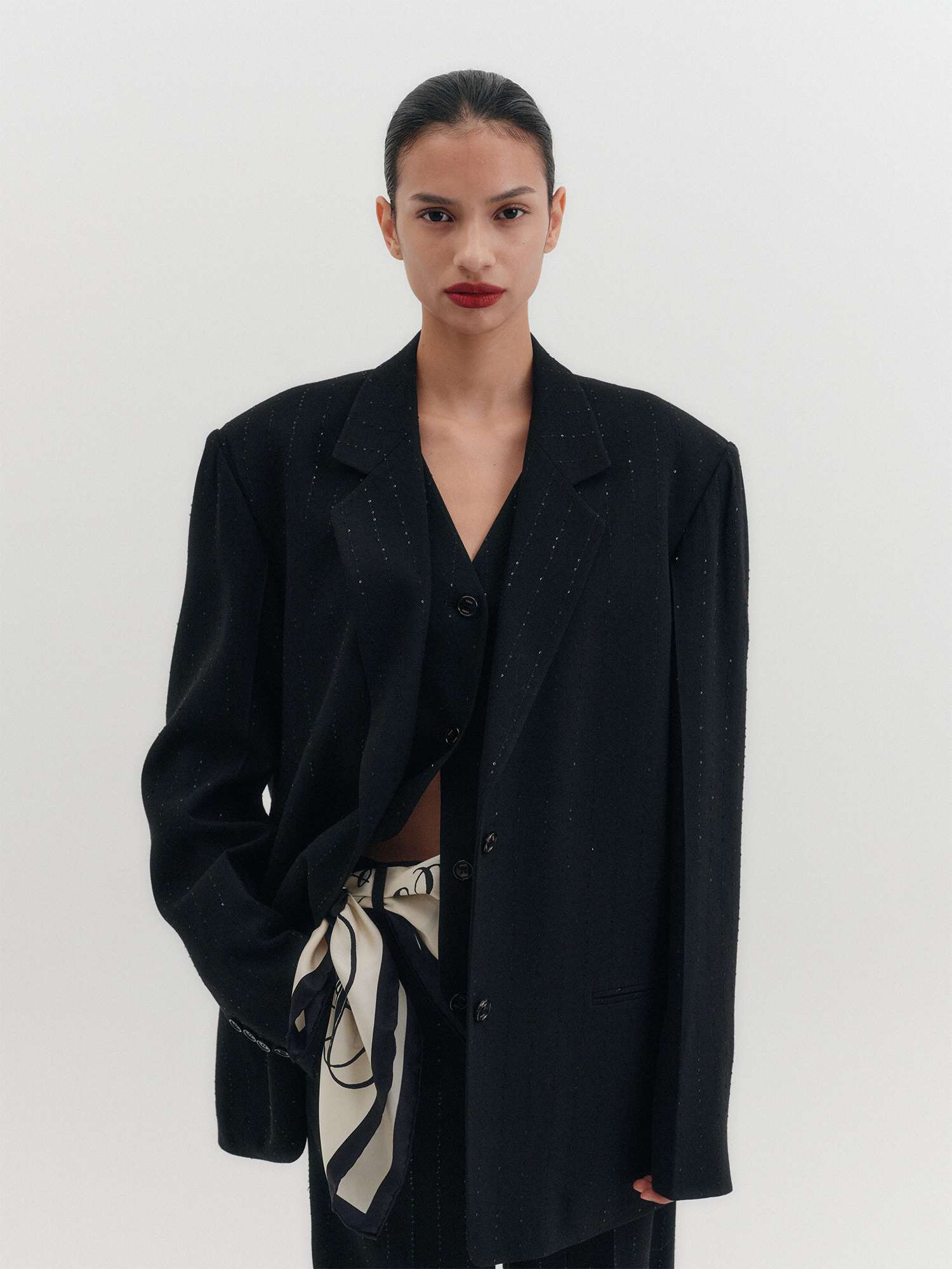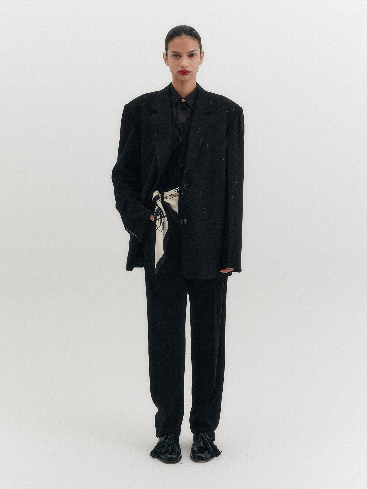 MATERIAL : Shell_Viscose 81%, Lama 15%, Polyamide 2%, Polyethylene 2% / Lining_Polyester 100% (fabric from ITALY)