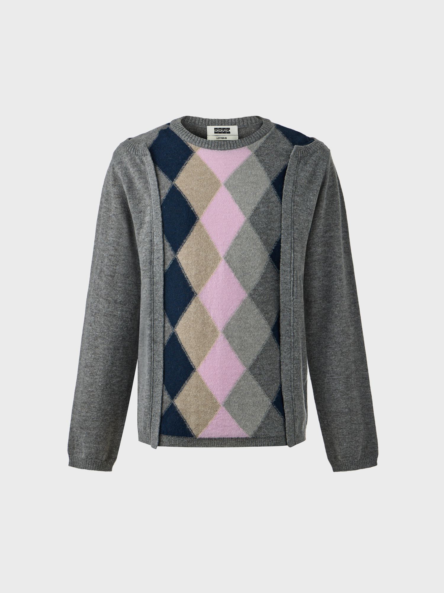아가일 니트 탑 - 그레이