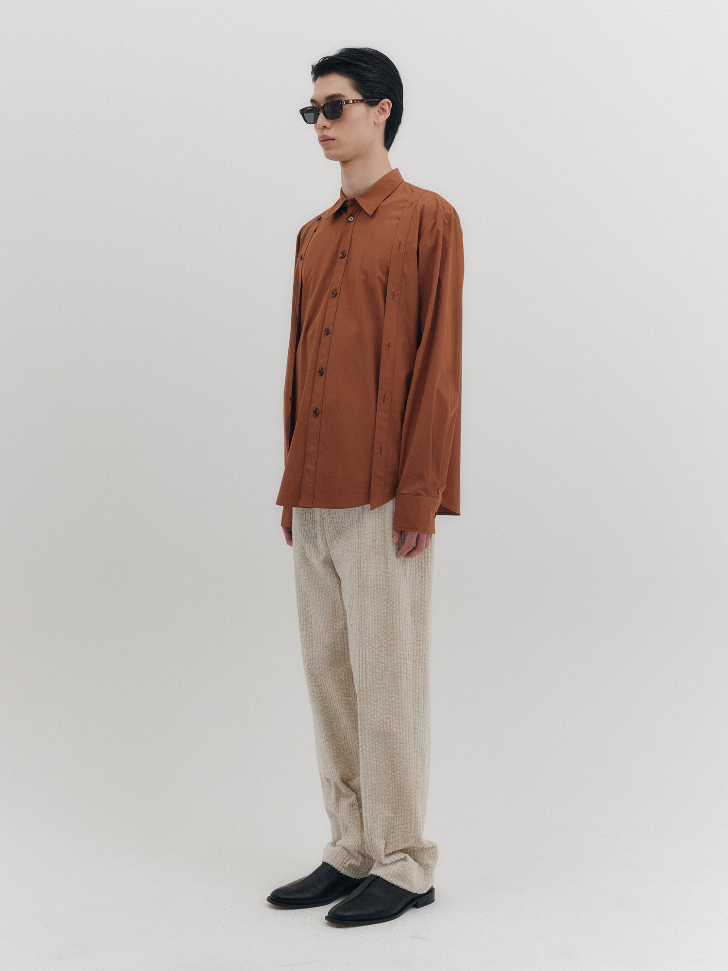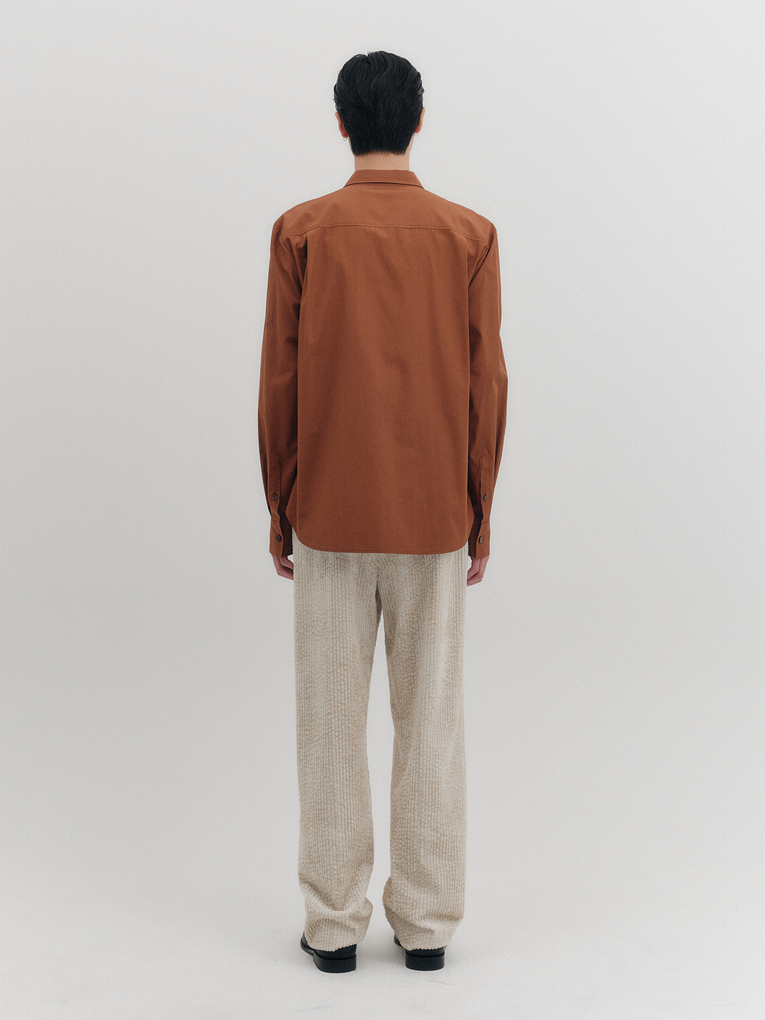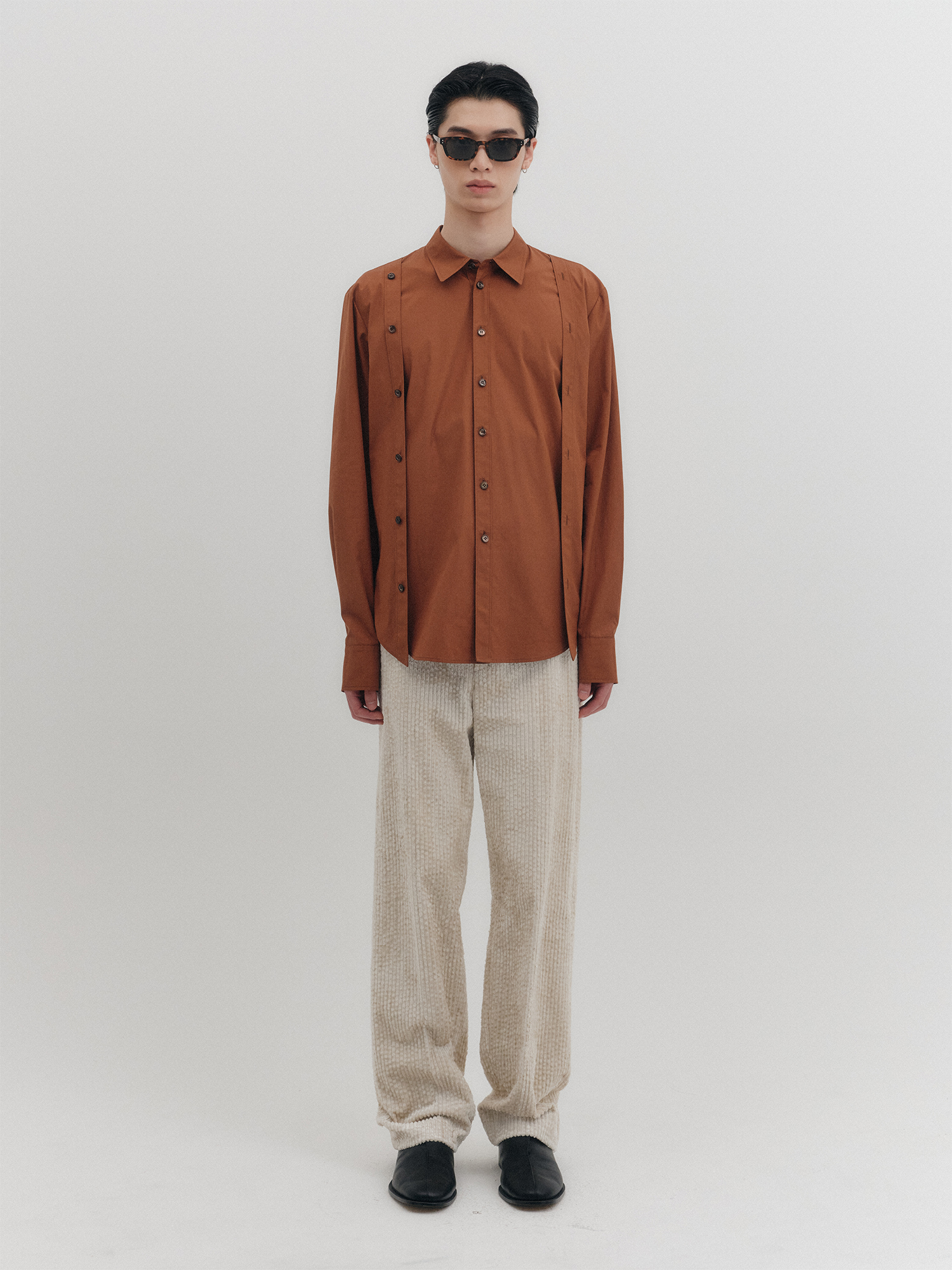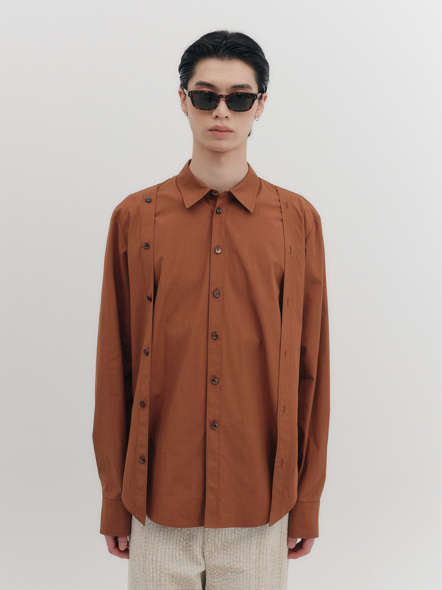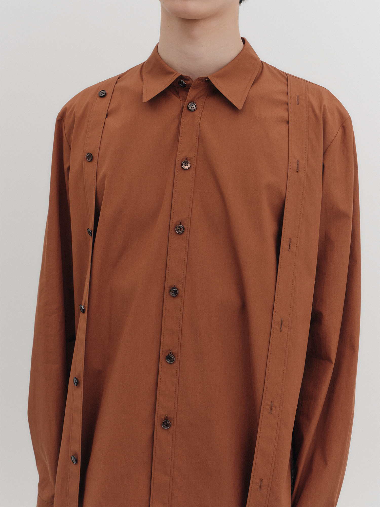 더블 버튼 클래식 셔츠 - 브라운
