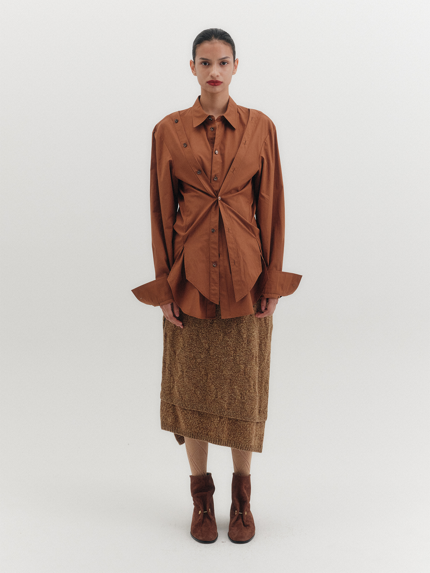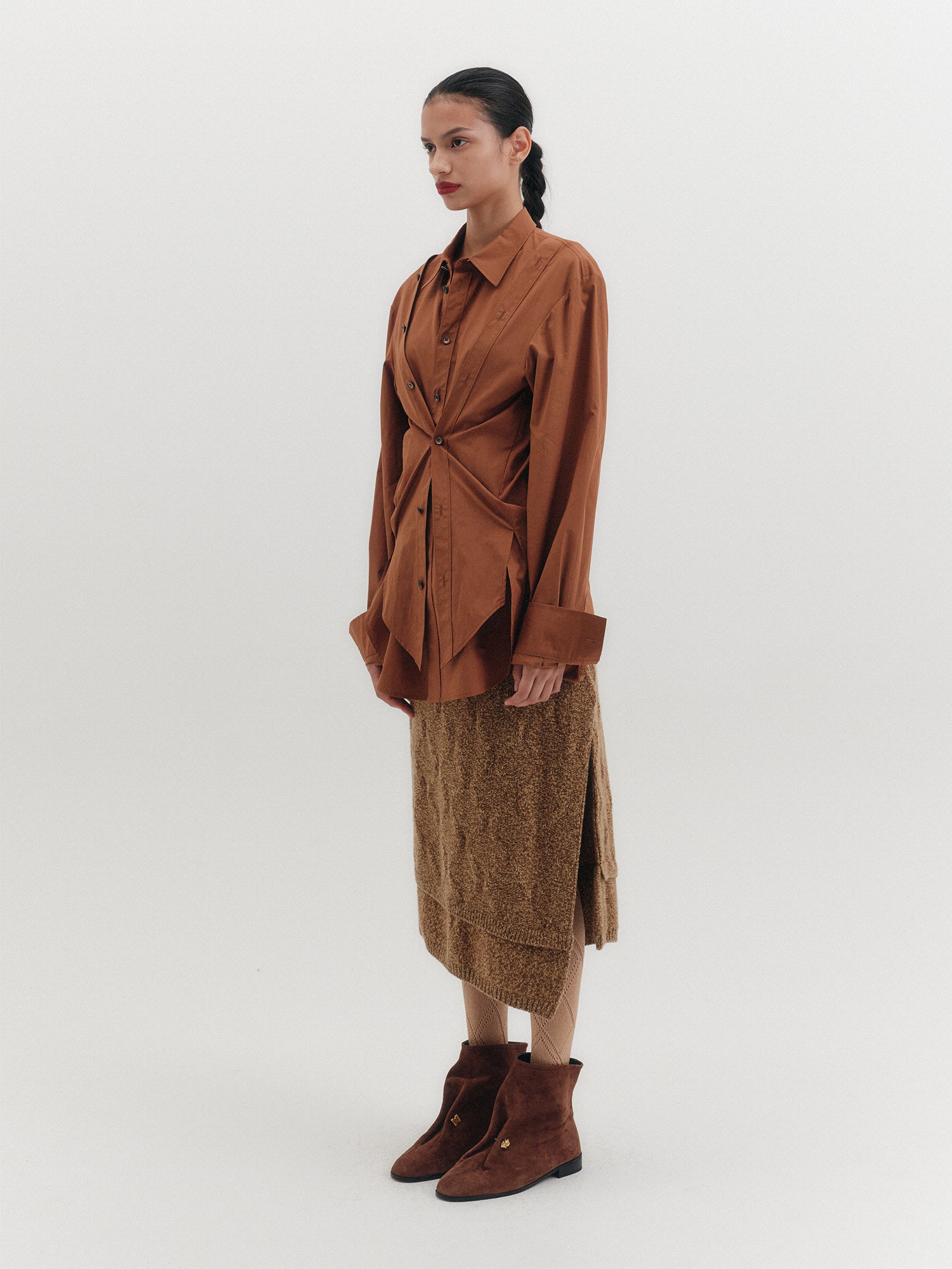 - 언밸런스 햄라인과 레이어드 배색 밑단 디테일