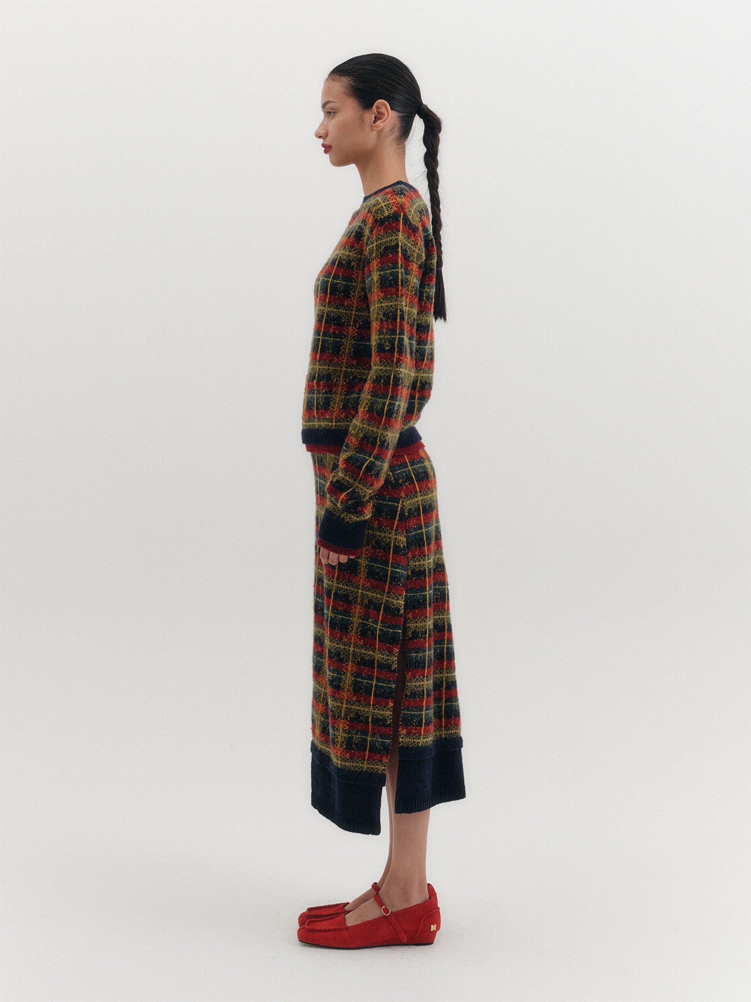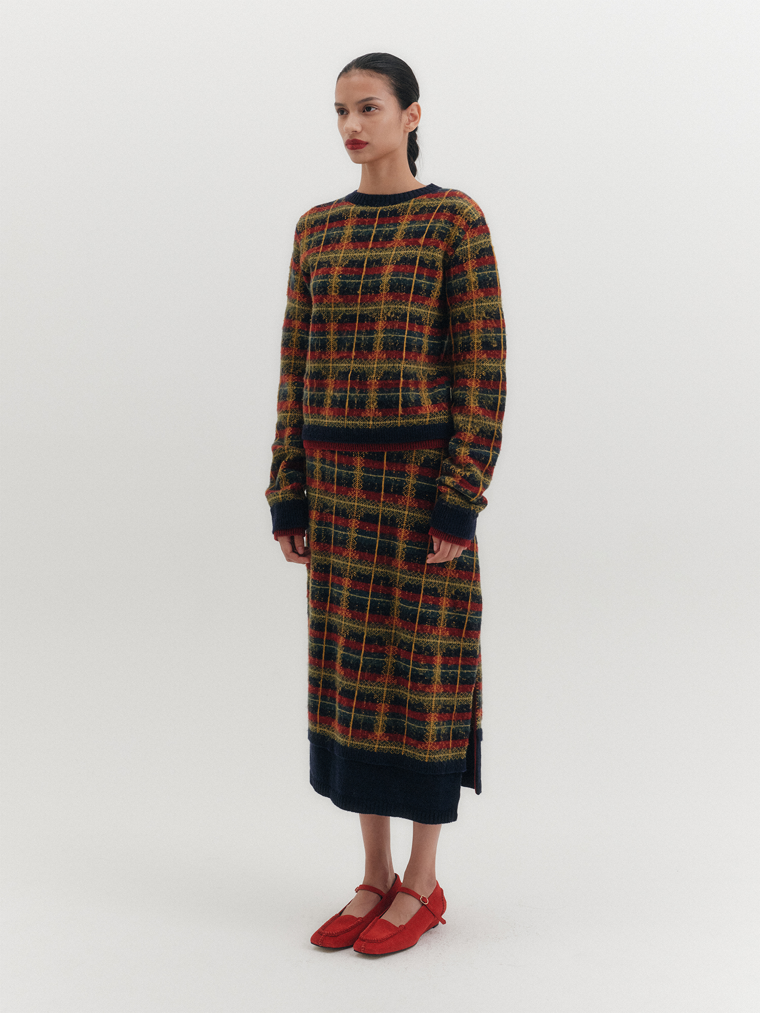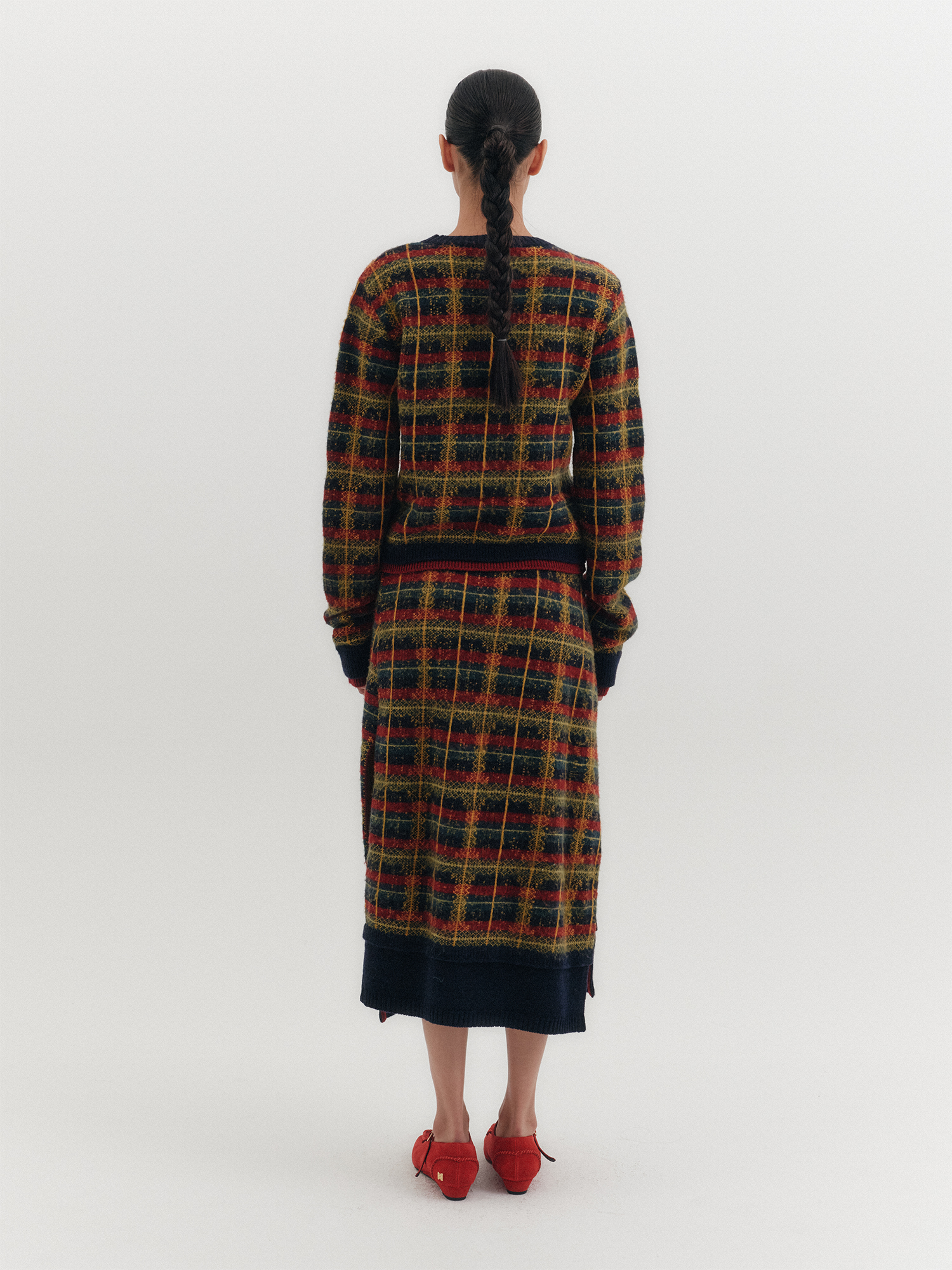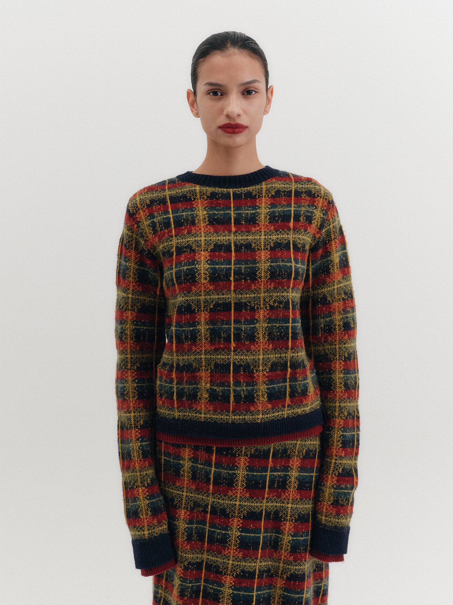 - 클래식한 멀티컬러 체크 패턴 니트 탑