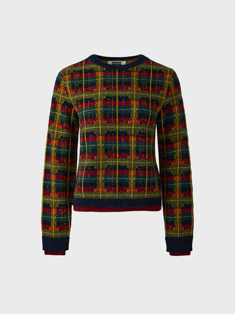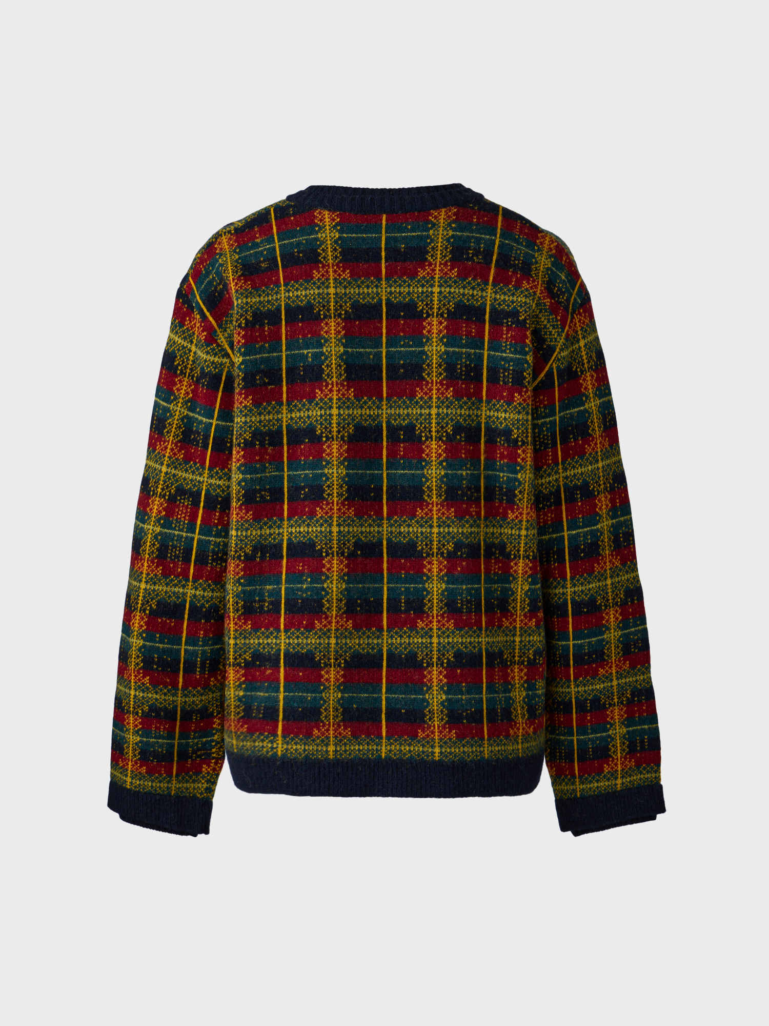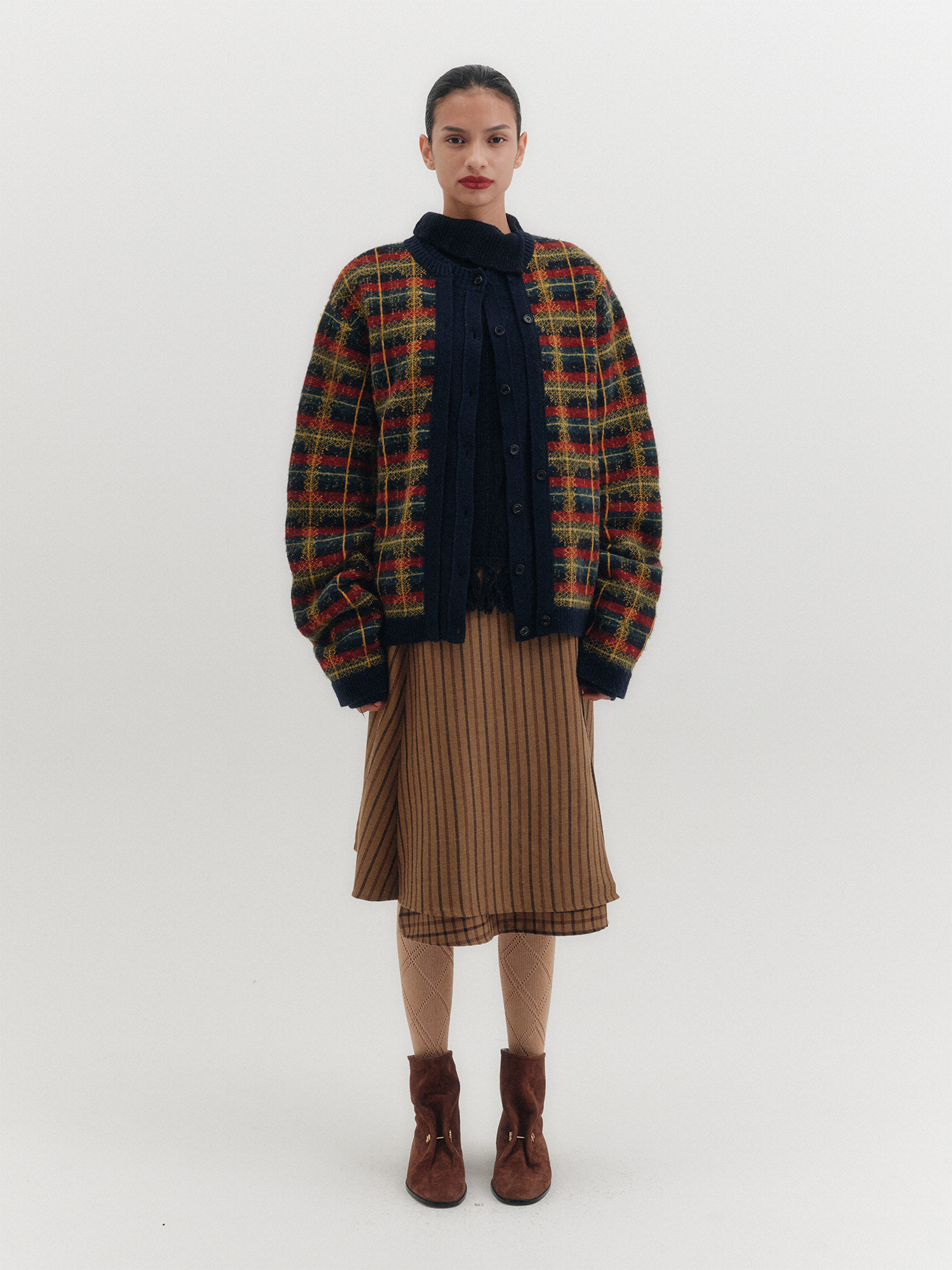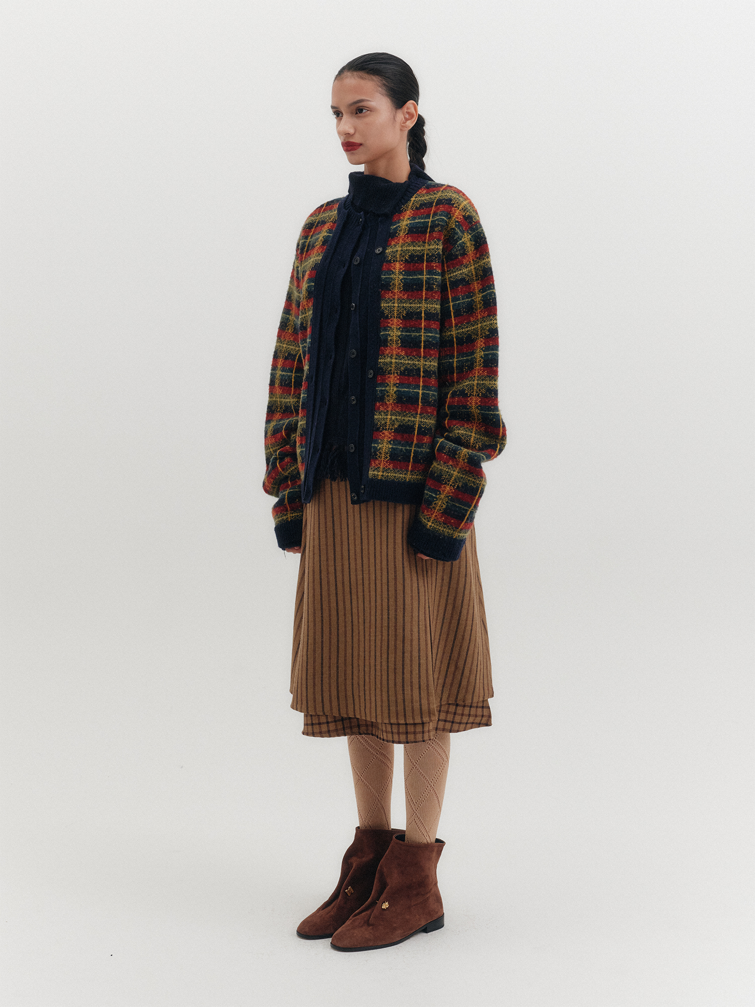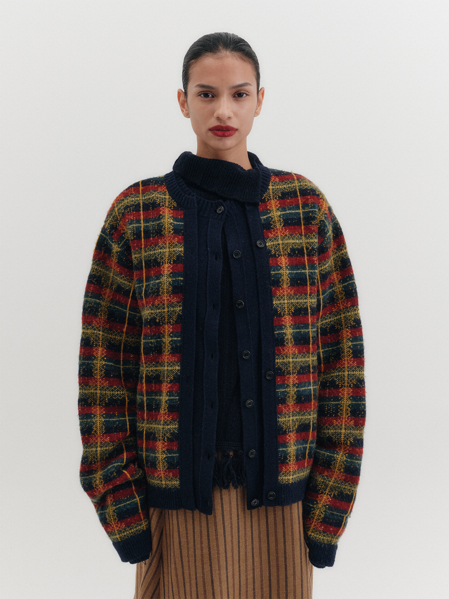 - 멀티 컬러 체크 패턴의 니트 가디건