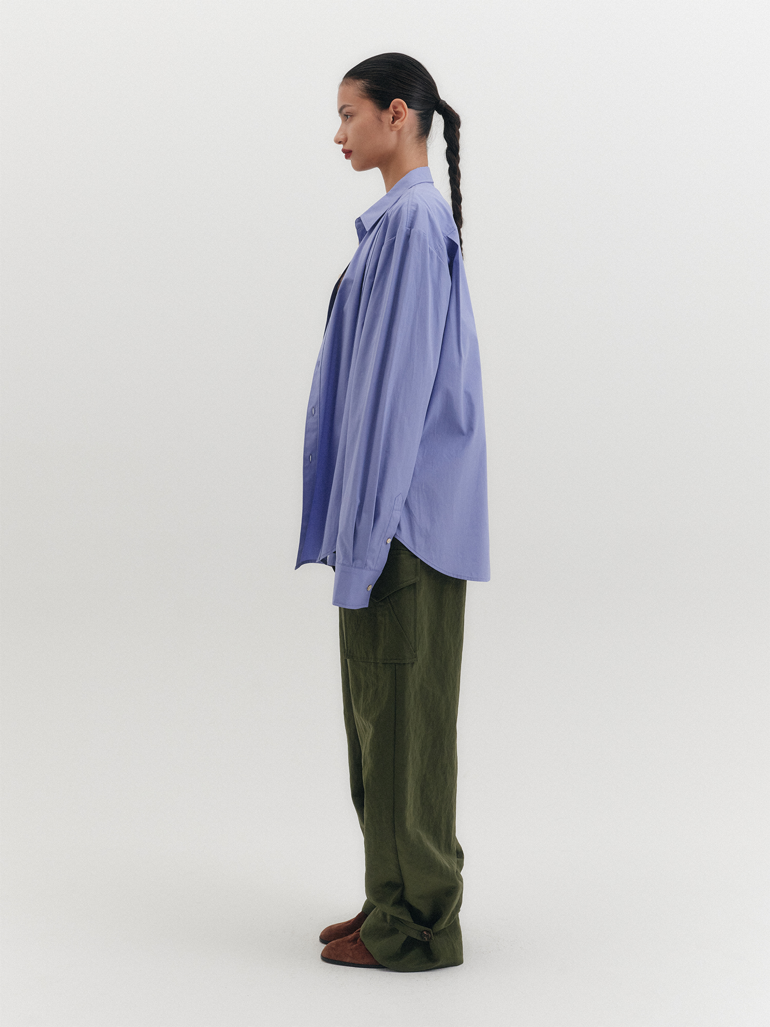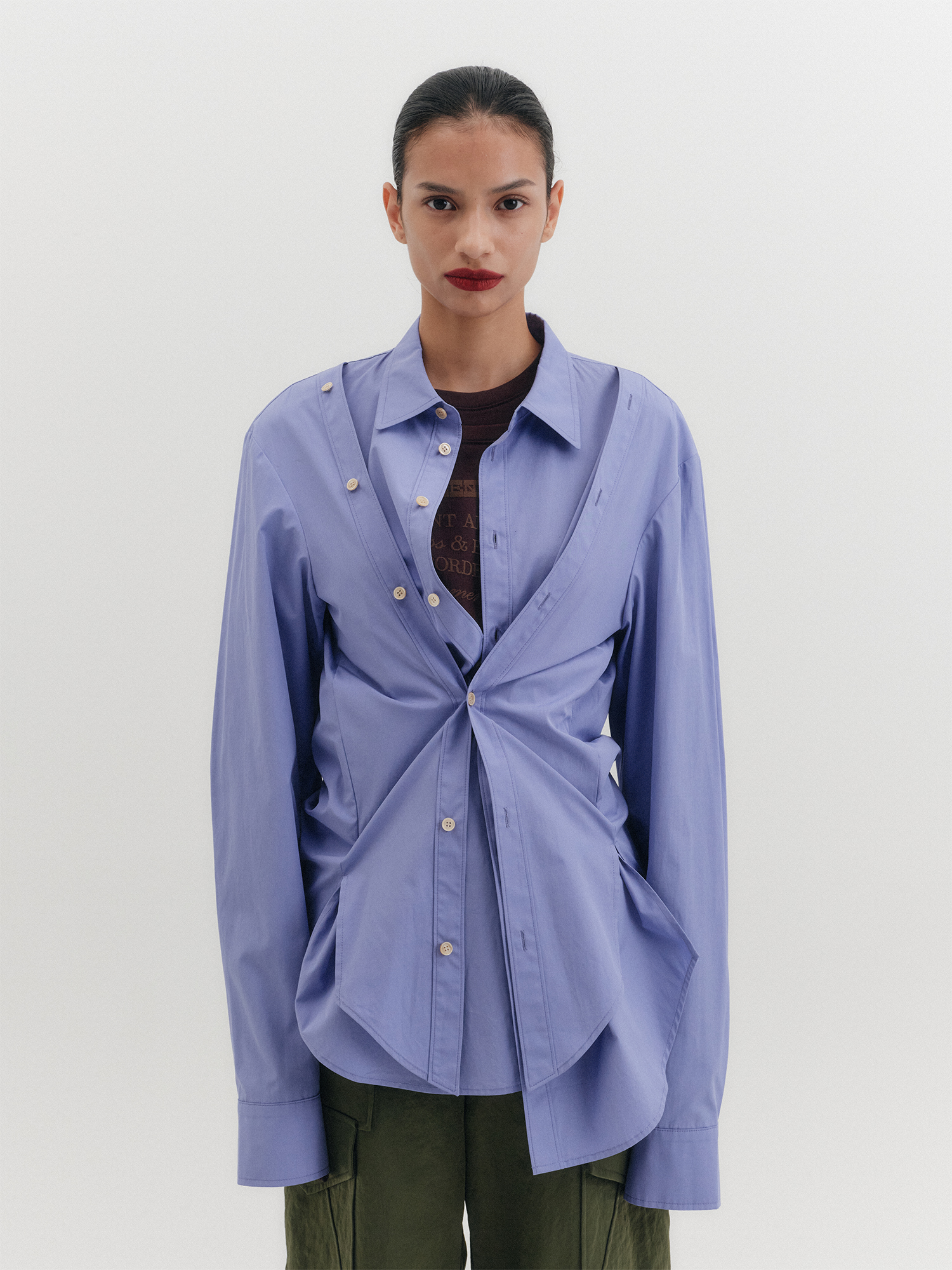 더블 버튼 트랜스포머블 셔츠 - 라벤더