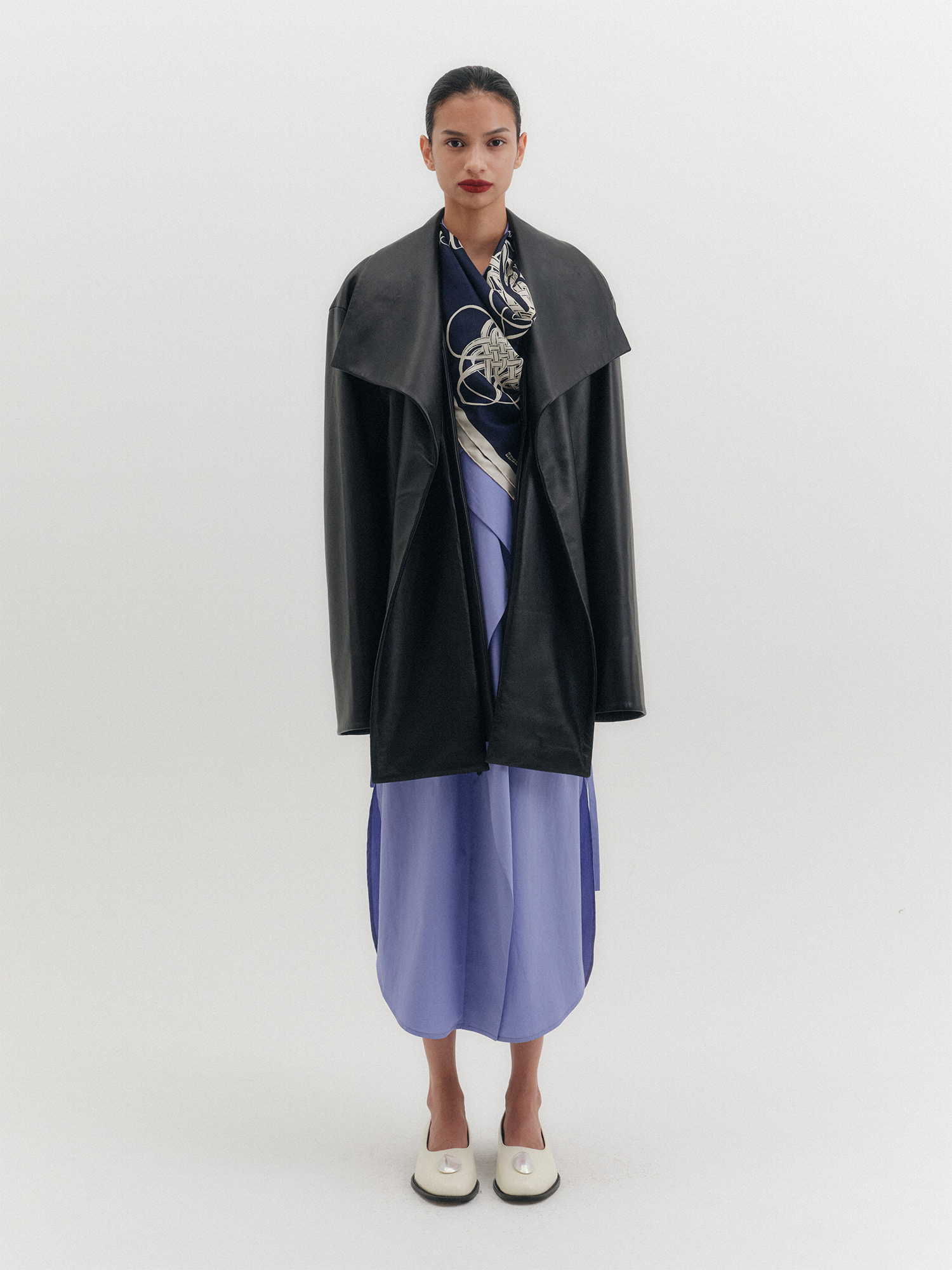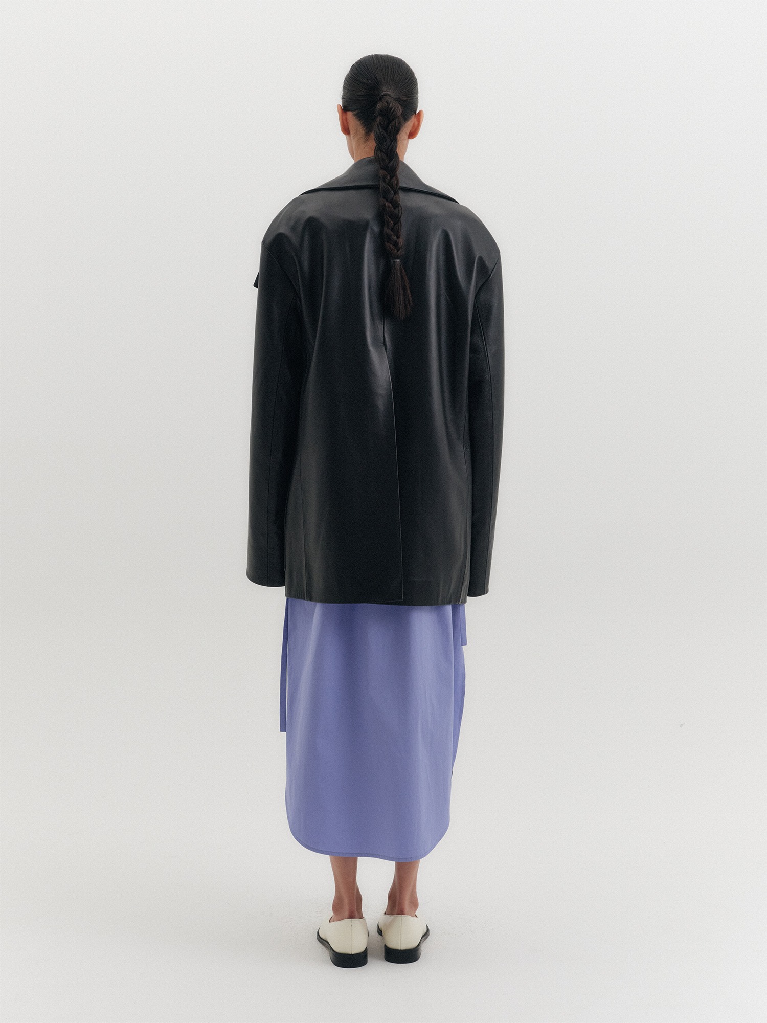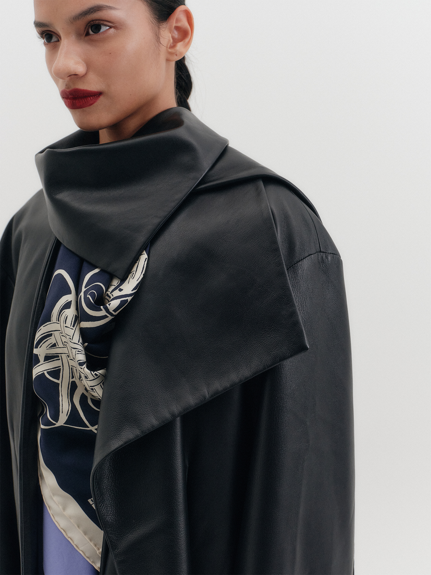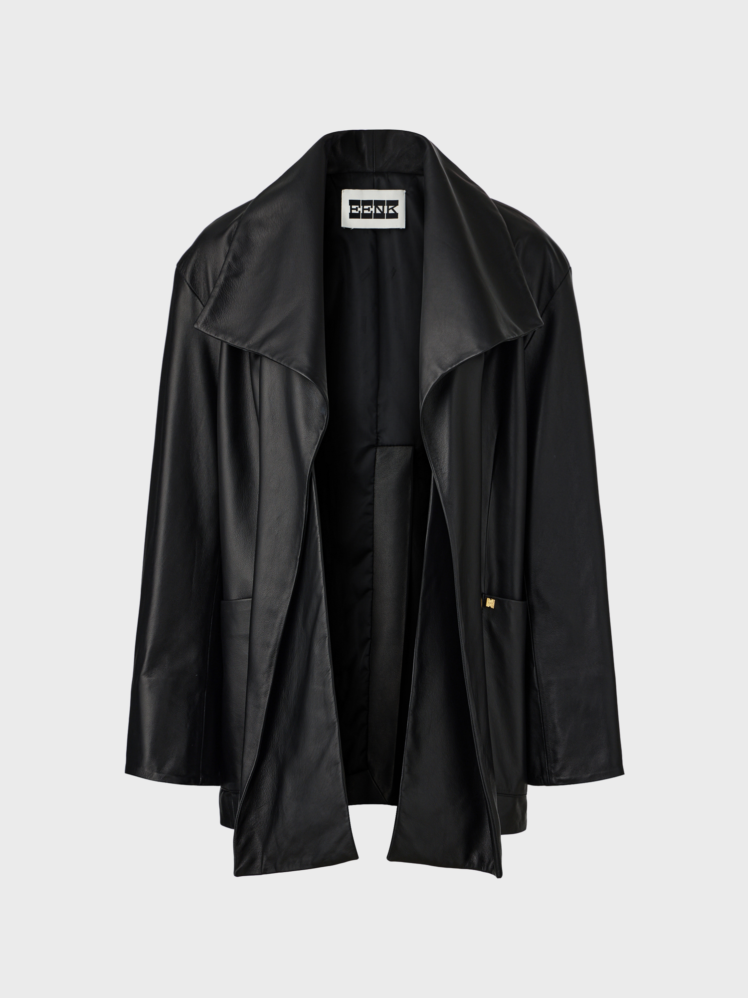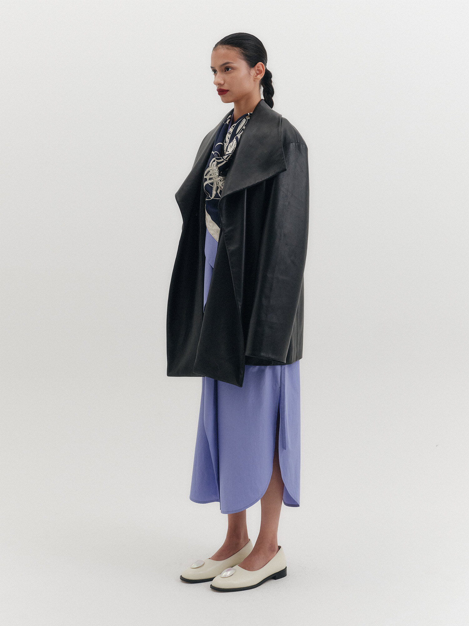 - 자연스럽게 떨어지는 오버핏 숄카라 레더 자켓